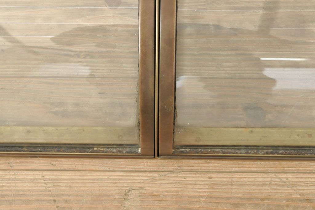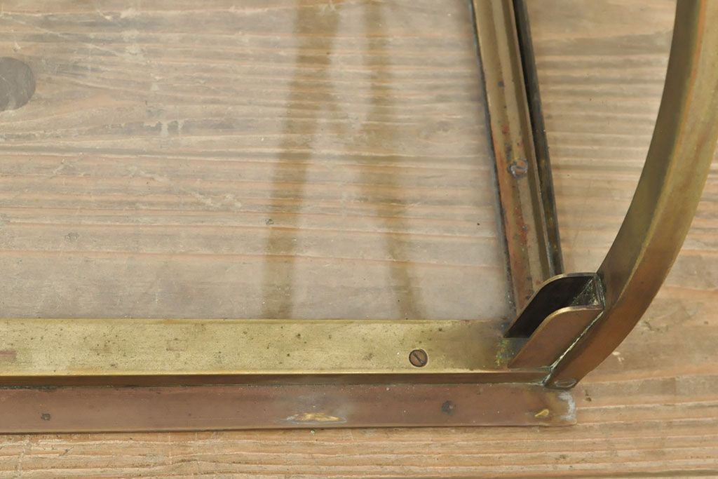 ラフジュ工房> ガラスケース・ショーケース > フランスアンティーク 激レアデザイン! 真鍮枠 背面鏡張り、底面までガラス張りのRガラス卓上ショーケース(ガラスケース、陳列棚、店舗什器)(R-052964)