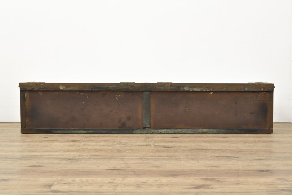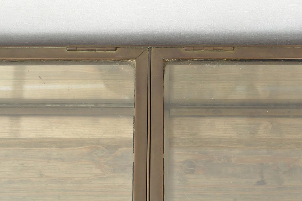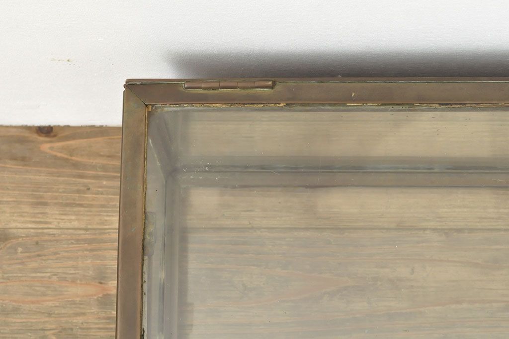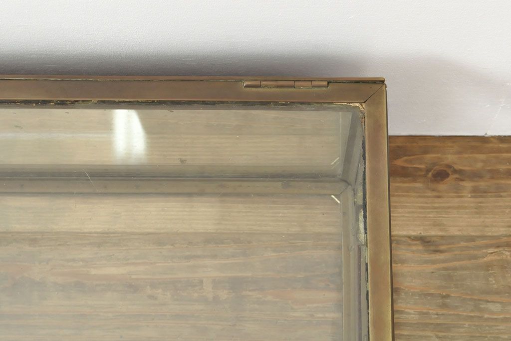 フランスアンティーク 激レアデザイン! 真鍮枠 背面鏡張り、底面までガラス張りのRガラス卓上ショーケース(ガラスケース、陳列棚、店舗什器)(R-052964)