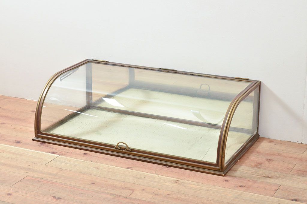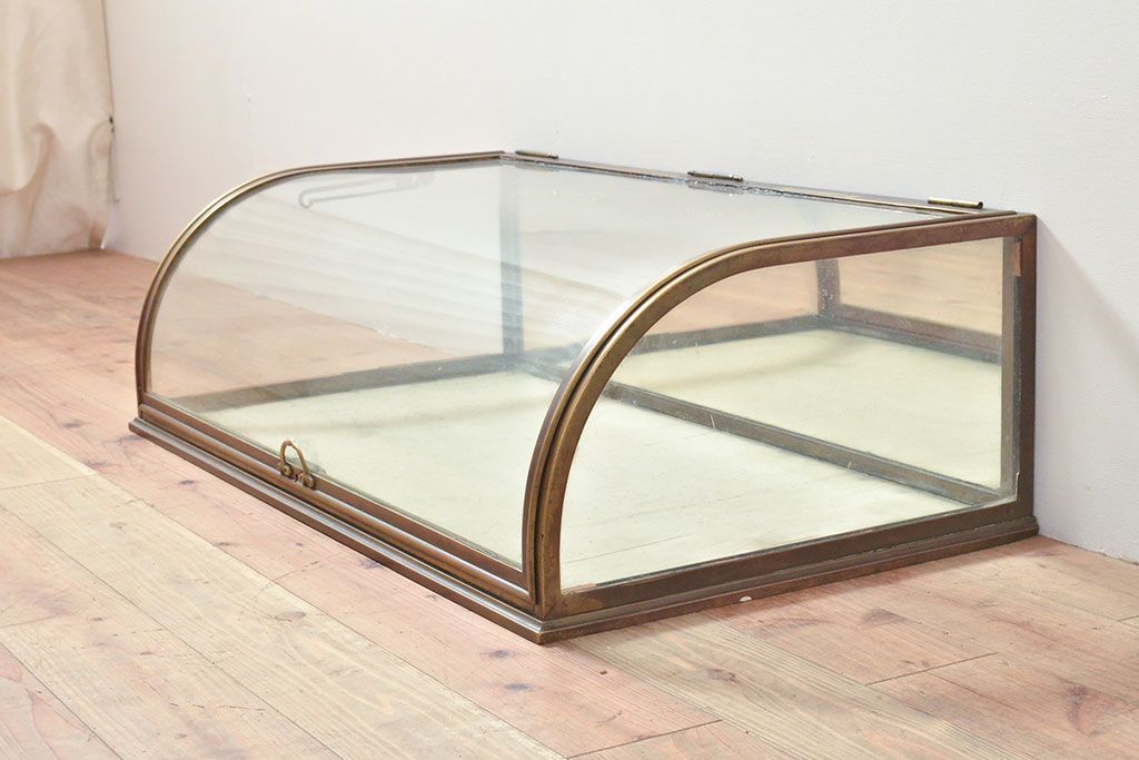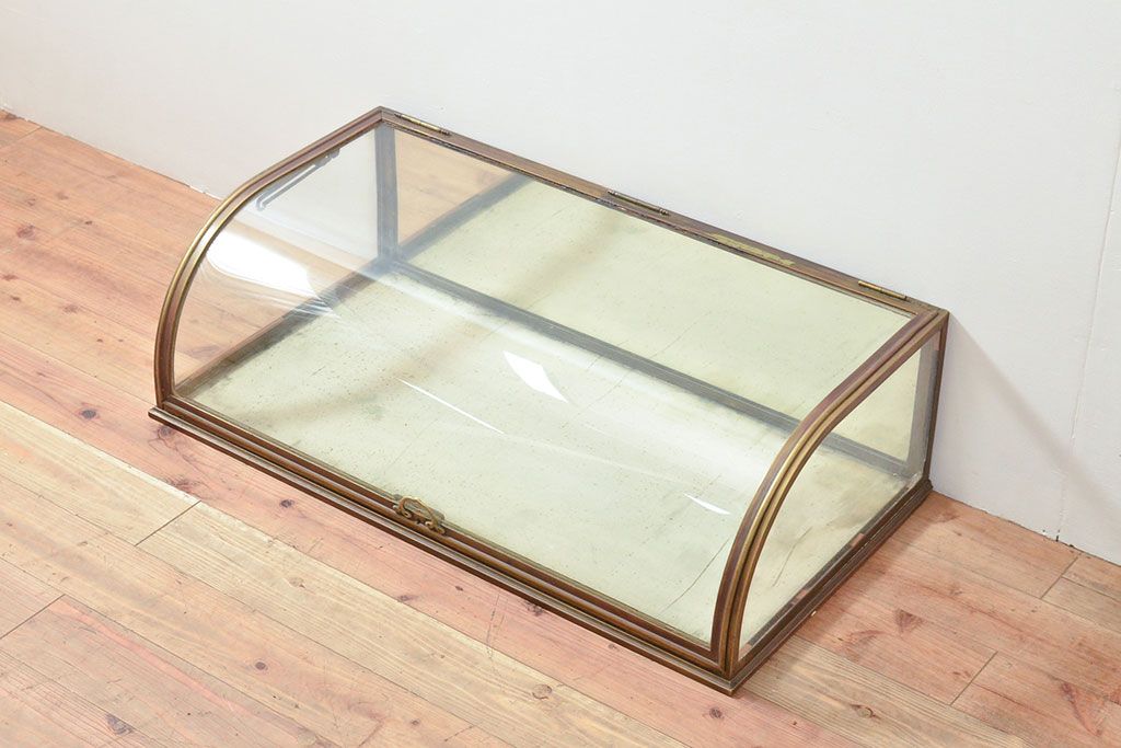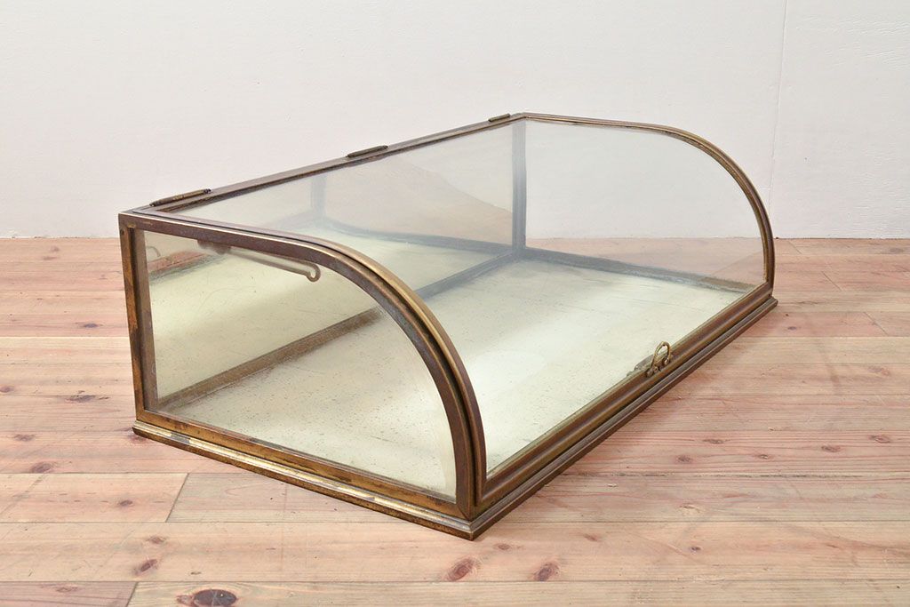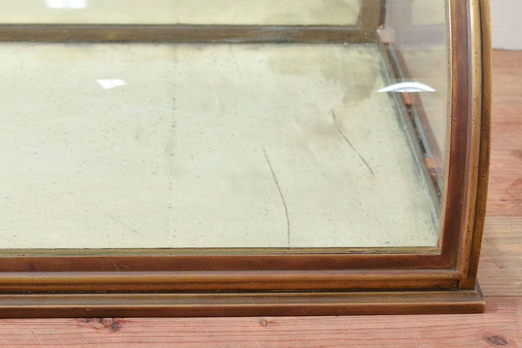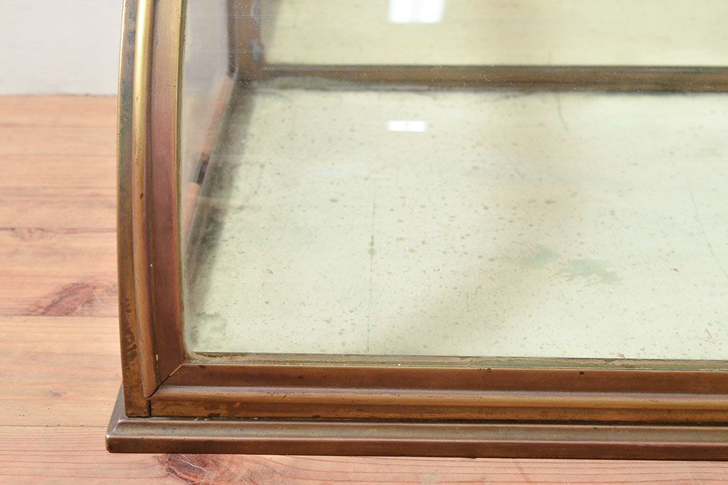 ラフジュ工房> 店舗什器 > フランスアンティーク 真鍮枠がおしゃれなRガラス卓上ショーケース(ガラスケース、店舗什器、曲げガラス、陳列棚)(R-053054)