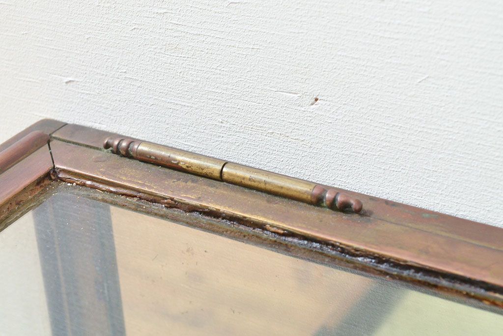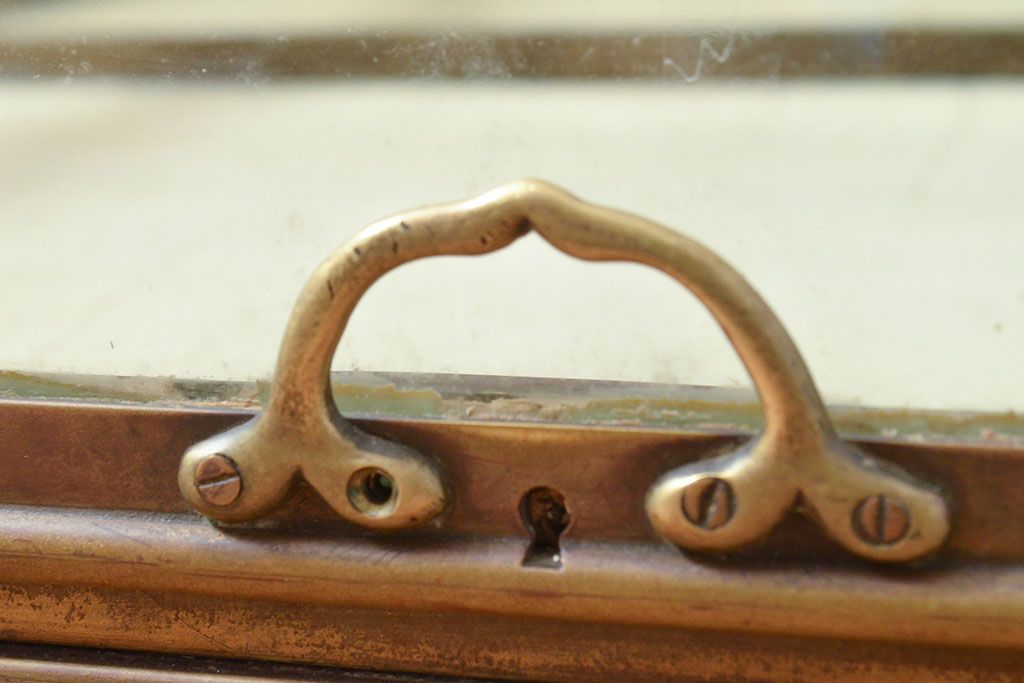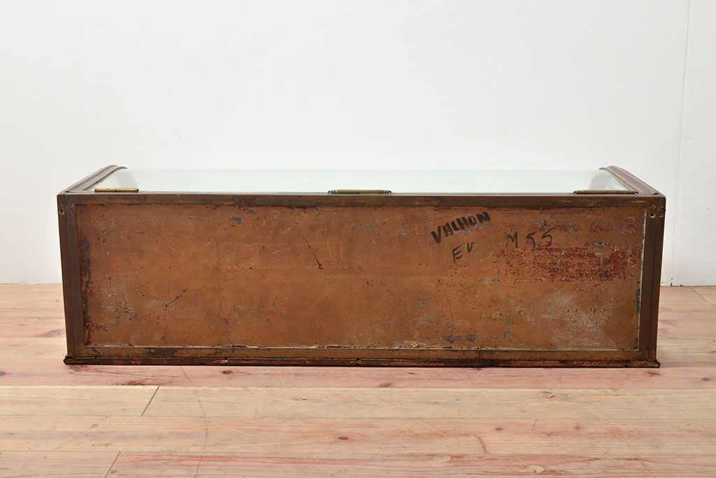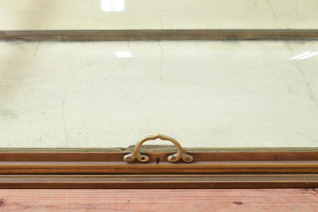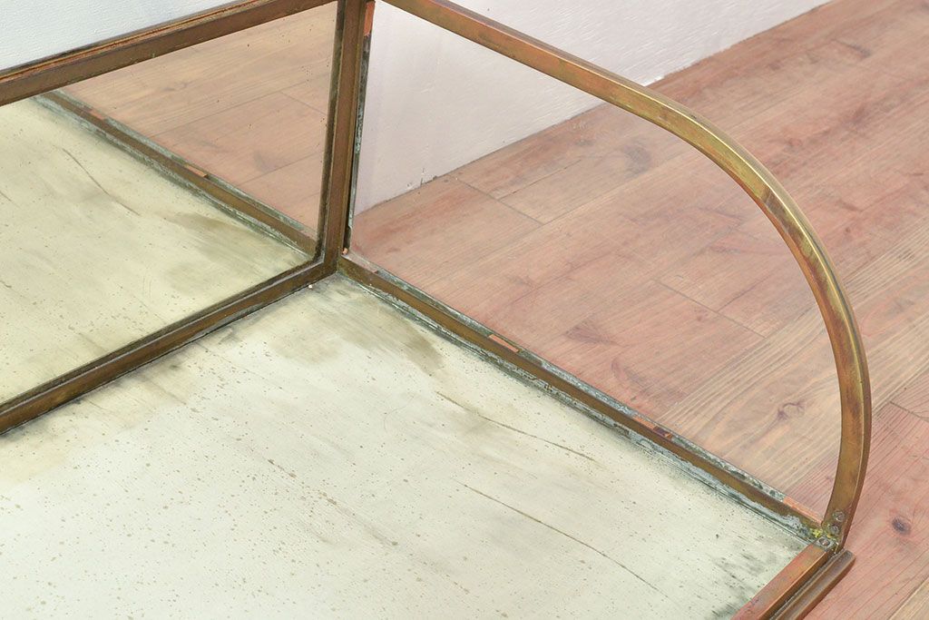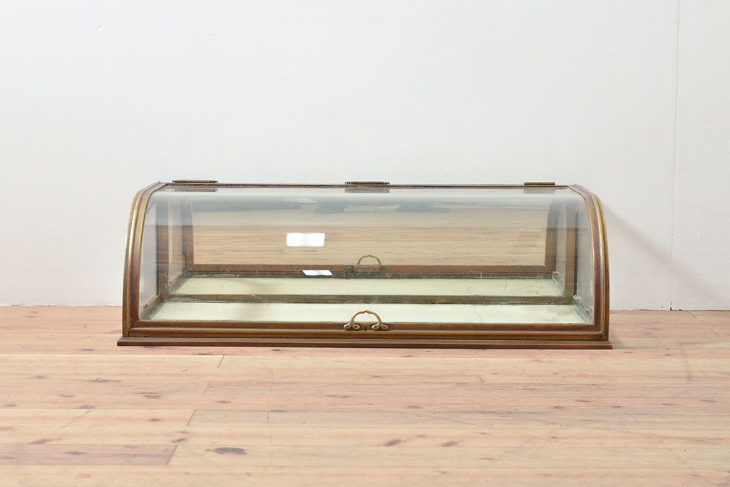 ラフジュ工房> 店舗什器 > フランスアンティーク 真鍮枠がおしゃれなRガラス卓上ショーケース(ガラスケース、店舗什器、曲げガラス、陳列棚)(R-053054)