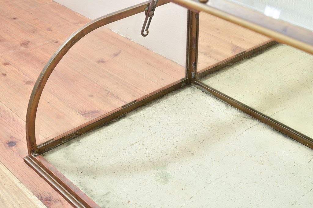 フランスアンティーク 真鍮枠がおしゃれなRガラス卓上ショーケース(ガラスケース、店舗什器、曲げガラス、陳列棚)(R-053054)