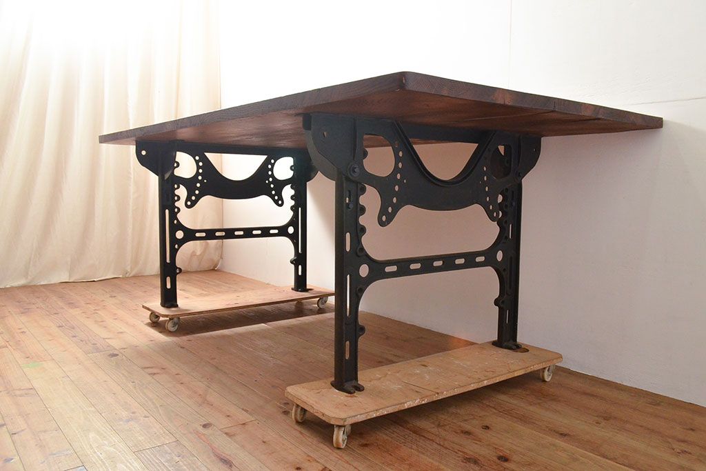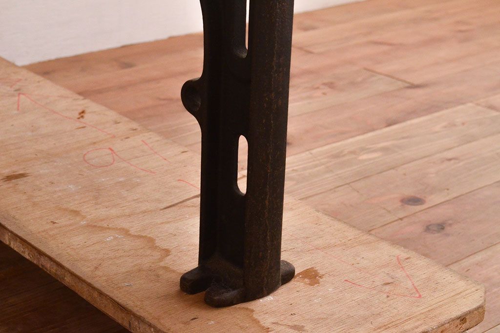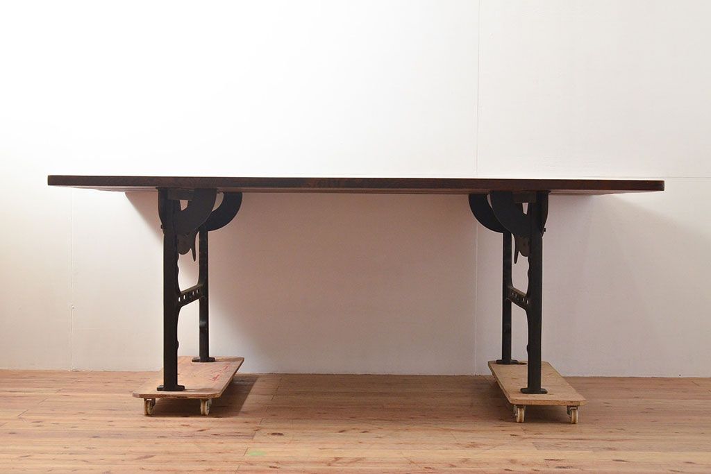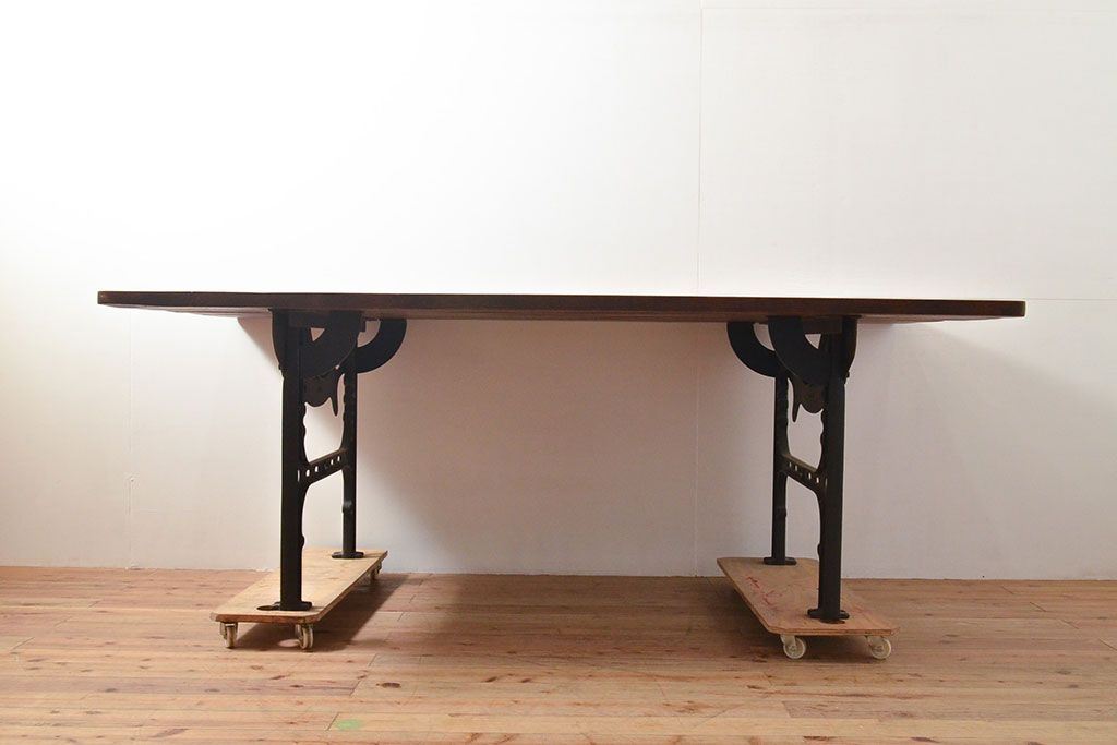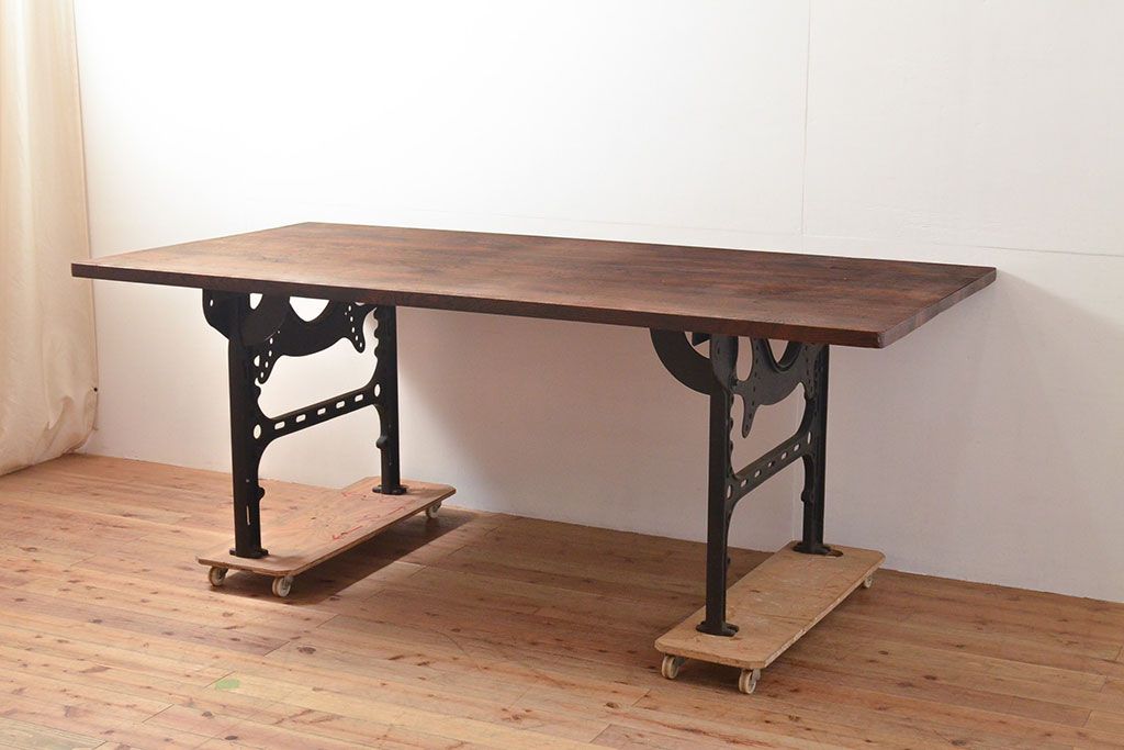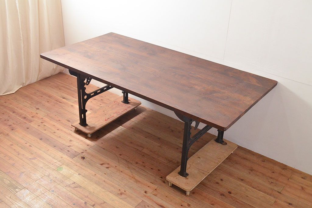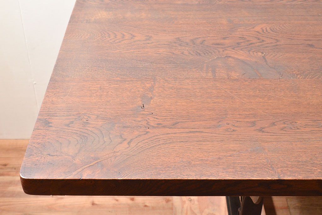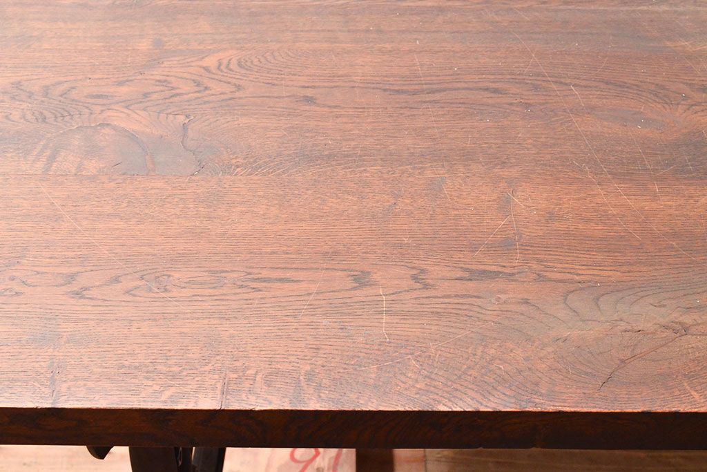 ラフジュ工房> テーブル> 4人用ダイニングテーブル > フランスアンティーク オーク材 アイアンレッグがクールでかっこいい特大テーブル(ダイニングテーブル、作業台)(R-053055)