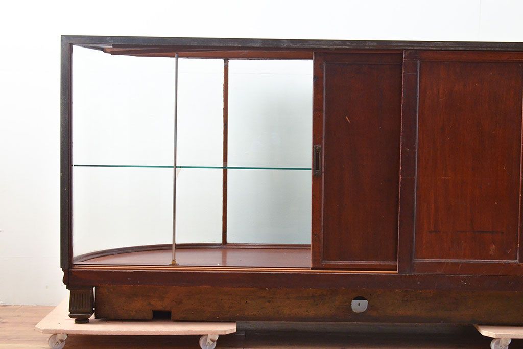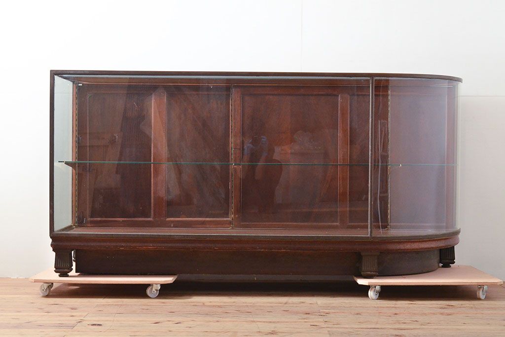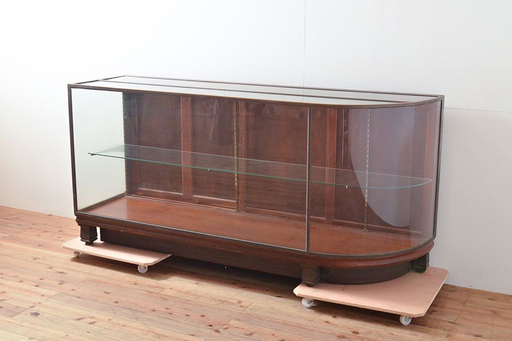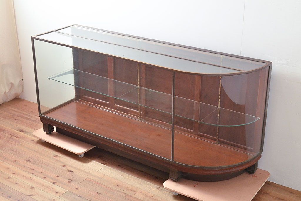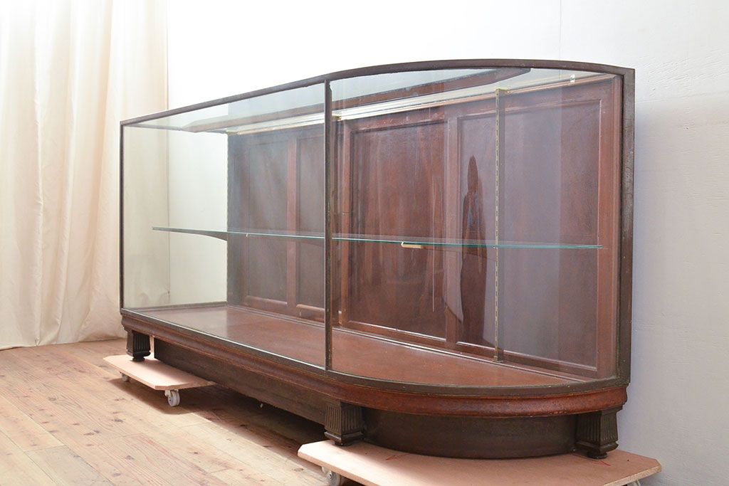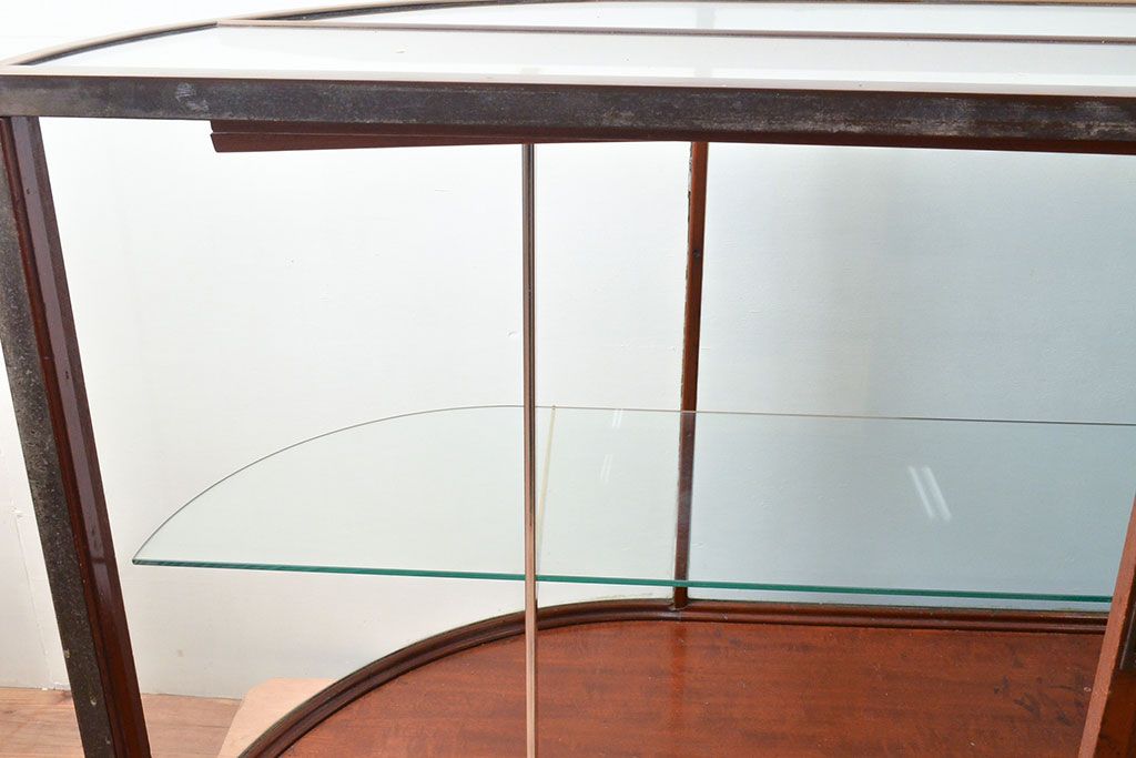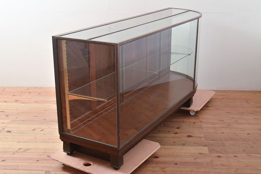 ラフジュ工房> テーブル> カウンターテーブル > フランスアンティーク 真鍮フレーム 脚の凝ったデザインが魅力的なR型ガラスケース(ショーケース、カウンターテーブル、店舗什器)(R-053086)