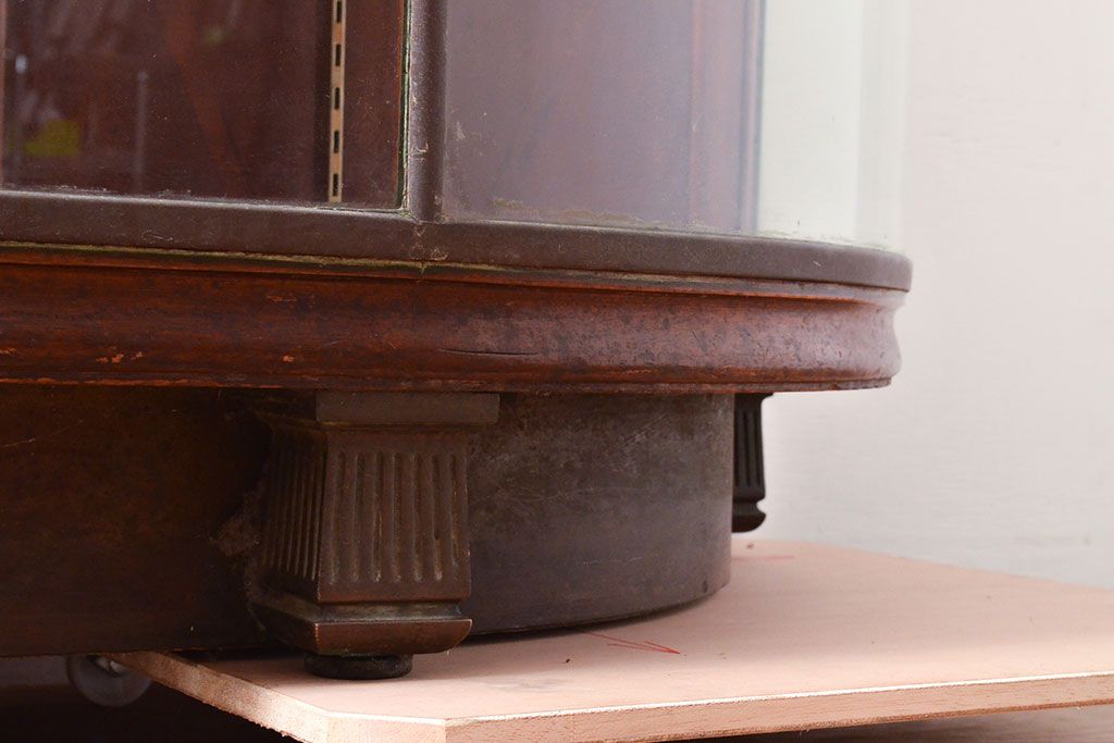 ラフジュ工房> ガラスケース・ショーケース > フランスアンティーク 真鍮フレーム 脚の凝ったデザインが魅力的なR型ガラスケース(ショーケース、カウンターテーブル、店舗什器)(R-053086)