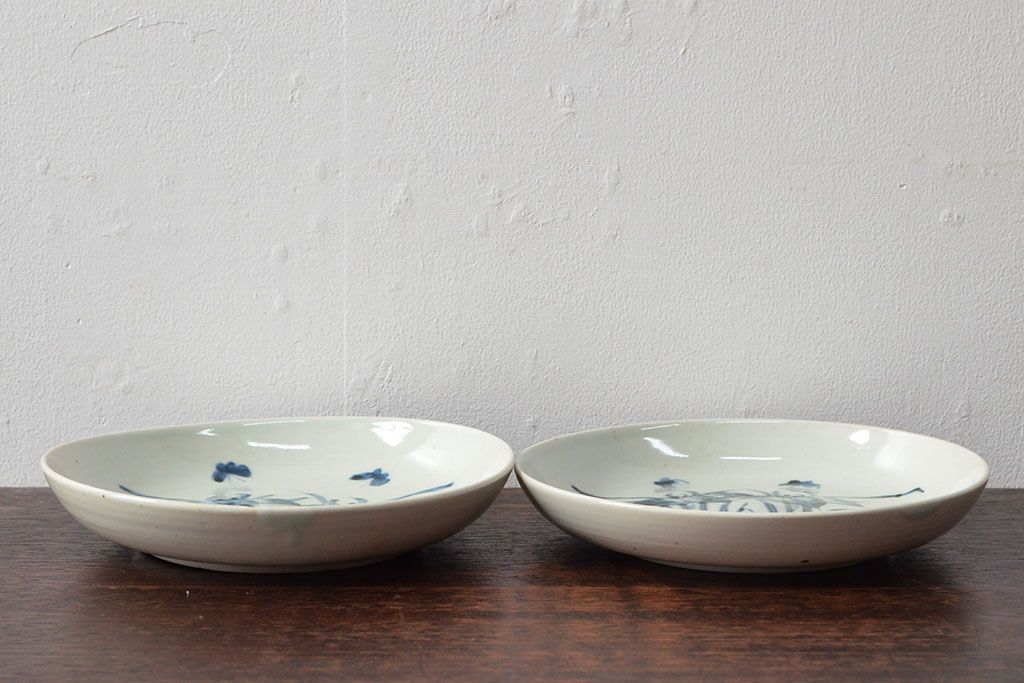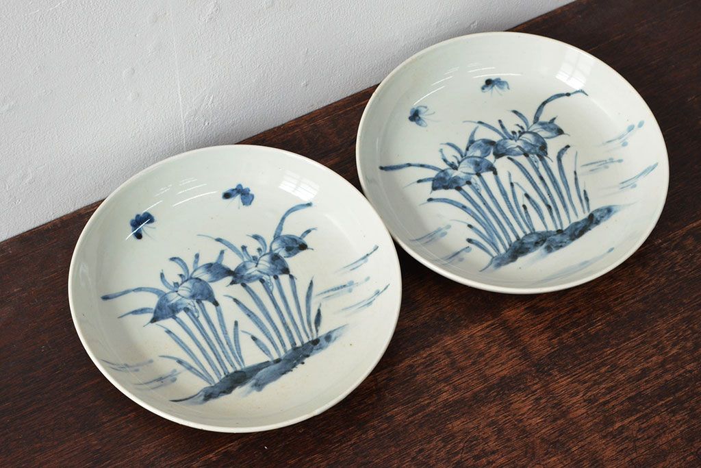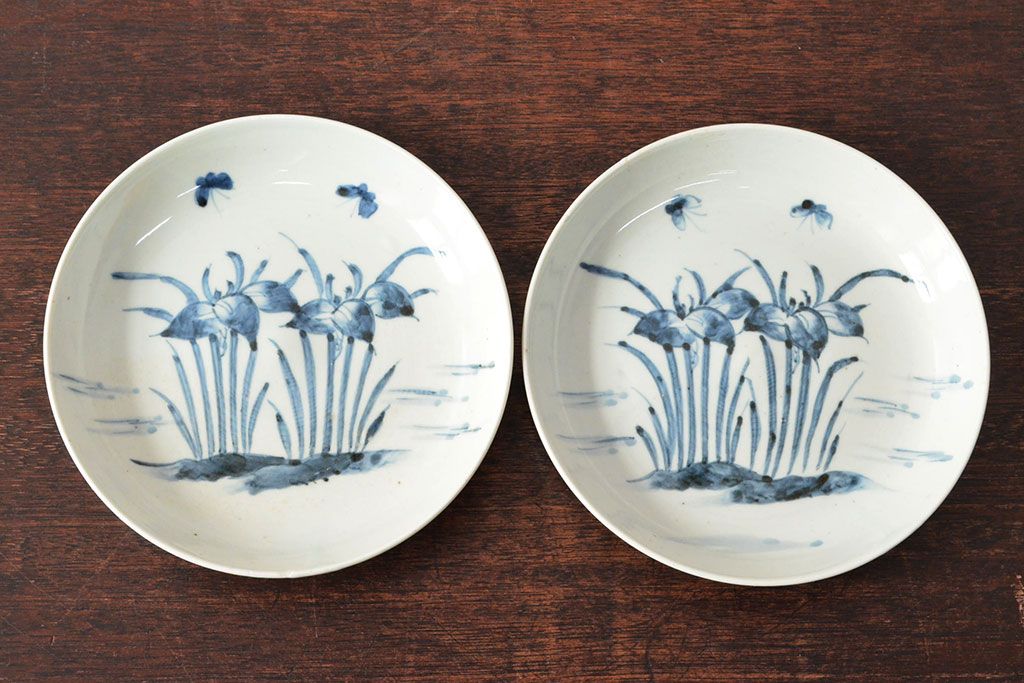 ラフジュ工房> 和食器・茶道具 > 江戸期 古伊万里 花蝶図 染付 六寸皿2枚(和食器)(R-052482)