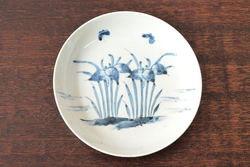 ラフジュ工房> 和食器・茶道具> 皿 > 江戸期 古伊万里 花蝶図 染付 六寸皿2枚(和食器)(R-052482)