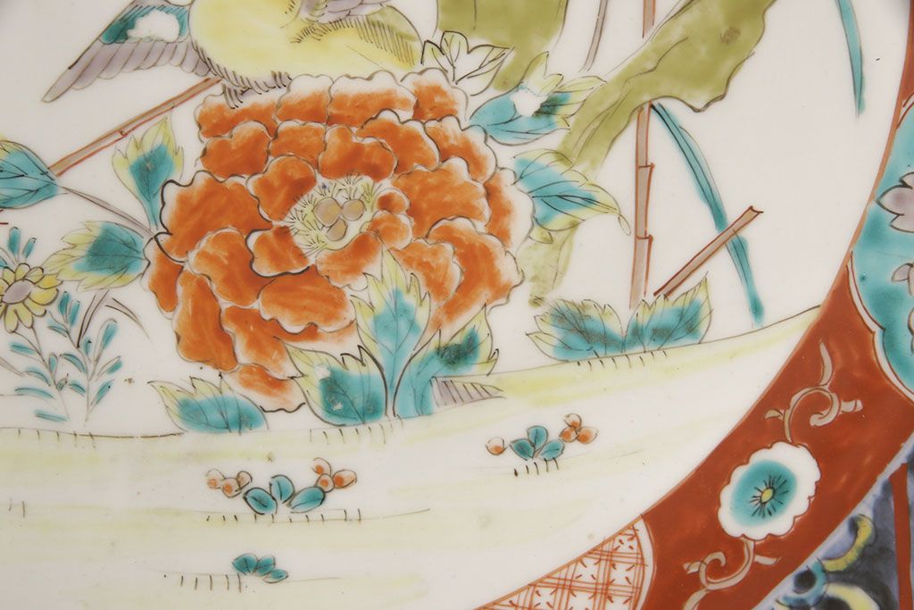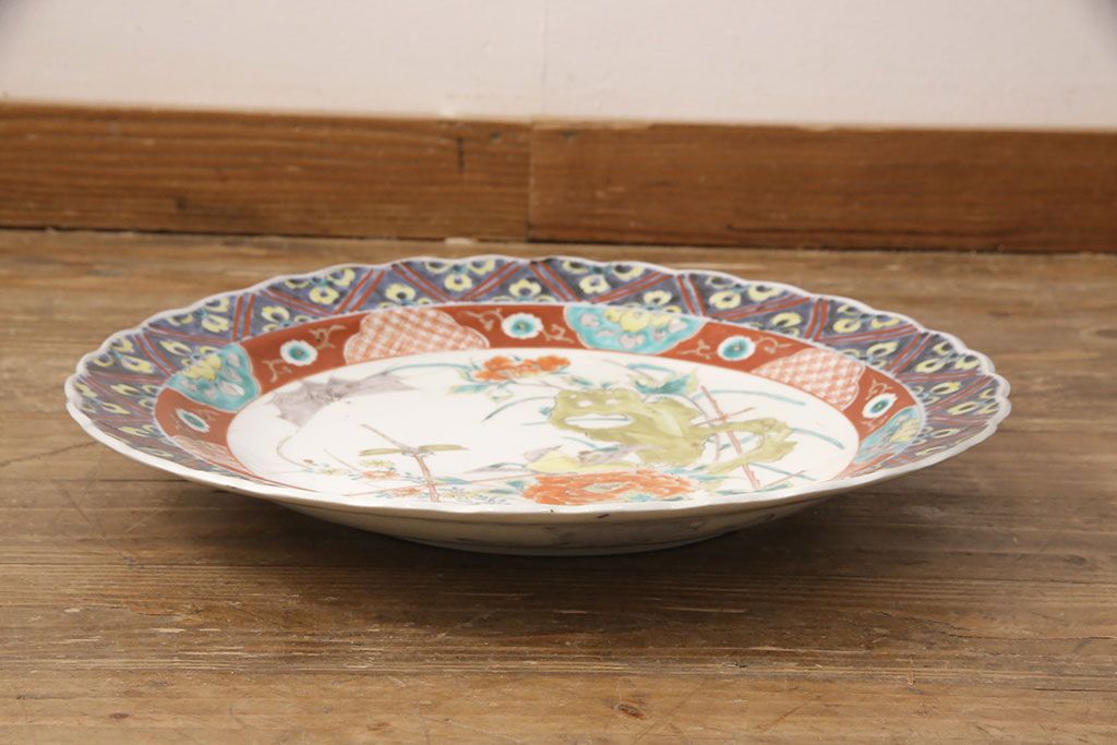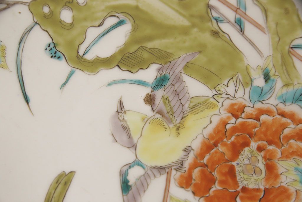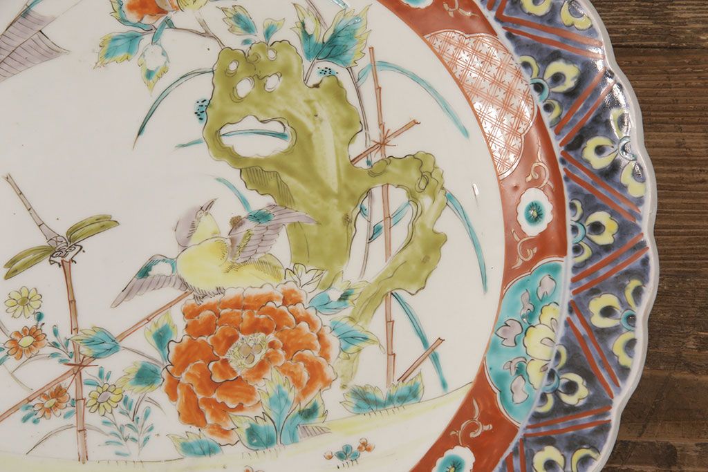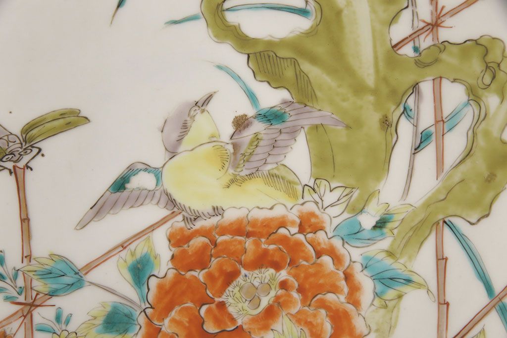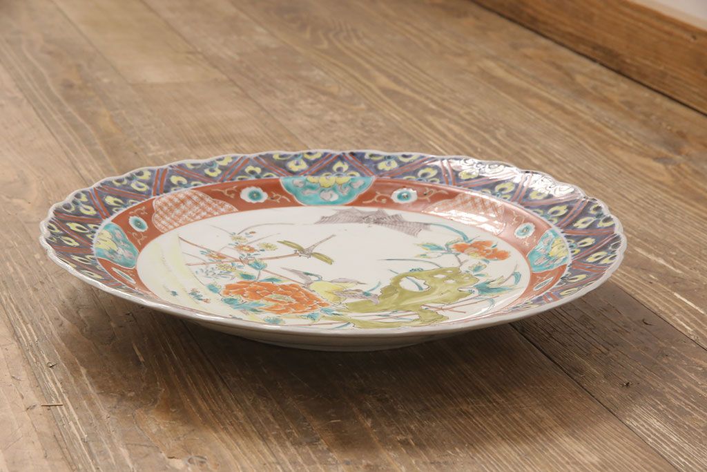 ラフジュ工房> 和食器・茶道具 > 江戸期 古伊万里 花鳥にトンボとクモ 色絵一尺四寸大皿(和食器)(R-052419)