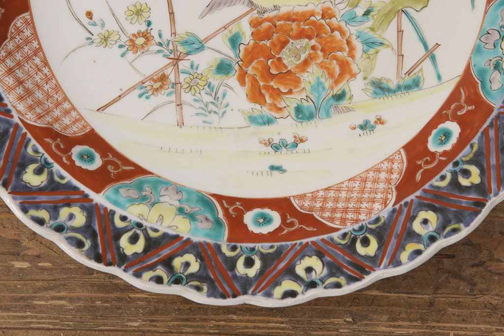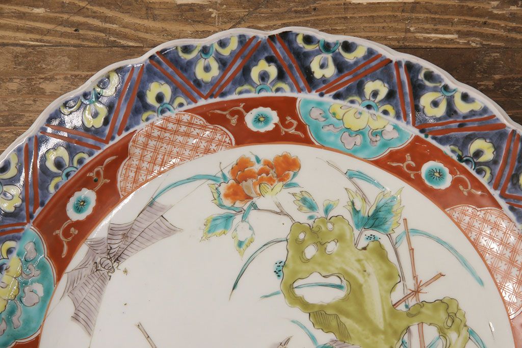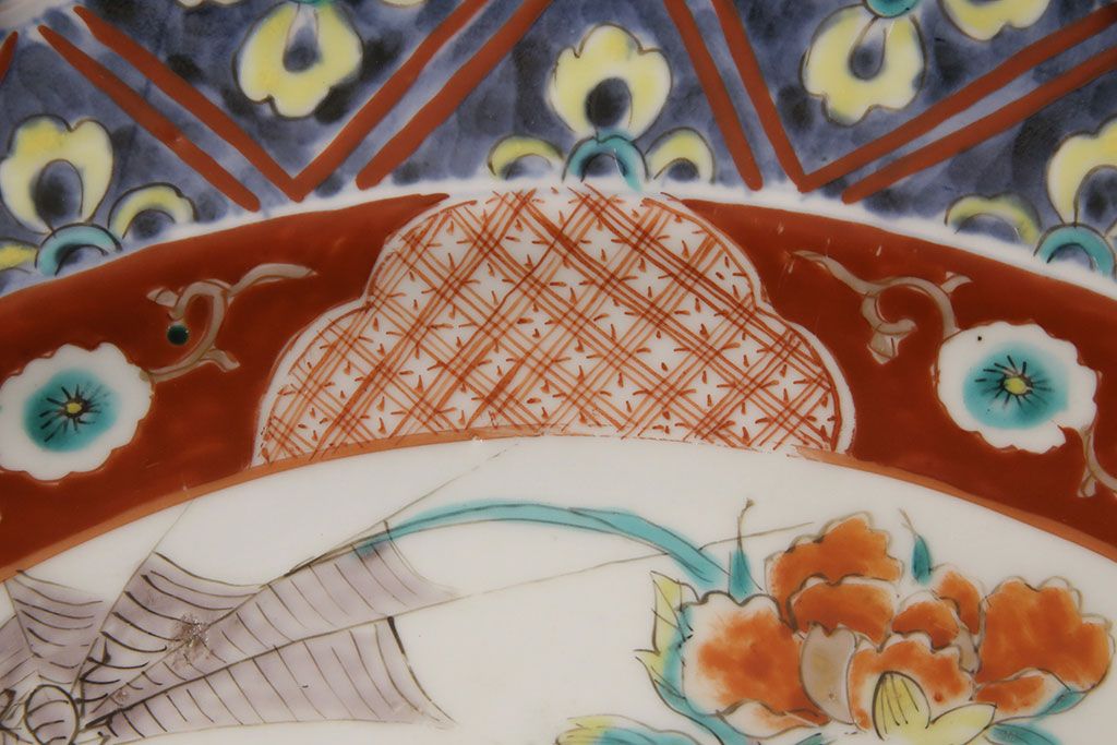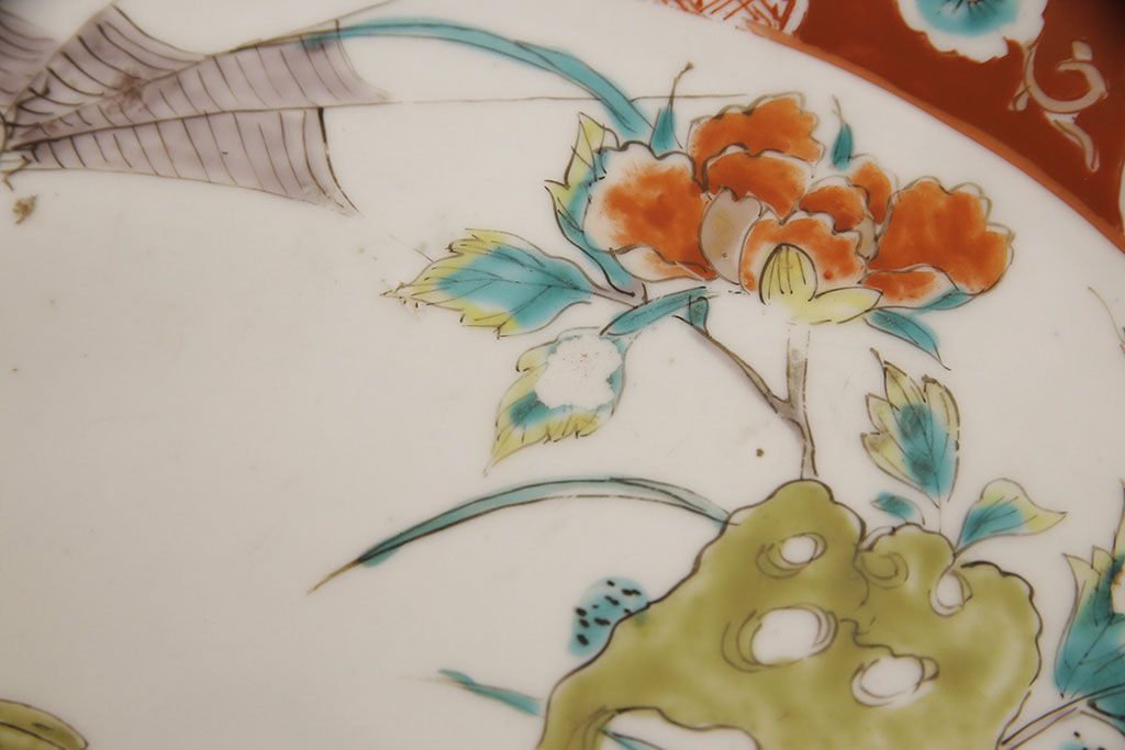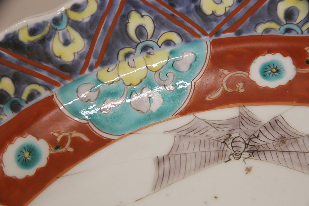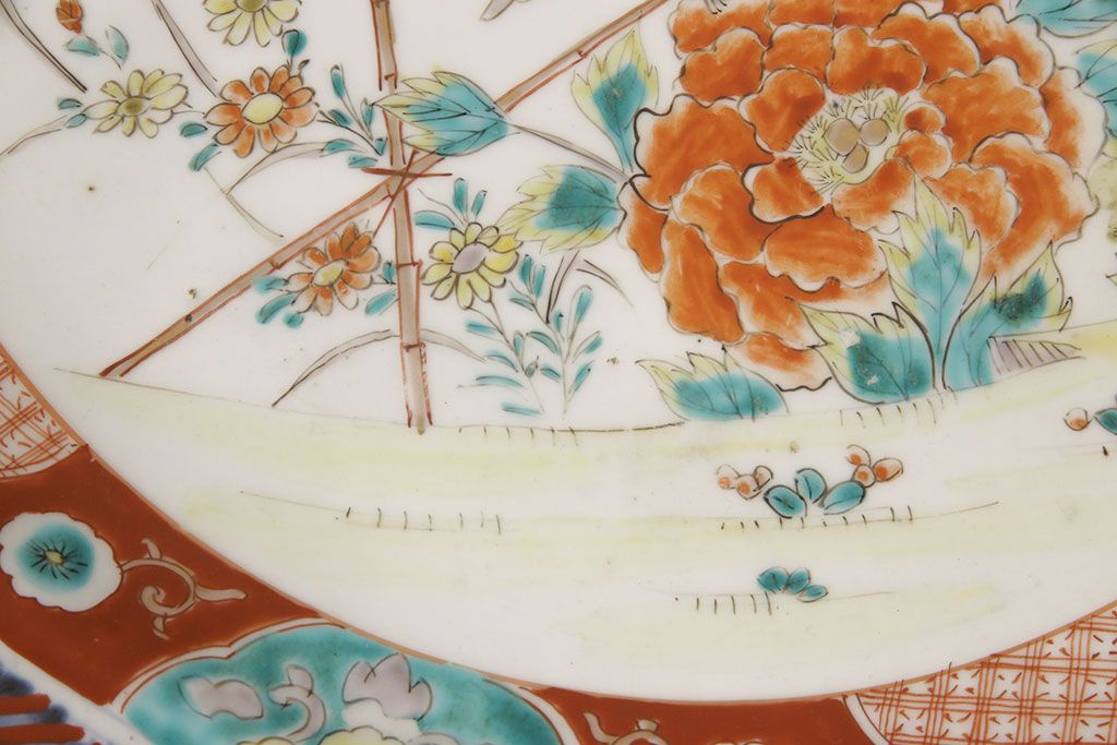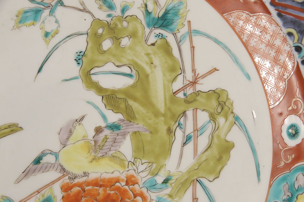 ラフジュ工房> 和食器・茶道具 > 江戸期 古伊万里 花鳥にトンボとクモ 色絵一尺四寸大皿(和食器)(R-052419)