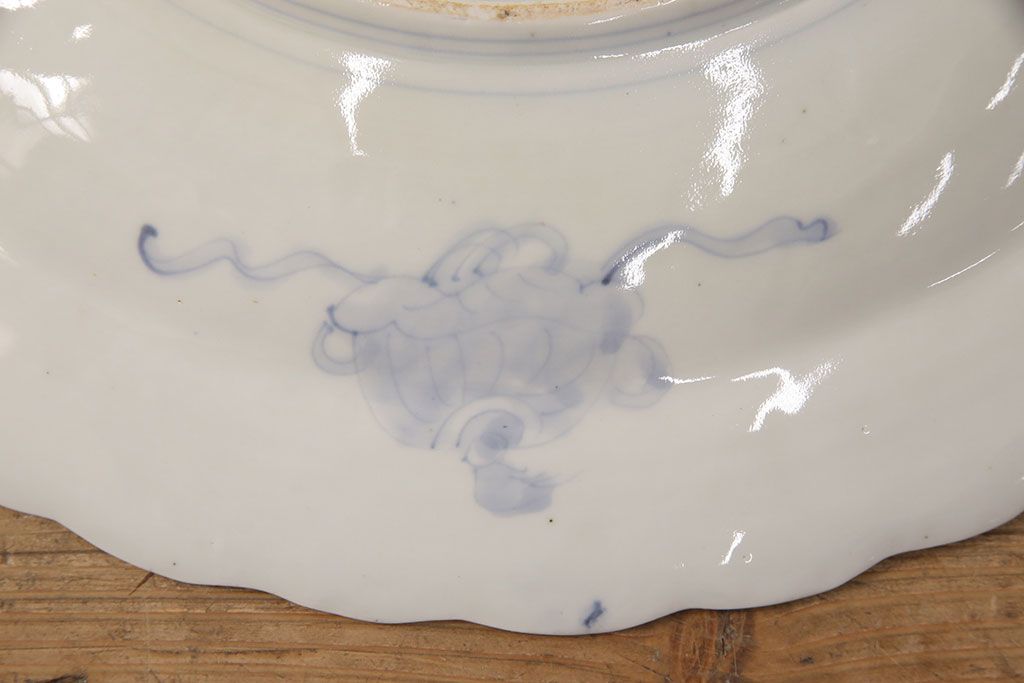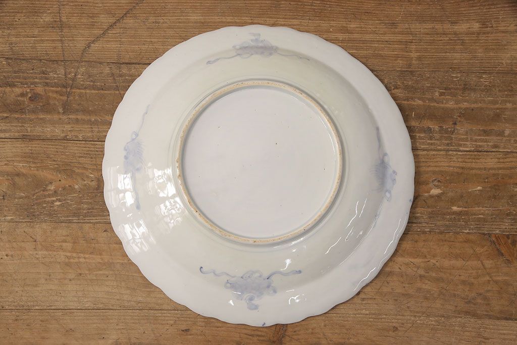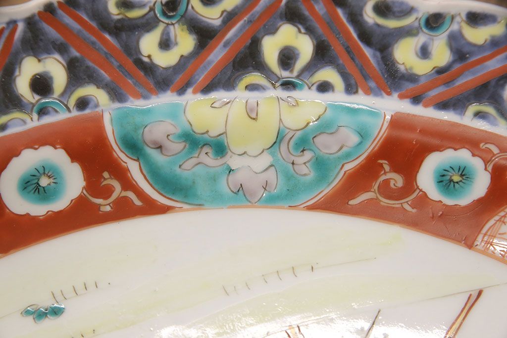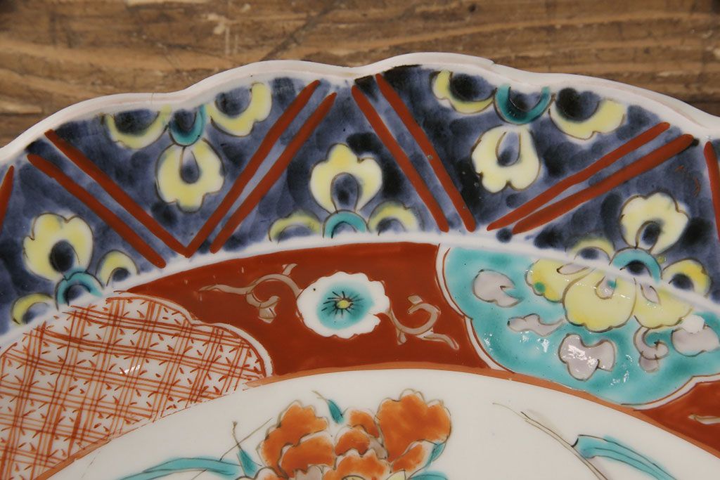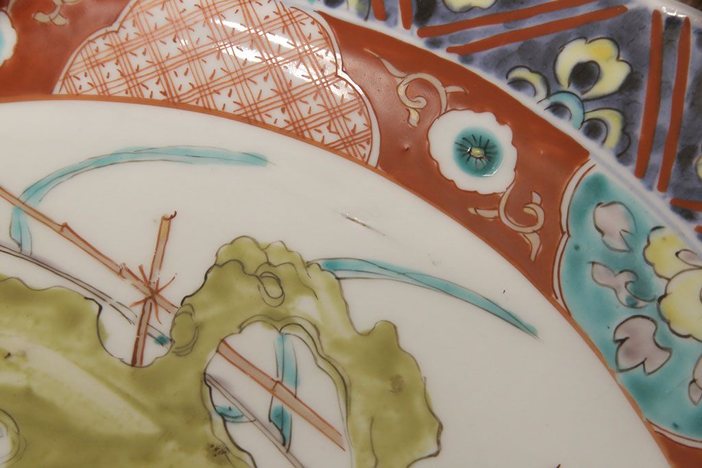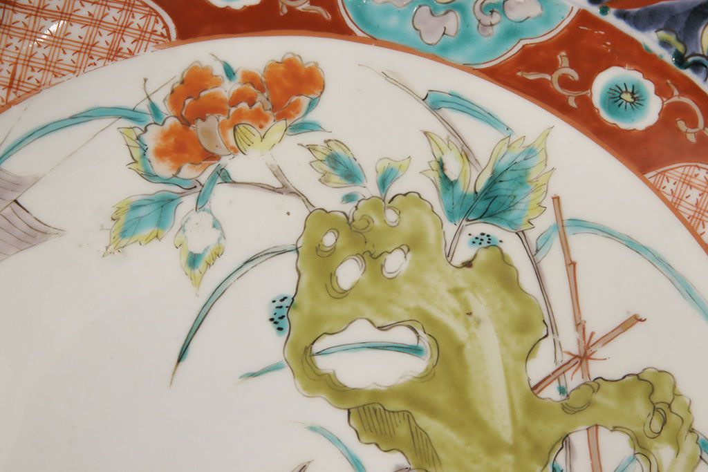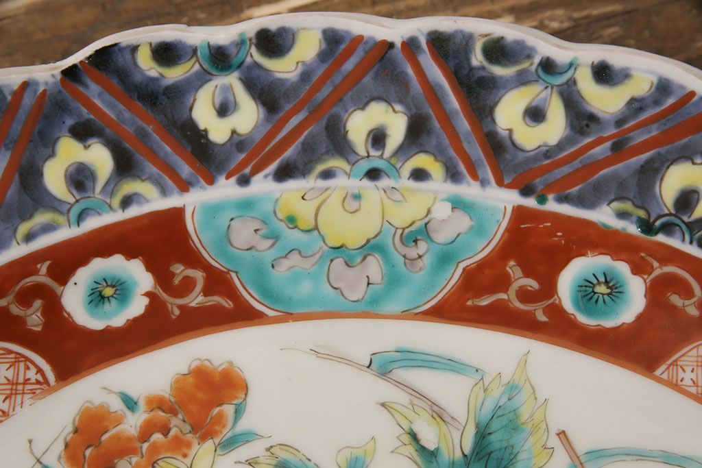 ラフジュ工房> 和食器・茶道具 > 江戸期 古伊万里 花鳥にトンボとクモ 色絵一尺四寸大皿(和食器)(R-052419)