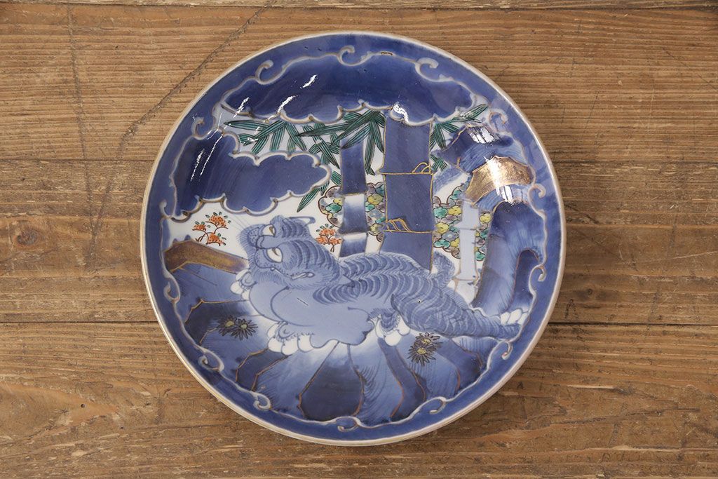 ラフジュ工房> 和食器・茶道具 > 江戸期 古伊万里 竹虎図 染付 大皿29cm(和食器)(R-052422)