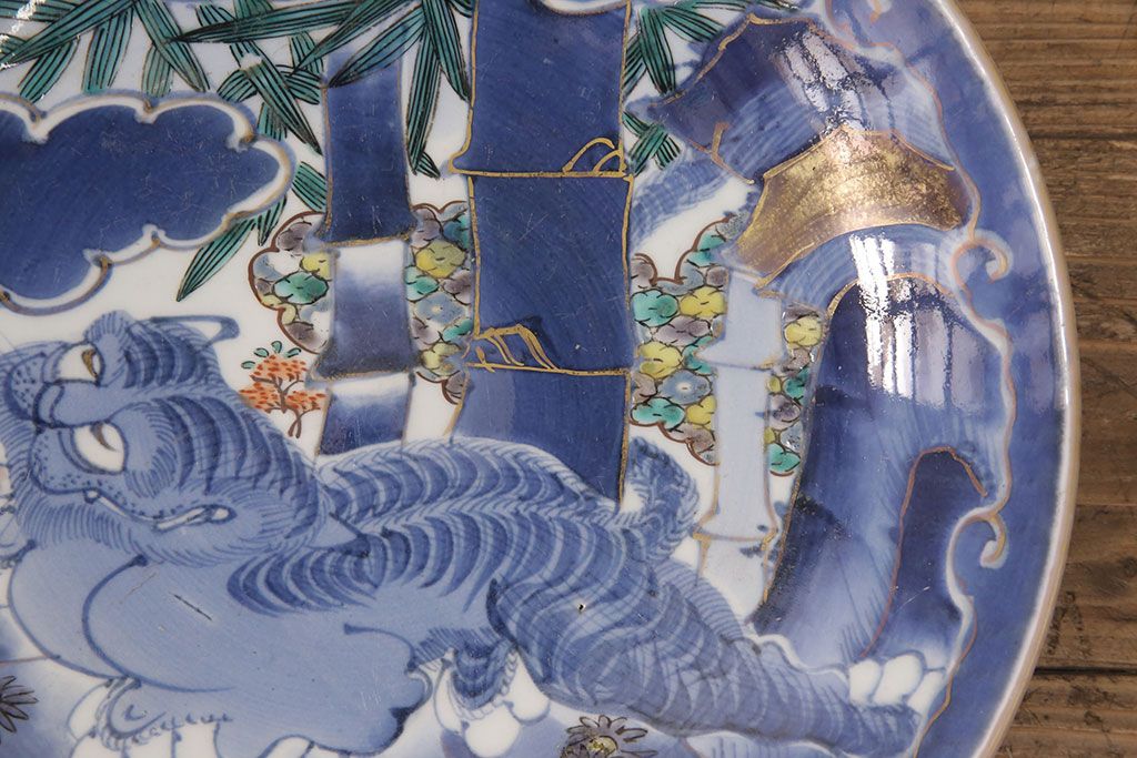 ラフジュ工房> 骨董・美術品> 骨董-陶磁器 > 江戸期 古伊万里 竹虎図 染付 大皿29cm(和食器)(R-052422)