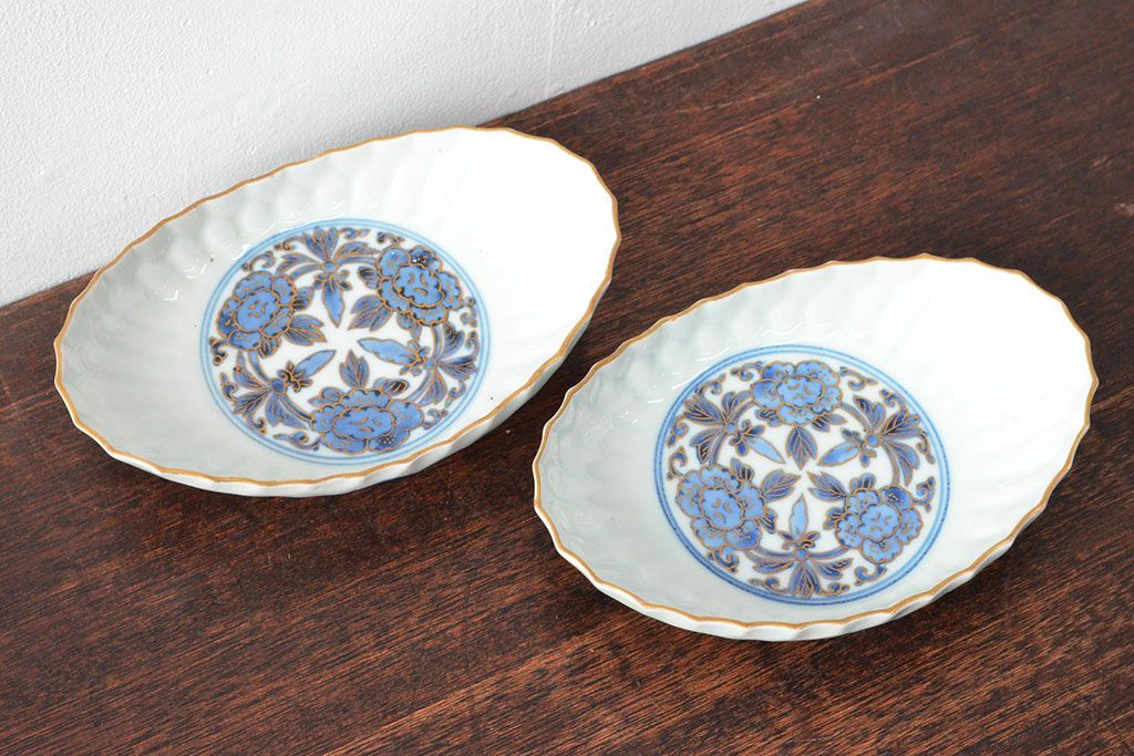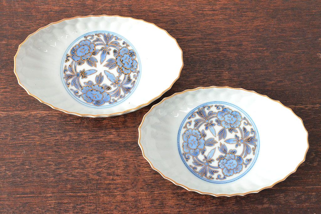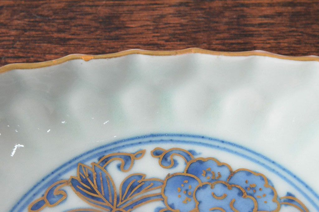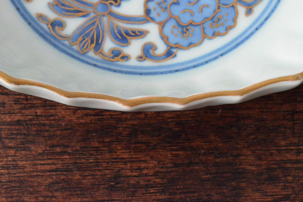 ラフジュ工房> 和食器・茶道具 > 江戸期 古伊万里 大明年製 金縁花文染付 変形皿2枚(和食器)(R-052486)