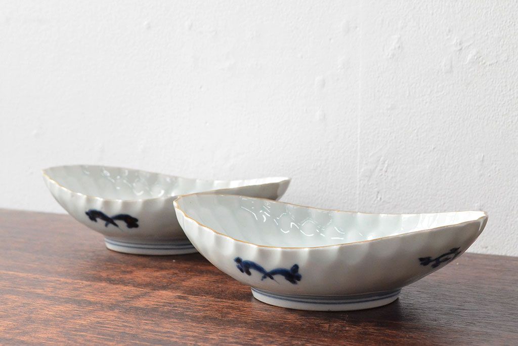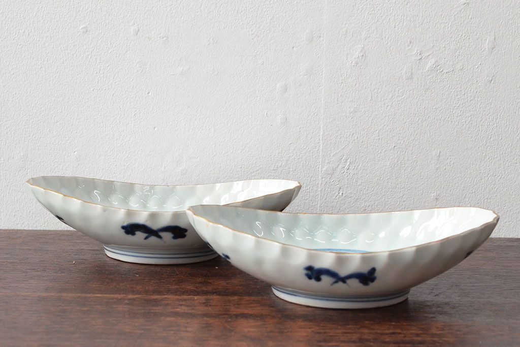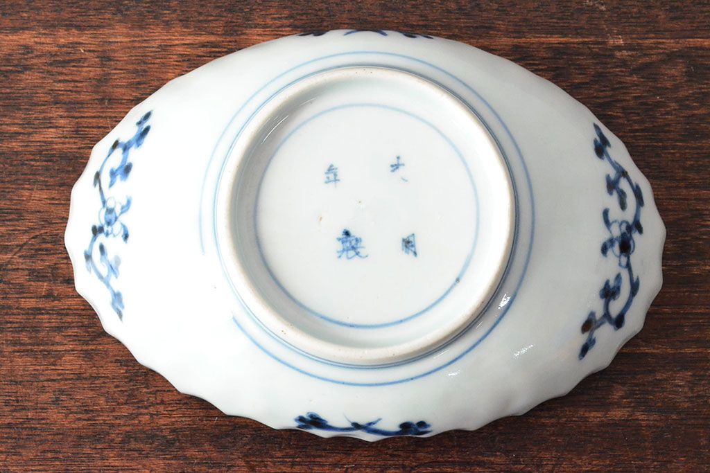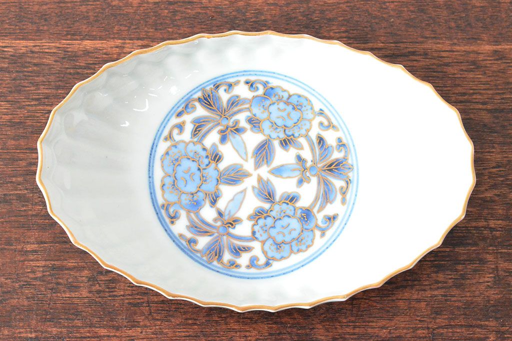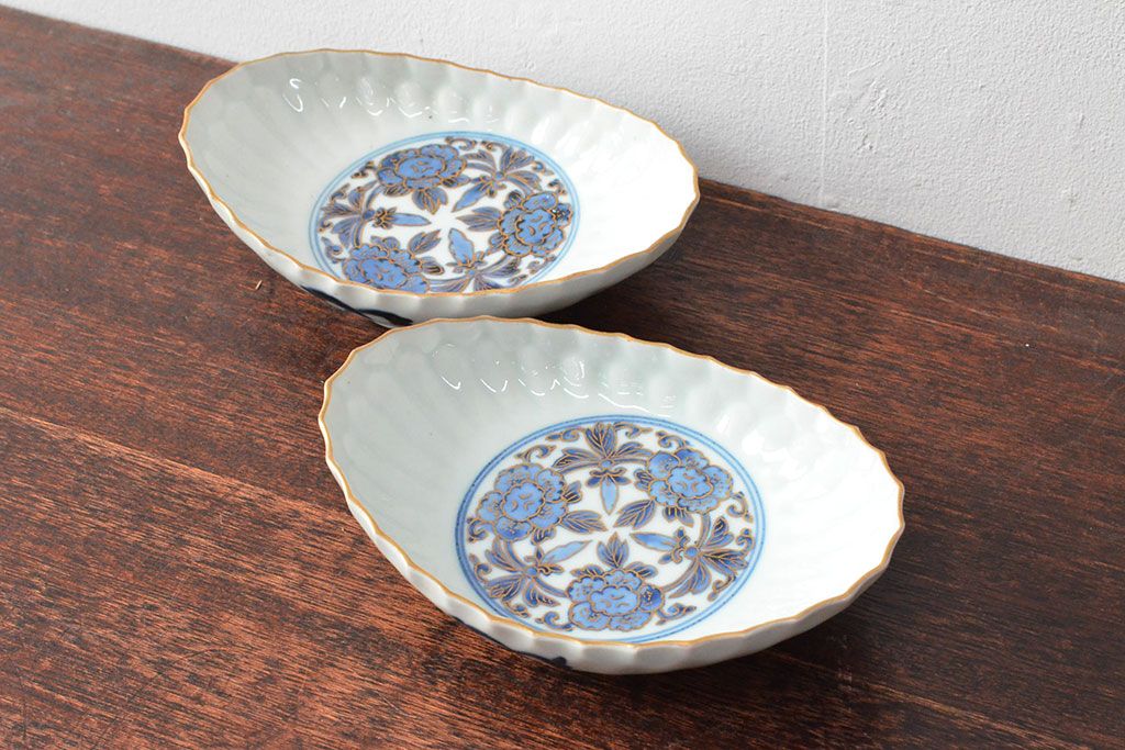 ラフジュ工房> 和食器・茶道具 > 江戸期 古伊万里 大明年製 金縁花文染付 変形皿2枚(和食器)(R-052486)