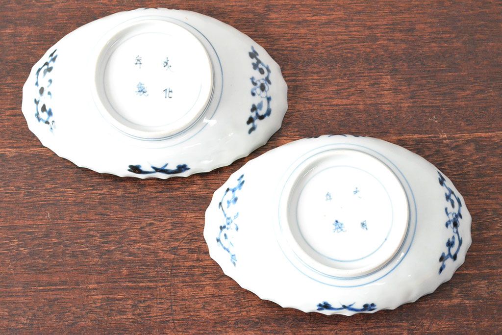 ラフジュ工房> 和食器・茶道具> 皿 > 江戸期 古伊万里 大明年製 金縁花文染付 変形皿2枚(和食器)(R-052486)