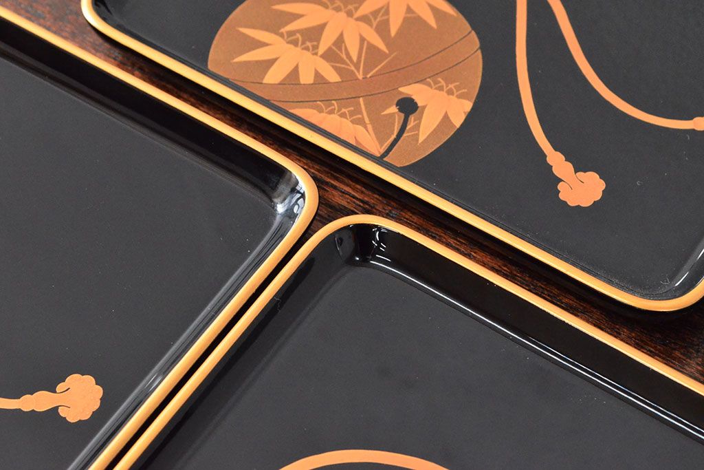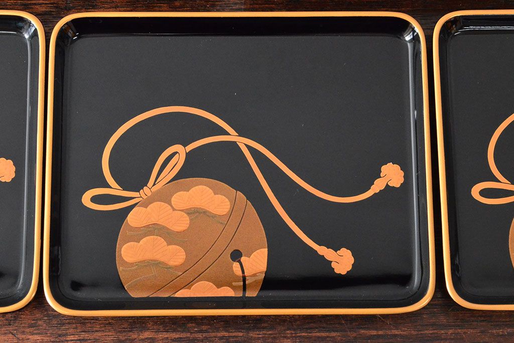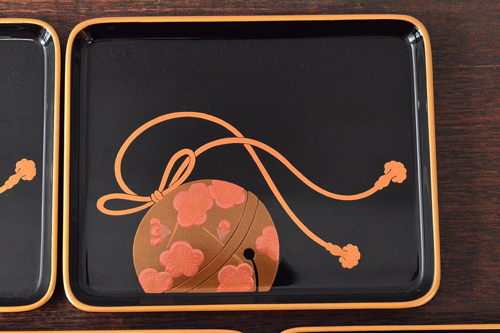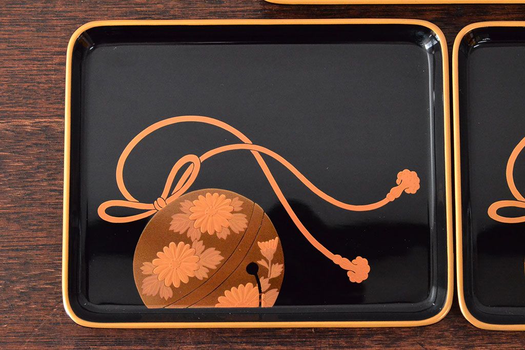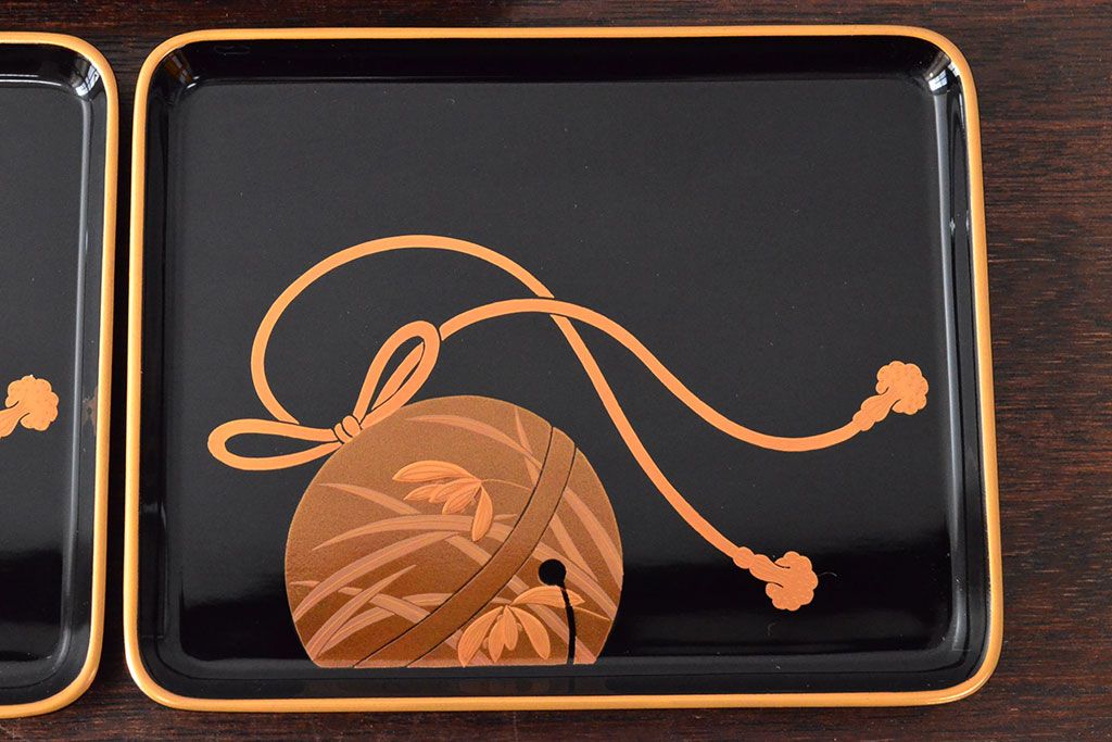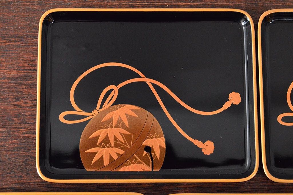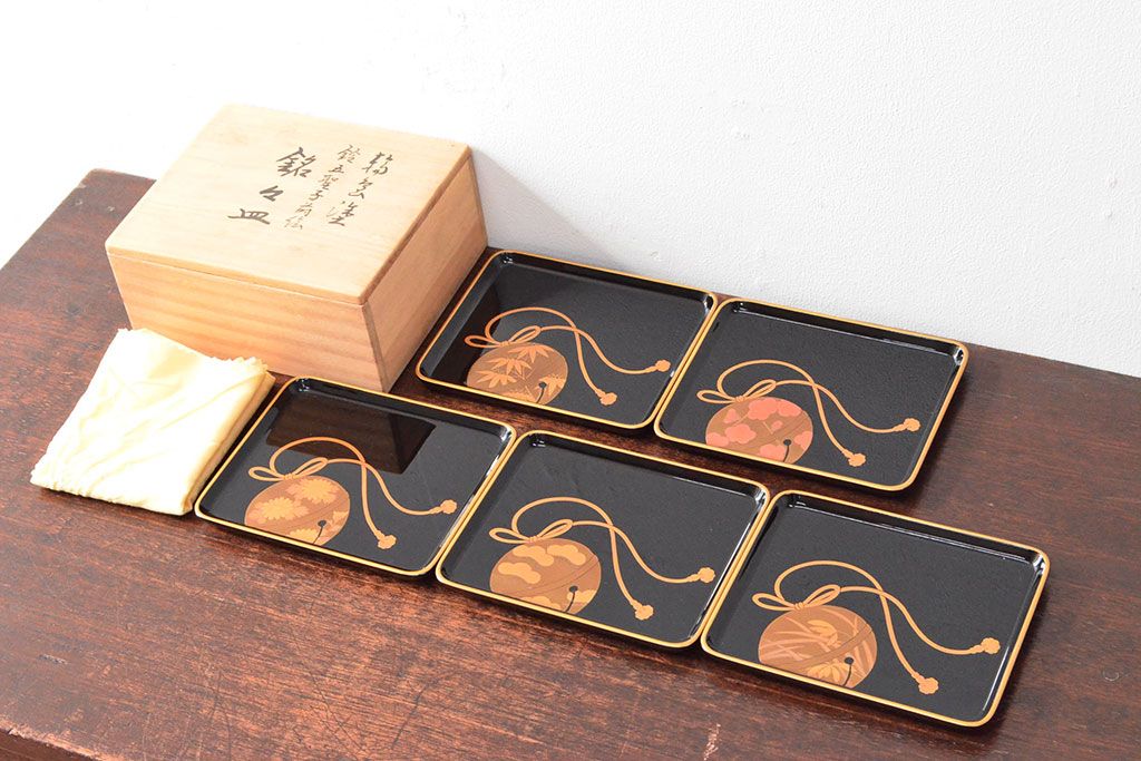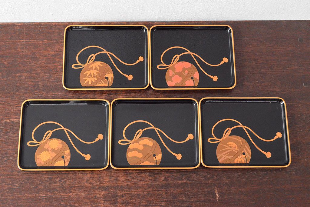 輪島塗 朝楓作 鈴五聖子蒔絵 銘々皿5客(木製、漆器)(R-052491)