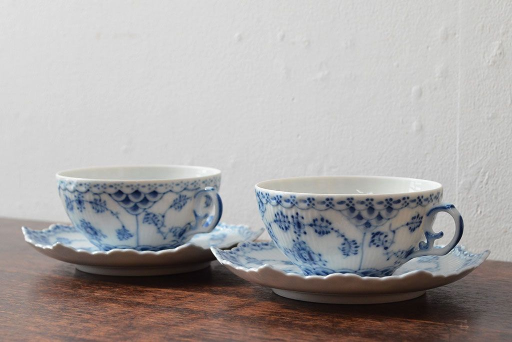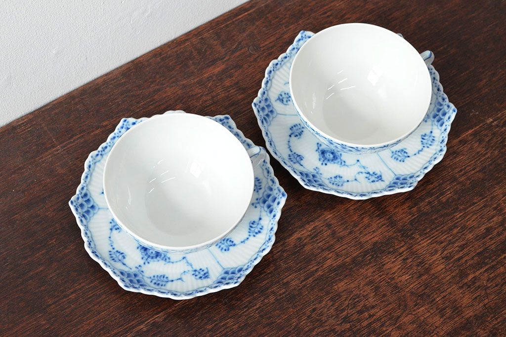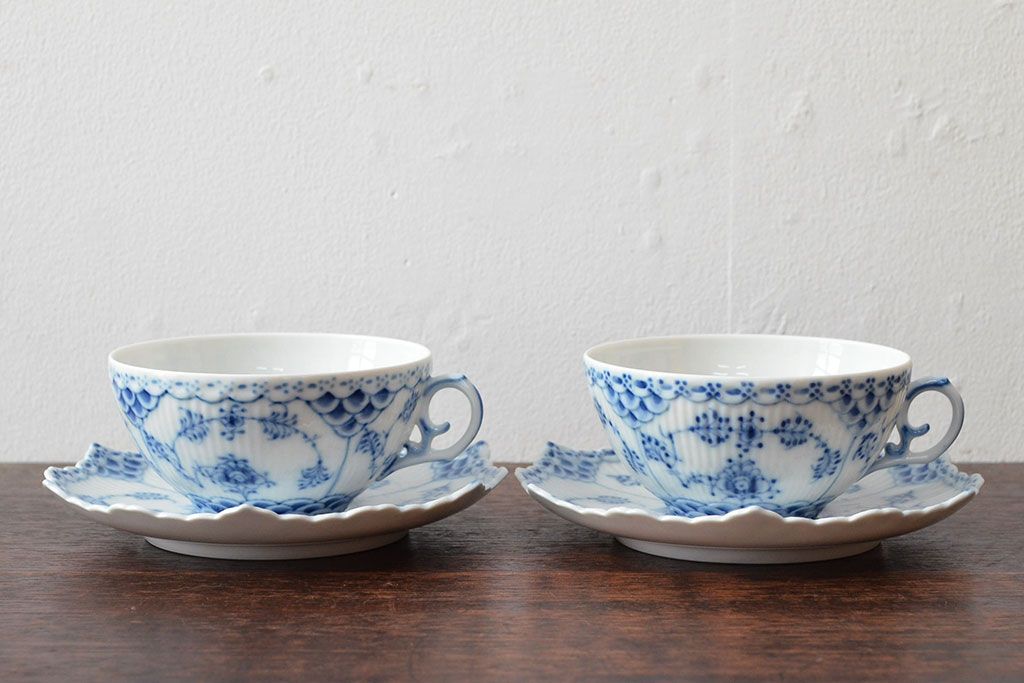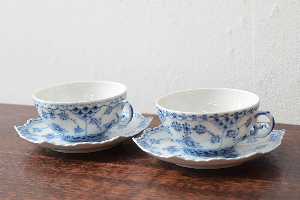 ROYAL COPENHAGEN ロイヤルコペンハーゲン ブルーフルーテッド フルレース カップ&ソーサー2客(洋食器)(定価88,000円)(R-052459)