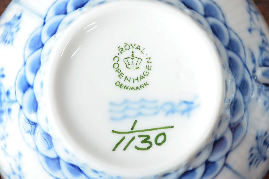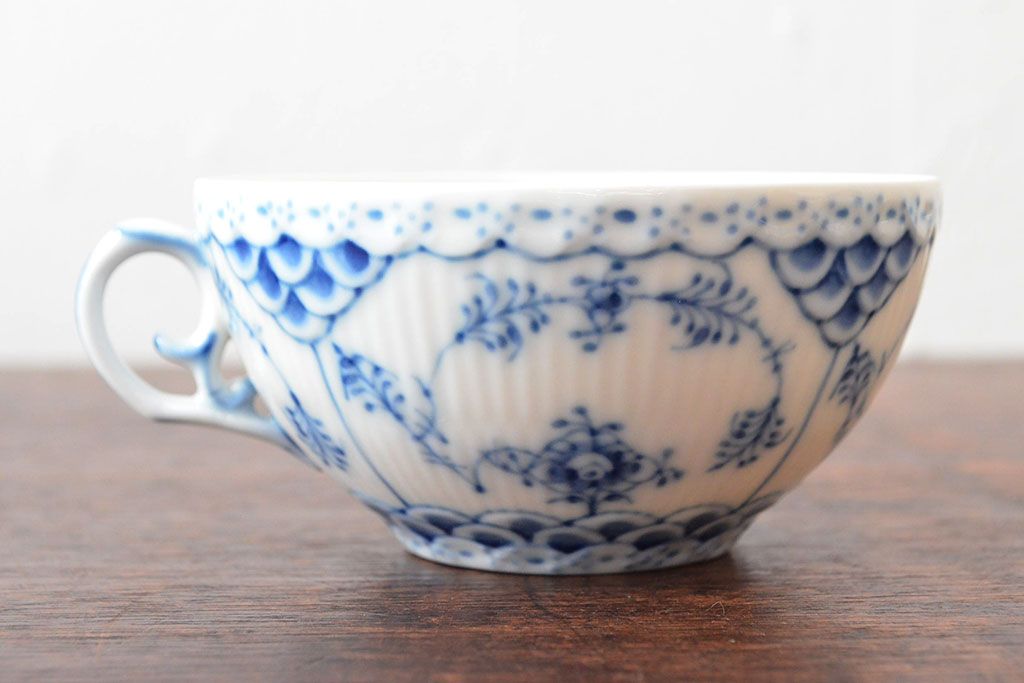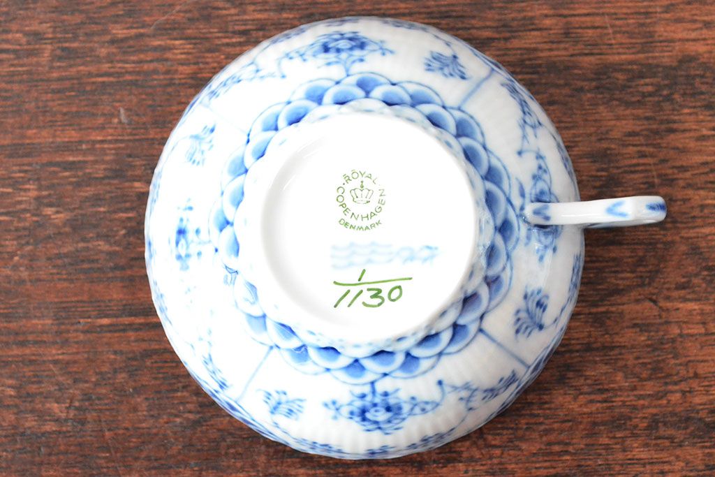 ラフジュ工房> 洋食器・キッチン用品> 皿・プレート > ROYAL COPENHAGEN ロイヤルコペンハーゲン ブルーフルーテッド フルレース カップ&ソーサー2客(洋食器)(定価88,000円)(R-052459)