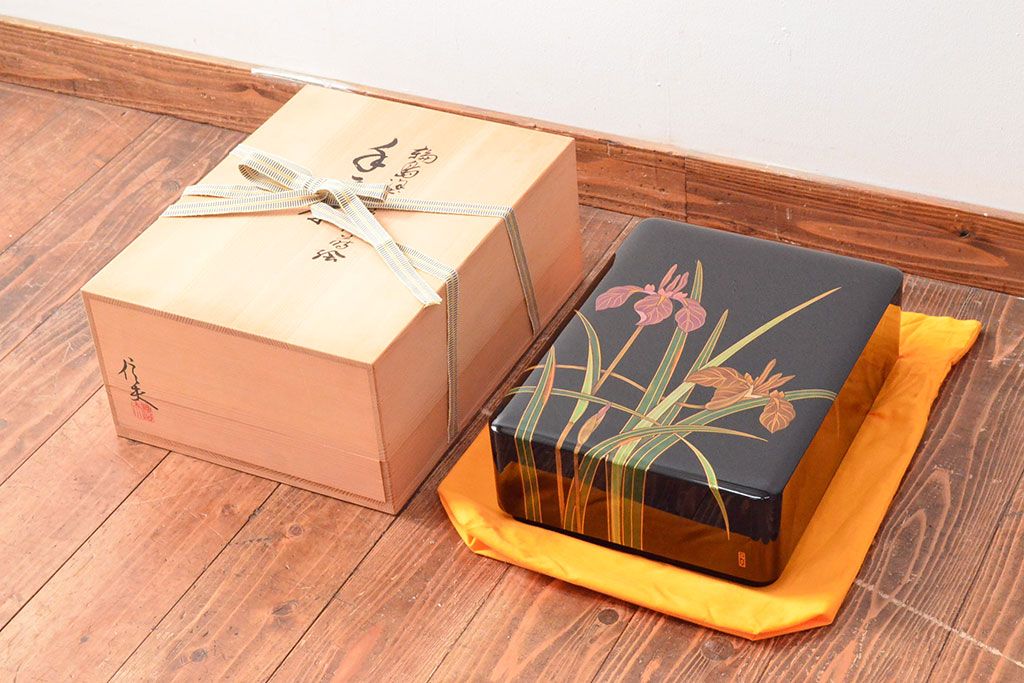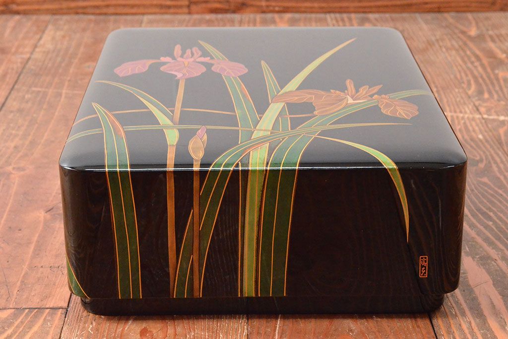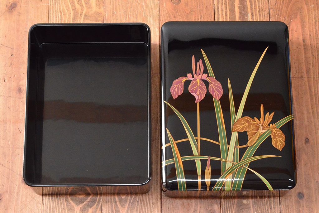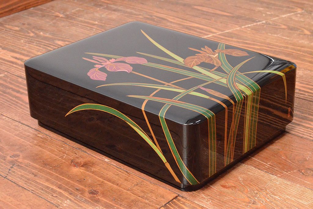 ラフジュ工房> 小物収納・トランク> 木箱 > 輪島塗 若島屋謹製 木谷信夫銘 菖蒲蒔絵 木製手文庫(文箱、手許箱)(R-052223)