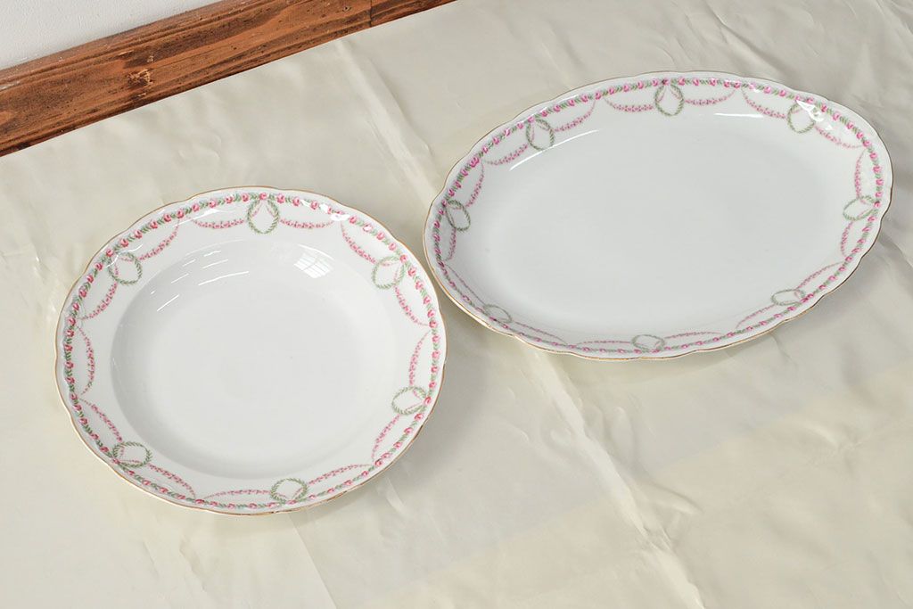 ラフジュ工房> 洋食器・キッチン用品 > アンティーク KPM(ベルリン王立磁器製陶所) オーバルプレートなど2枚(大皿、洋食器)(R-052511)