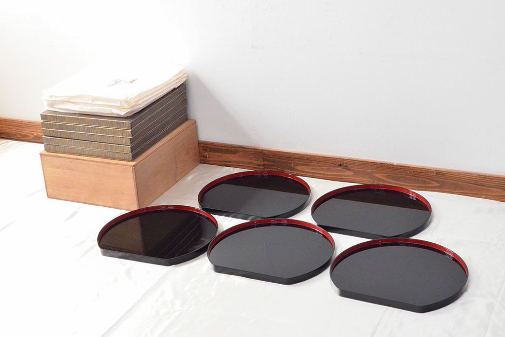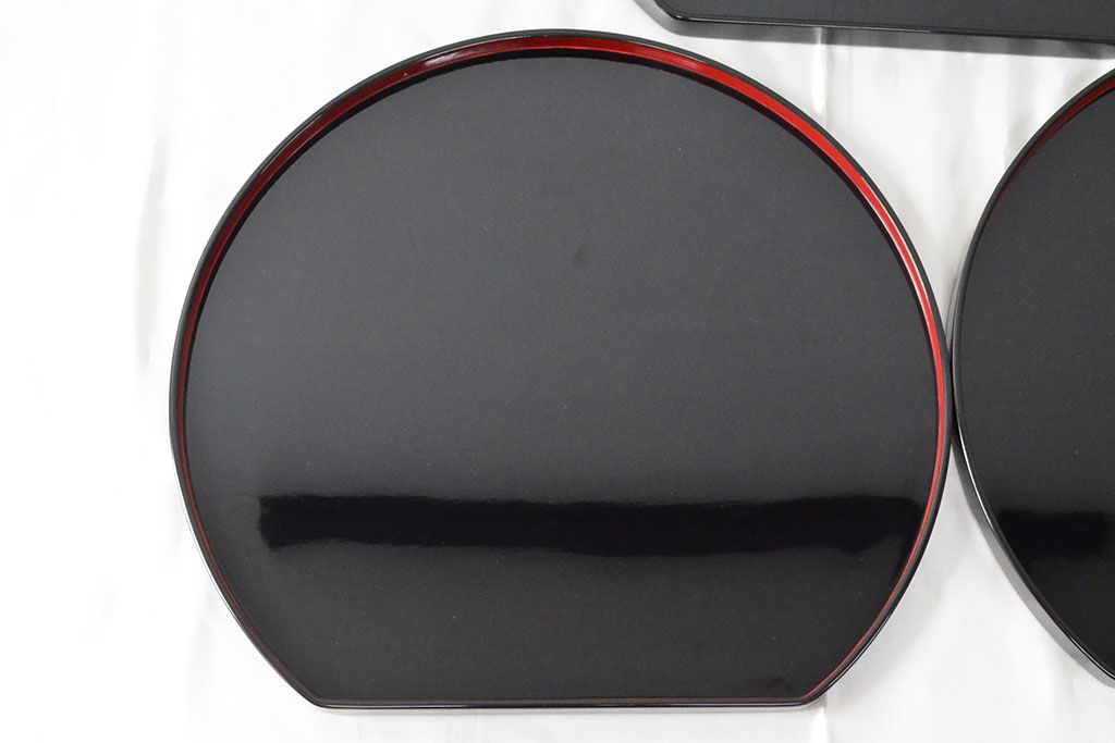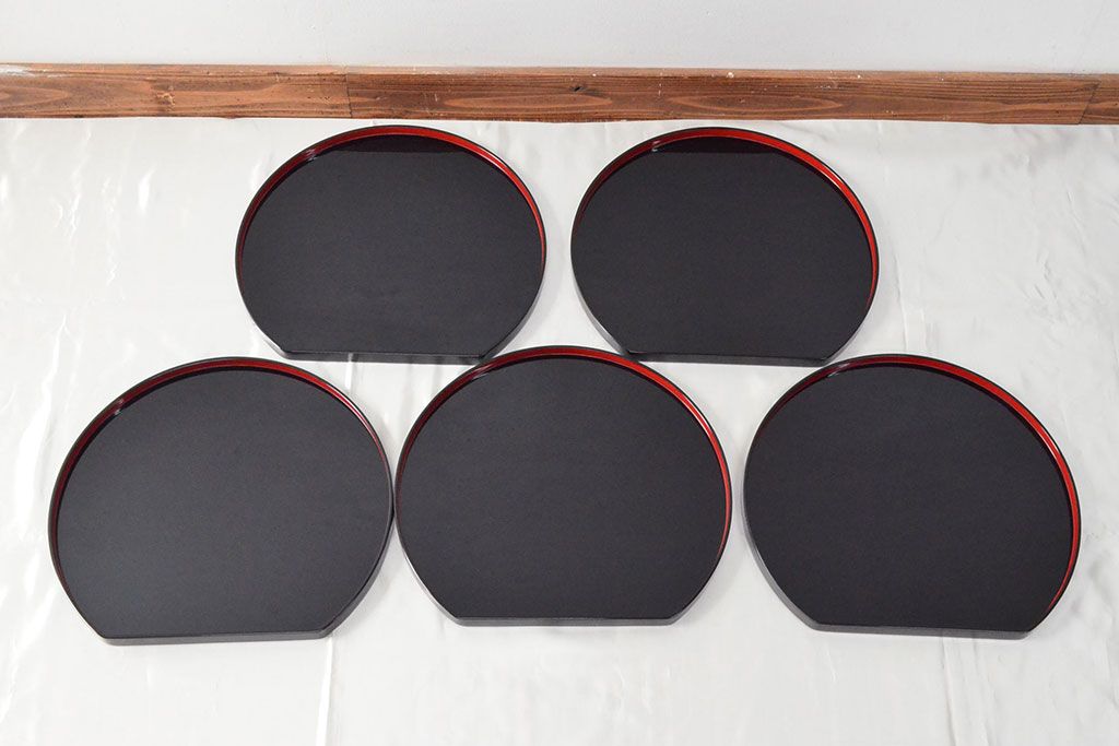 ラフジュ工房> 和食器・茶道具> お盆・お膳・お重 > 輪島塗 極上本堅地 黒漆 半月卓上膳5客 平野漆器店(木製、漆器)(R-052515)