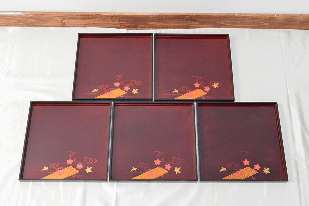 ラフジュ工房> 骨董・美術品> 骨董-漆器 > 輪島塗 流水花蒔絵 卓上膳5客(木製、漆器)(R-052516)