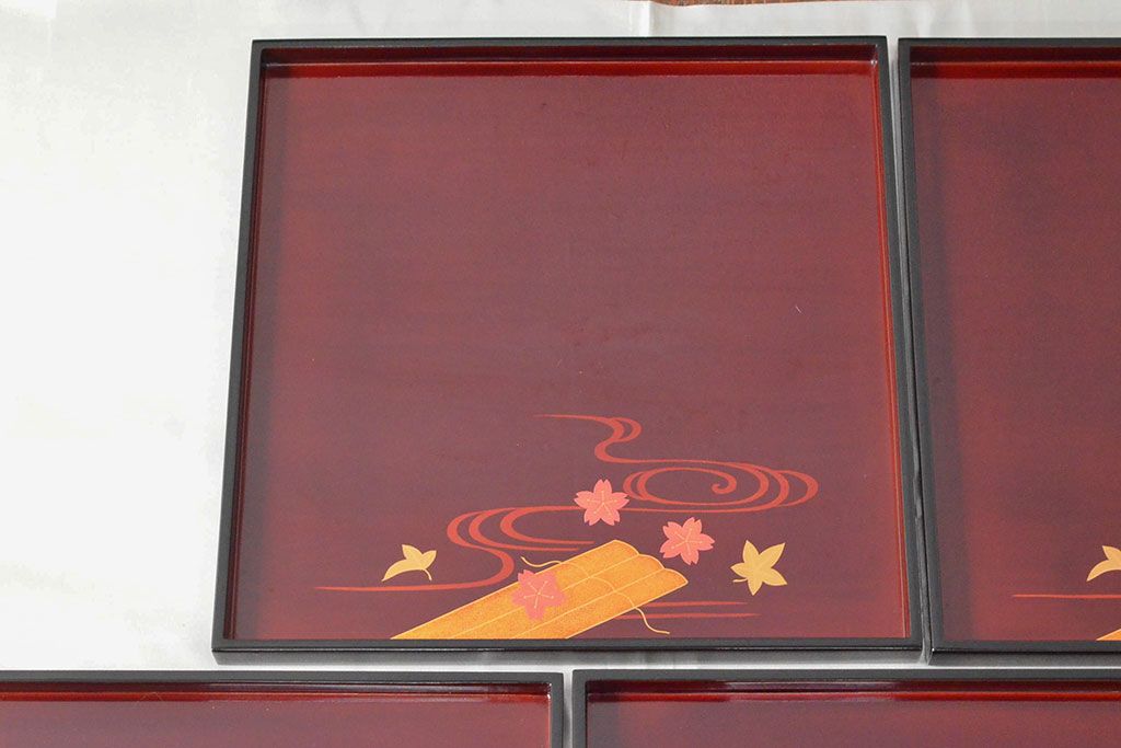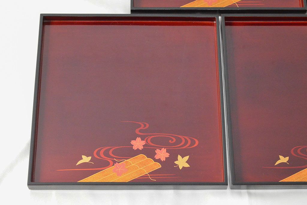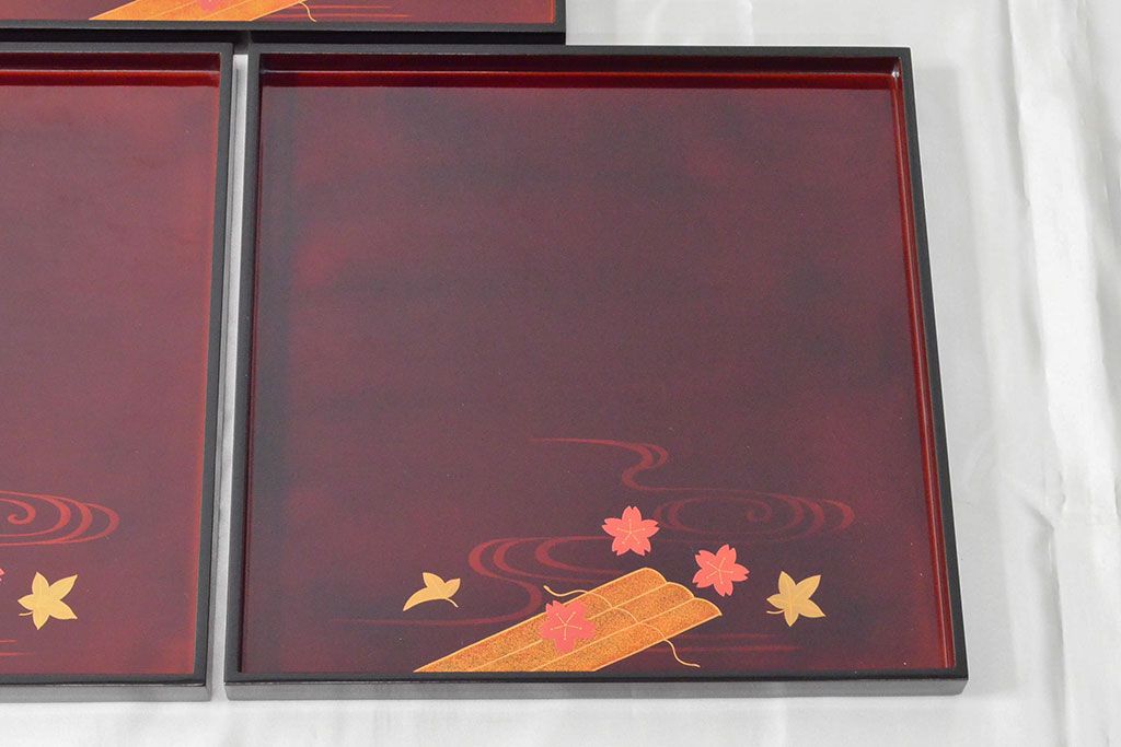 ラフジュ工房> 和食器・茶道具> お盆・お膳・お重 > 輪島塗 流水花蒔絵 卓上膳5客(木製、漆器)(R-052516)