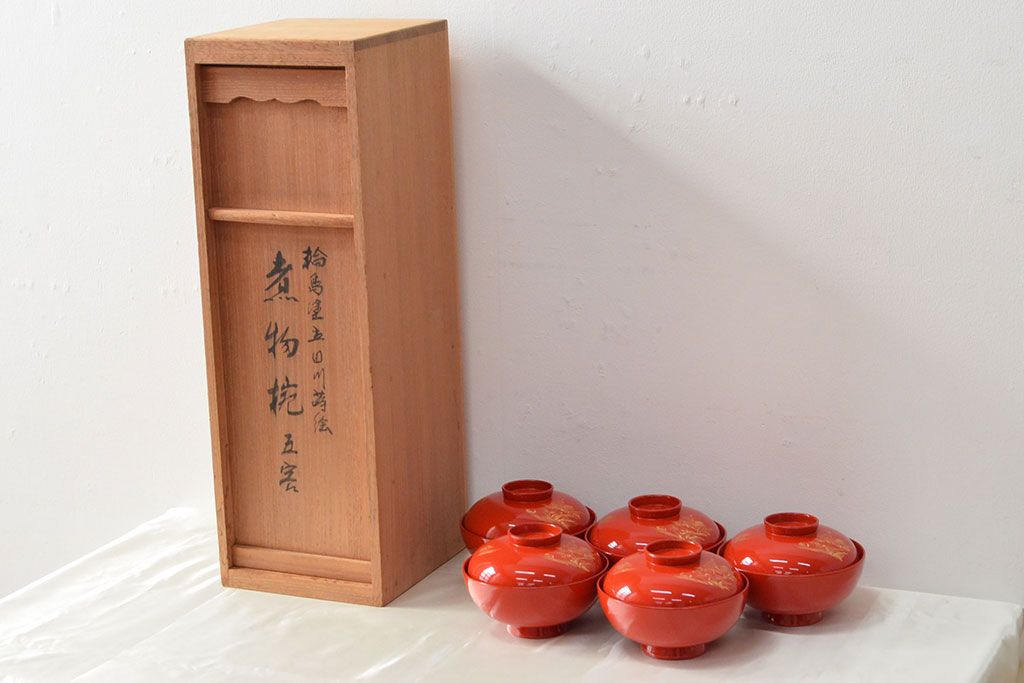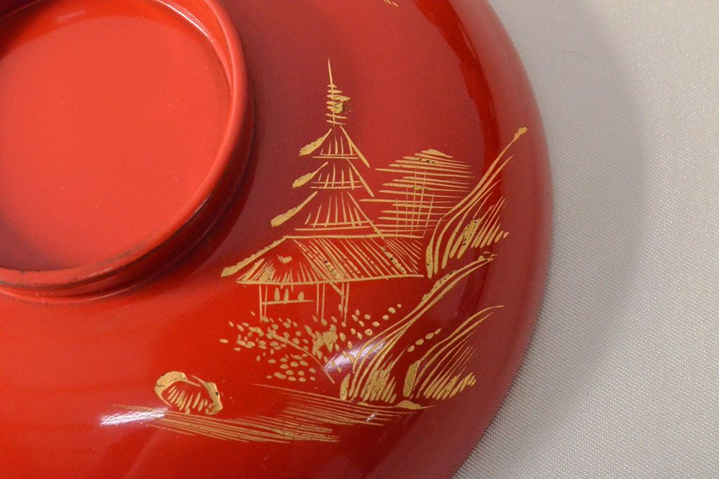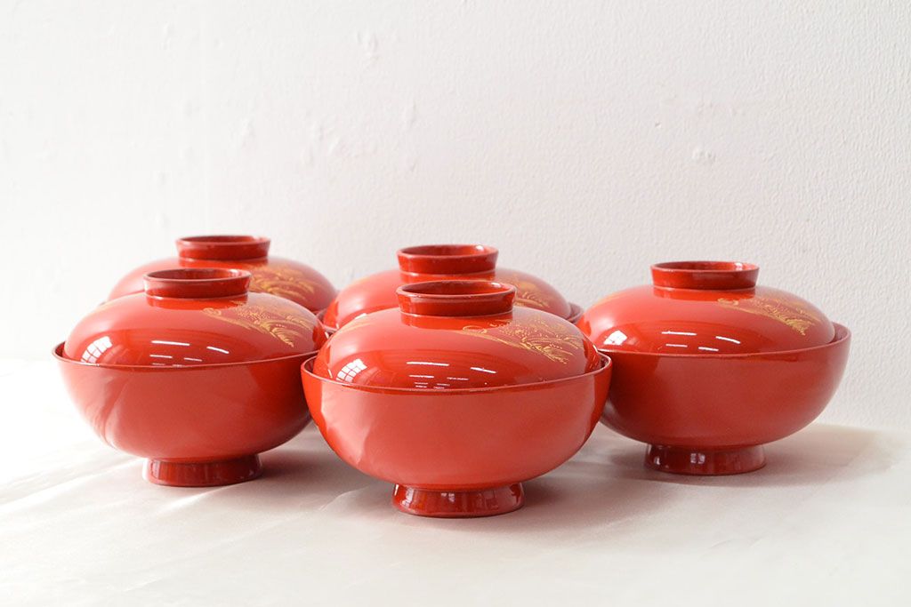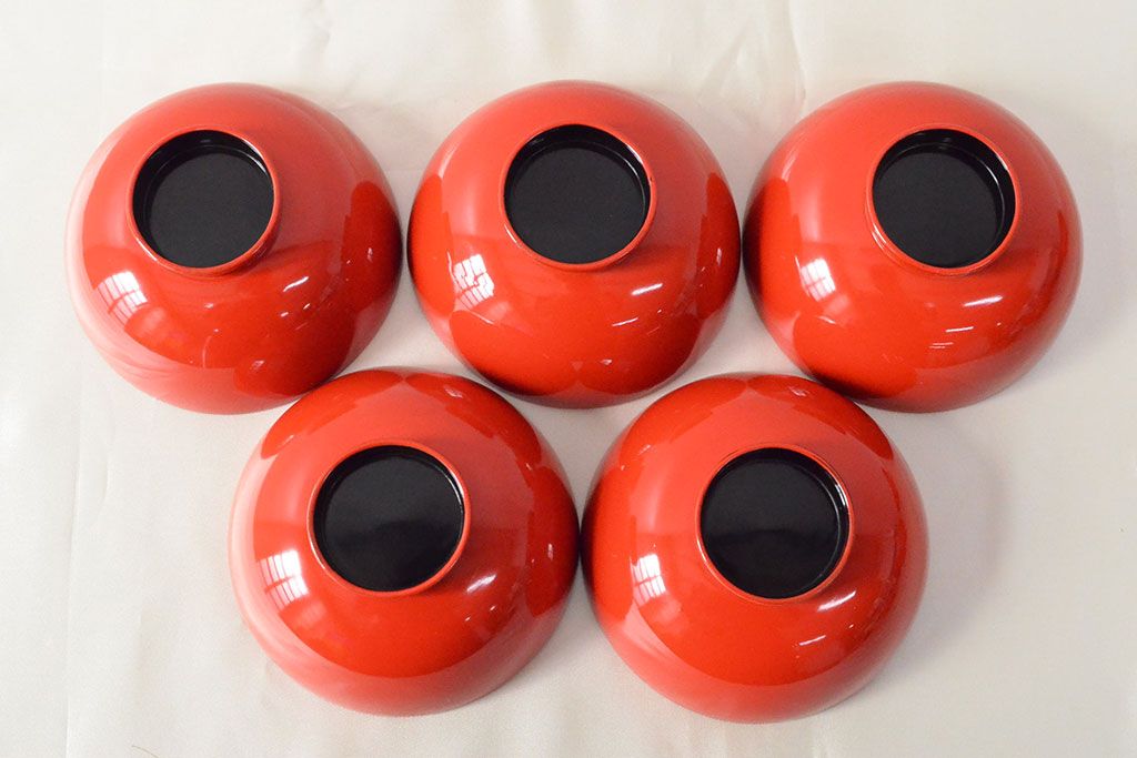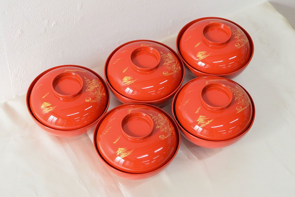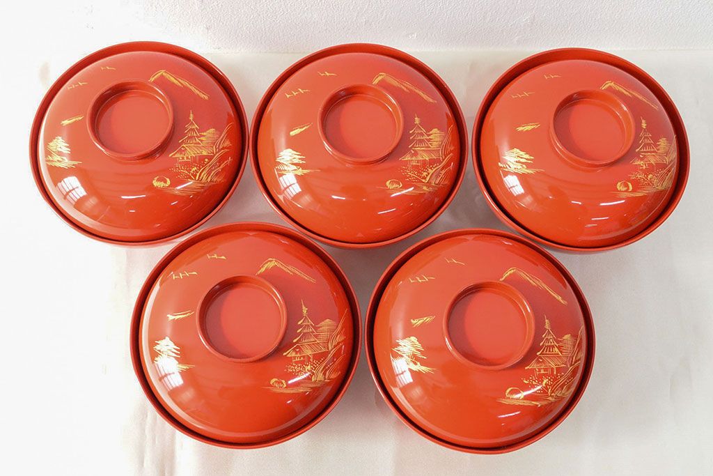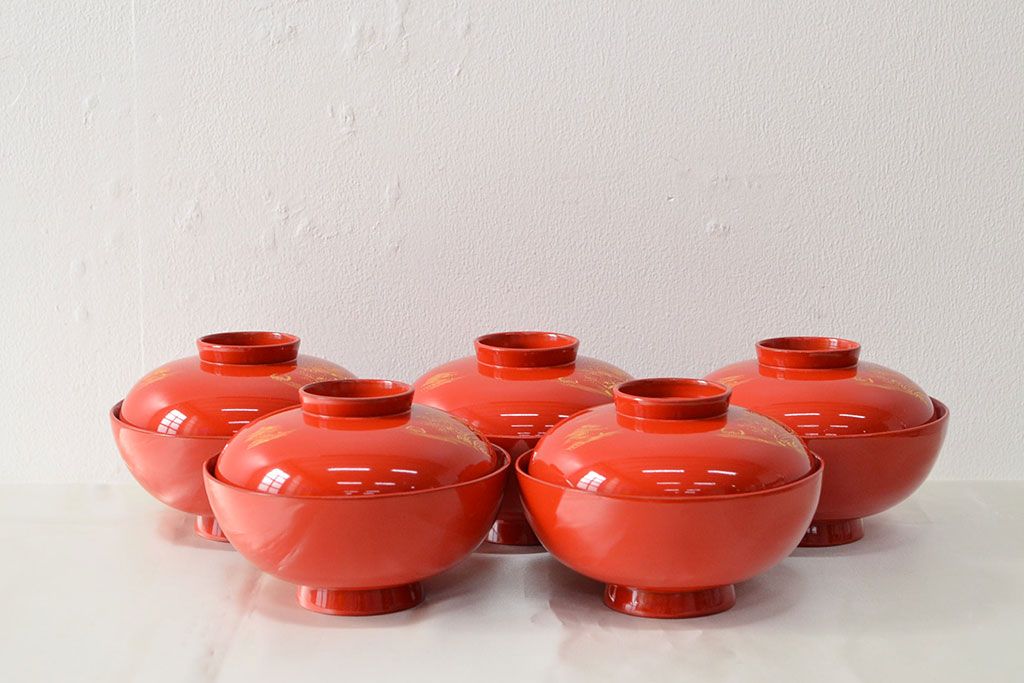 ラフジュ工房> 和食器・茶道具 > 明治〜大正 沈金蒔絵朱塗椀5客(木製、漆器)(R-052568)