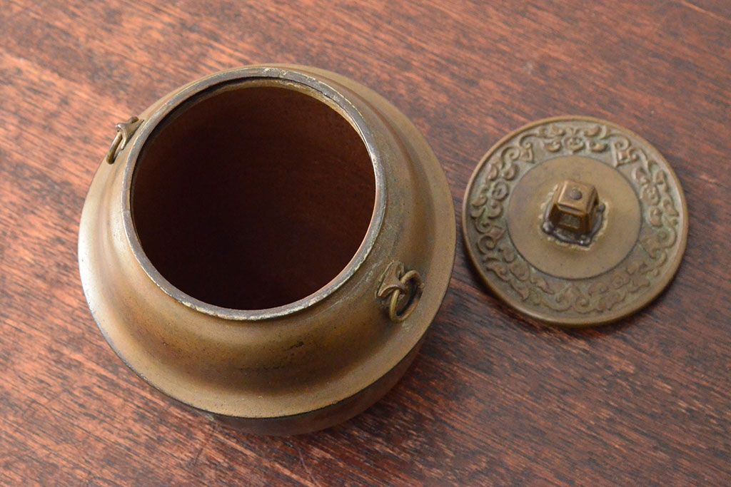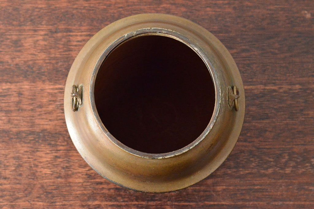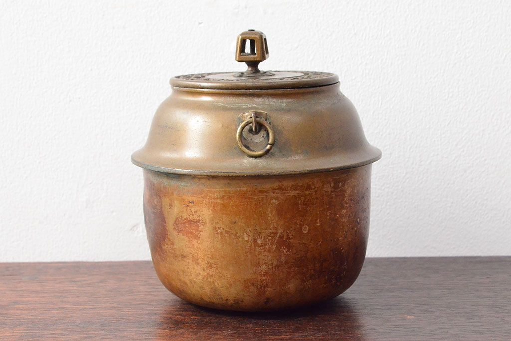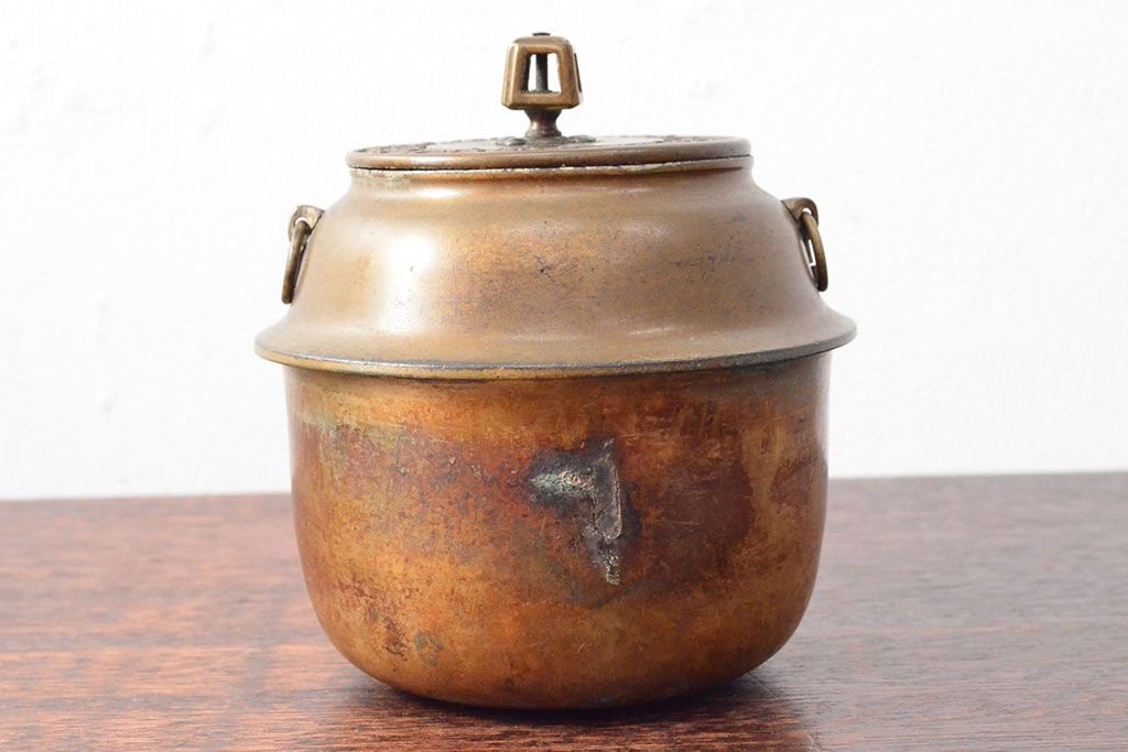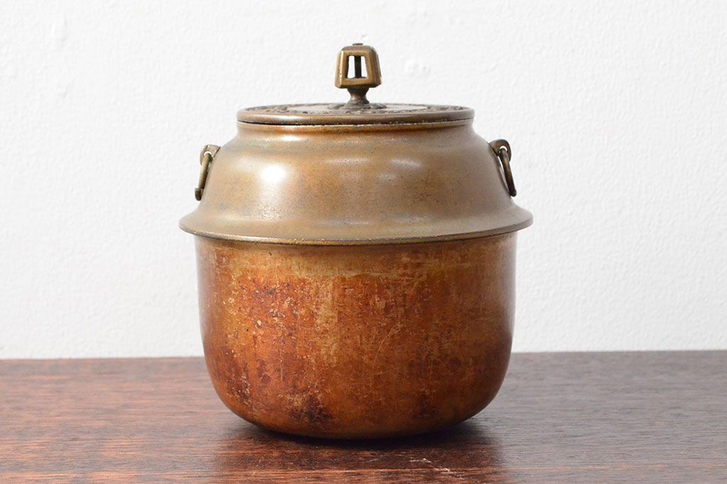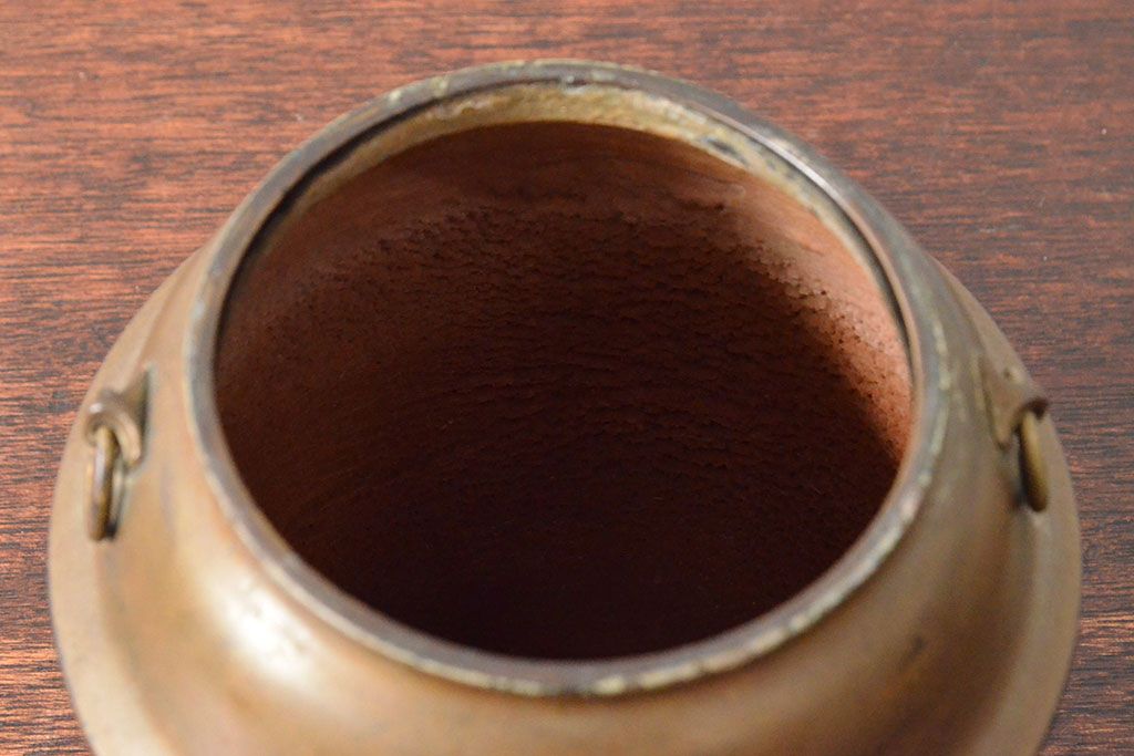明治〜大正 銅製銅壷(湯釜、陽刻、茶道具、銅壺)(R-052577)