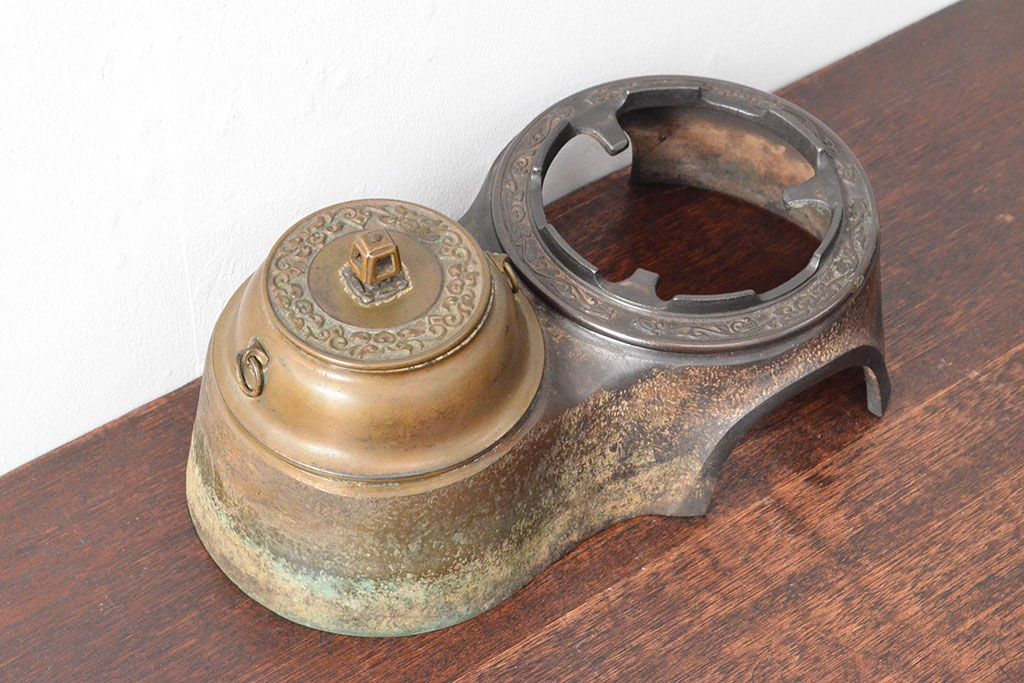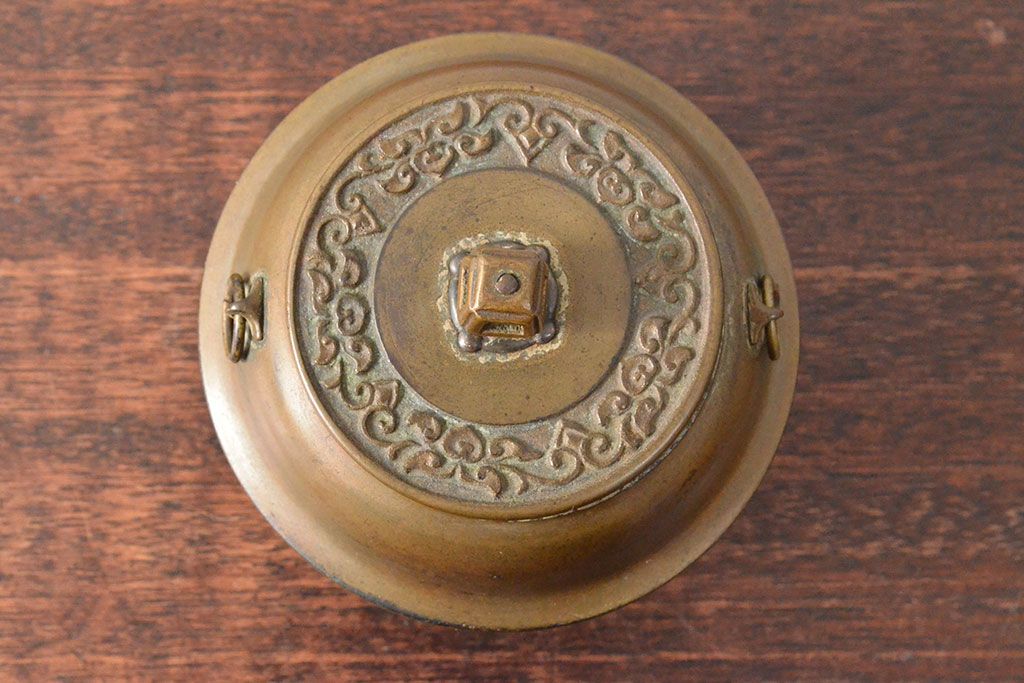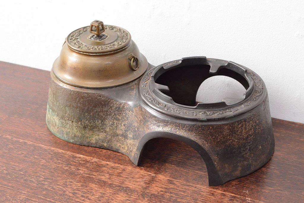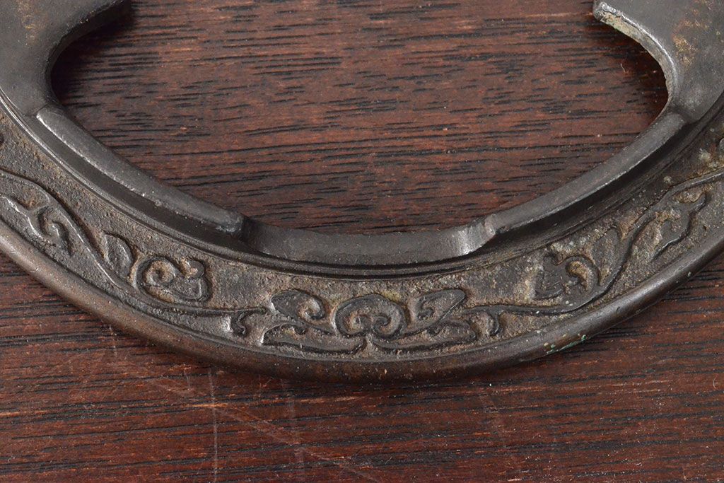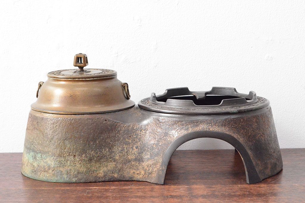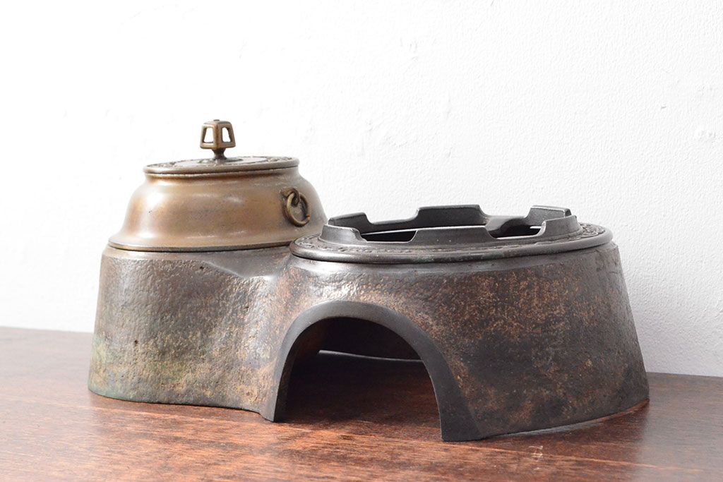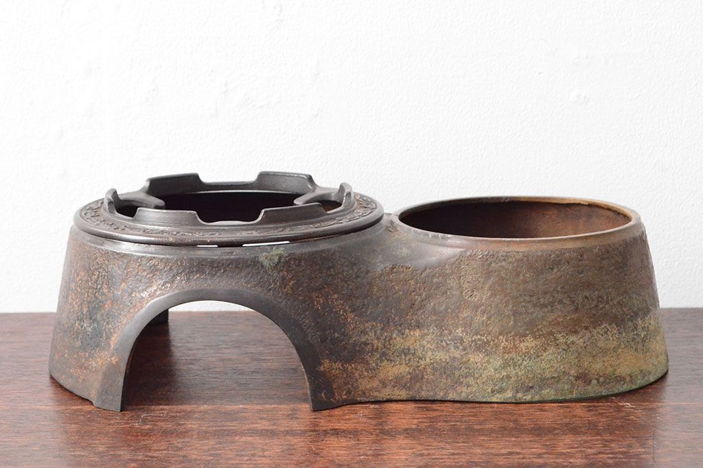 明治〜大正 銅製銅壷(湯釜、陽刻、茶道具、銅壺)(R-052577)