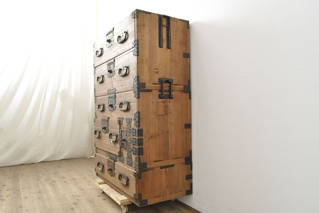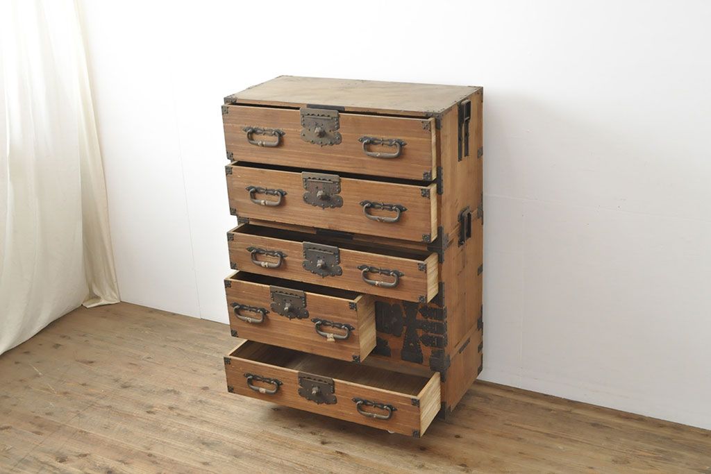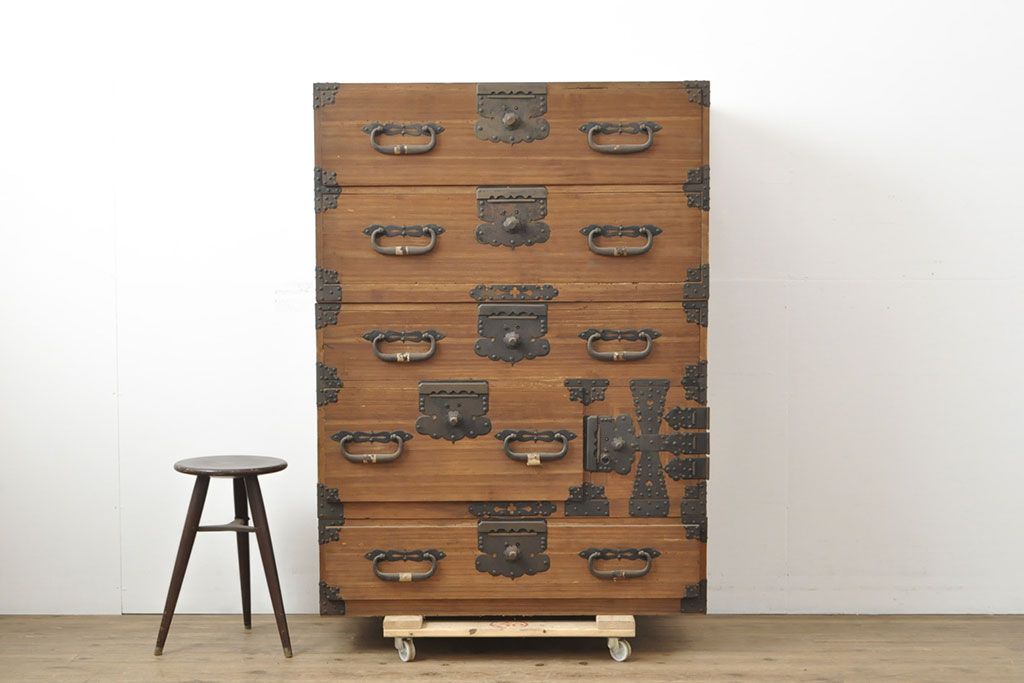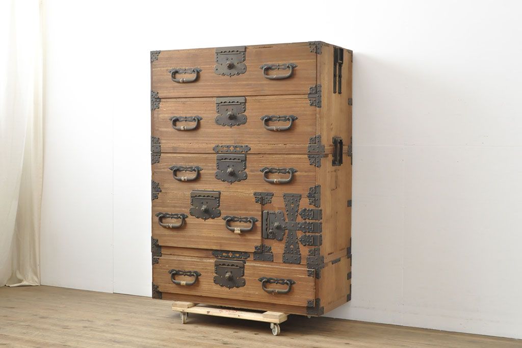 和箪笥> 衣装箪笥 > 和製アンティーク 最上級 総桐材 五丁引き 立派な金具が目を引く上手物の関東衣装箪笥(和たんす、桐たんす、桐箪笥、重ね箪笥)(R-053028)
