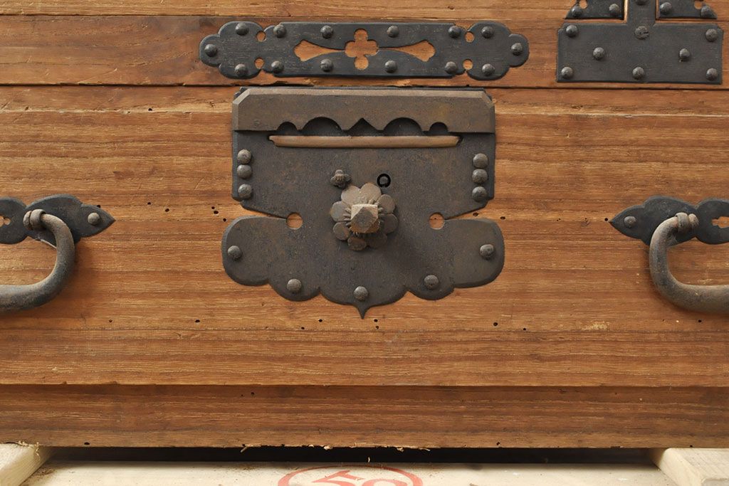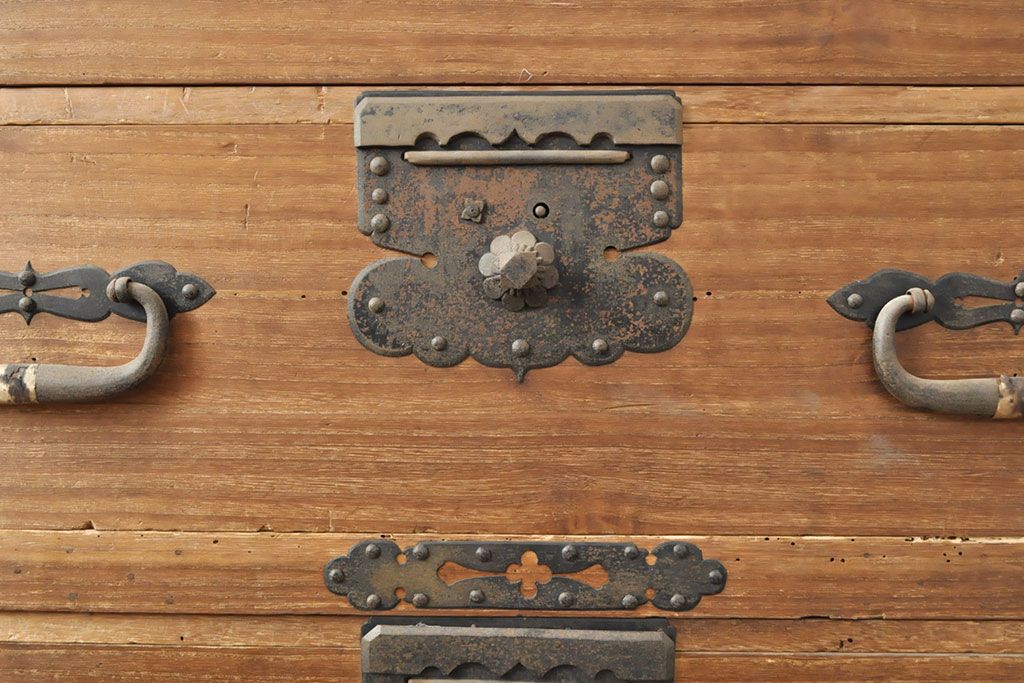 和箪笥 > 和製アンティーク 最上級 総桐材 五丁引き 立派な金具が目を引く上手物の関東衣装箪笥(和たんす、桐たんす、桐箪笥、重ね箪笥)(R-053028)