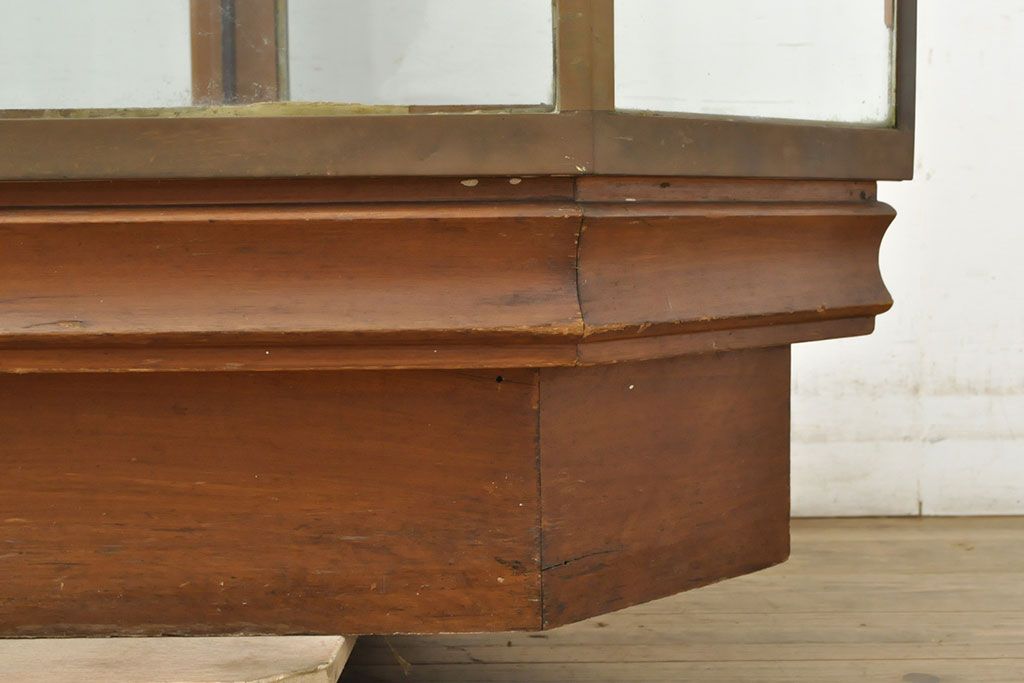 ラフジュ工房> ガラスケース・ショーケース > イギリスアンティーク 激レア! 高級品 HARRIS&SHELDON(ハリス シェルドン)社製 上品な佇まいが美しい、真鍮枠の六角形ガラスケース(ショーケース、店舗什器)(R-052728)