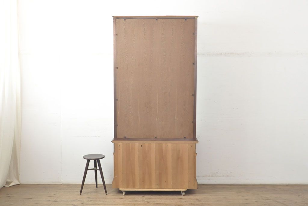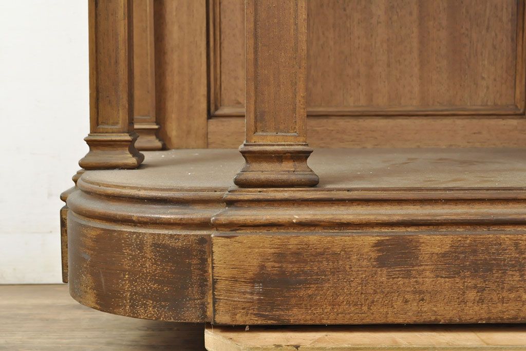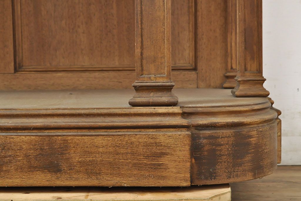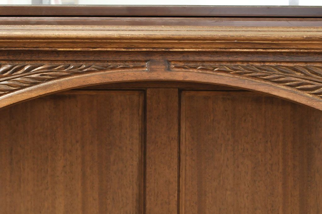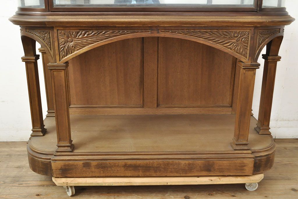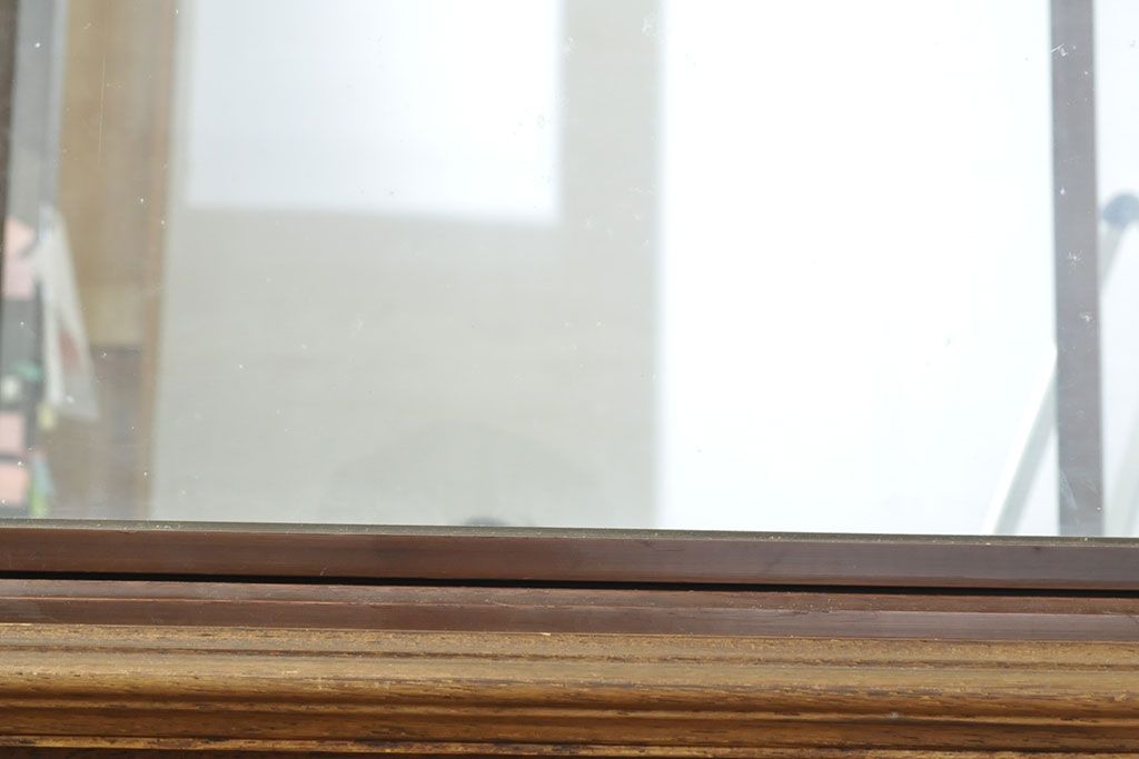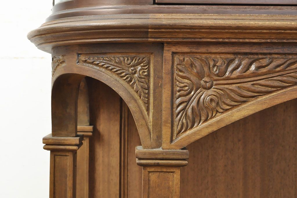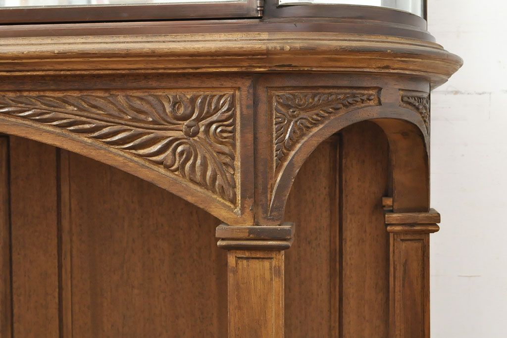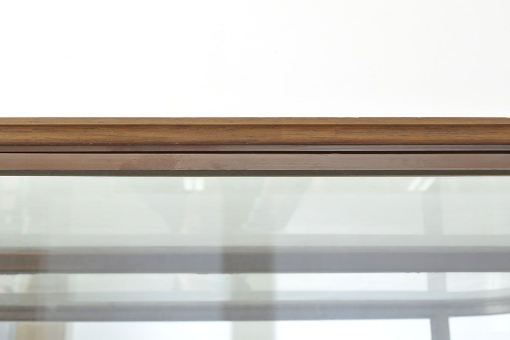 ラフジュ工房> ガラスケース・ショーケース > フランスビンテージ 激レアデザイン! Rガラス 真鍮枠 品のある佇まいが目を引く縦型ガラスケース(ショーケース、収納棚、飾り棚、キャビネット、ヴィンテージ、曲げガラス)(R-052732)