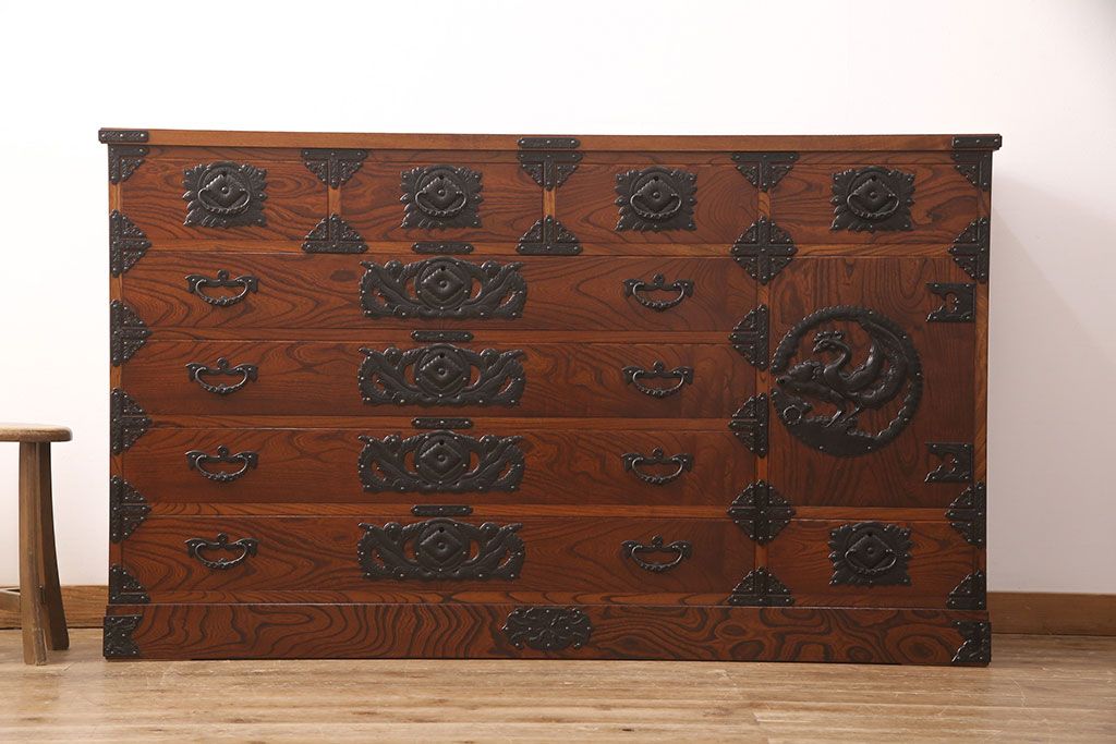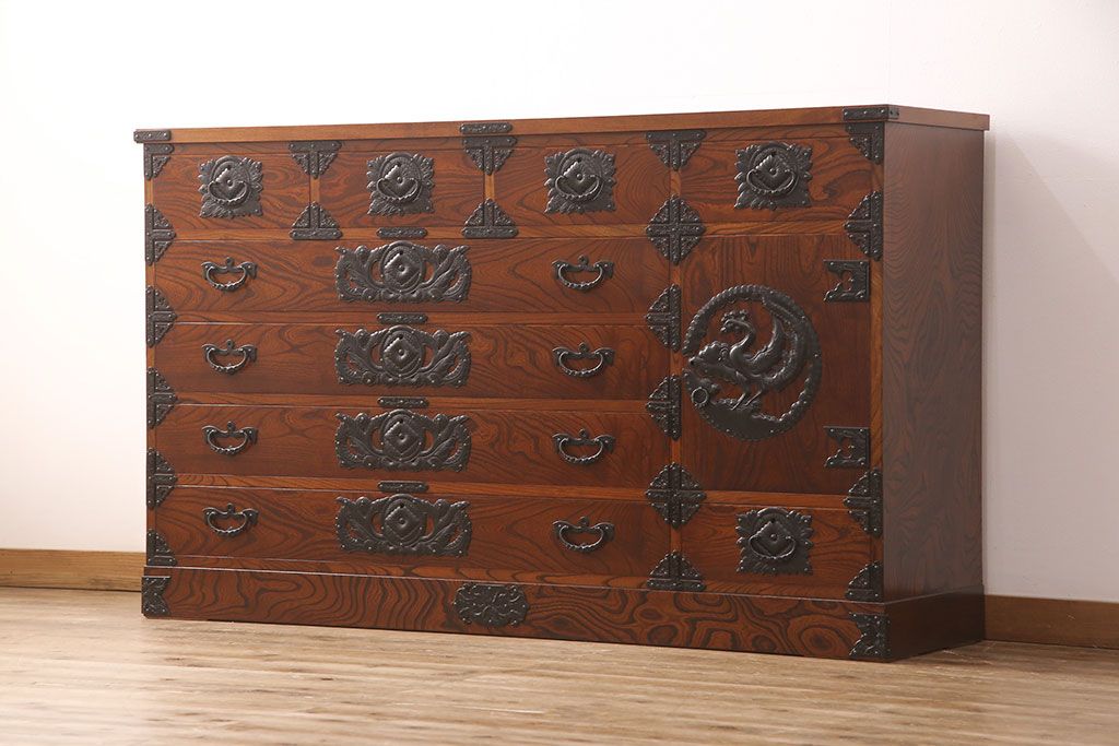 和箪笥 > 中古 超美品 岩谷堂箪笥 かくし付き 鳳凰紋 大振りな六尺整理箪笥(衣装箪笥、チェスト、サイドボード)(R-052607)