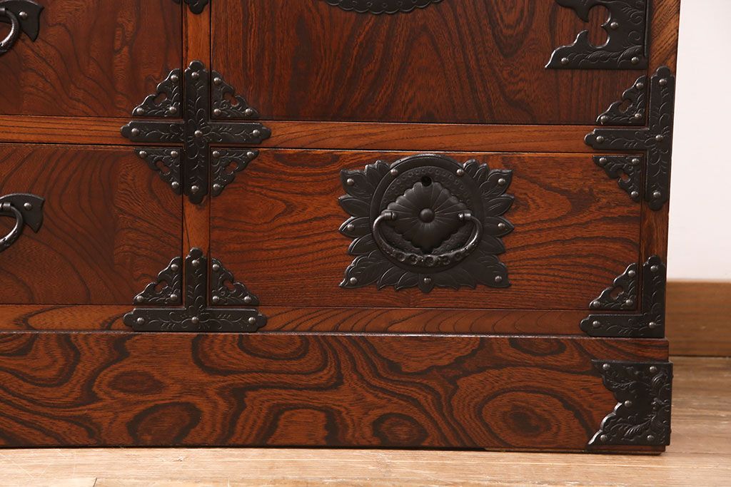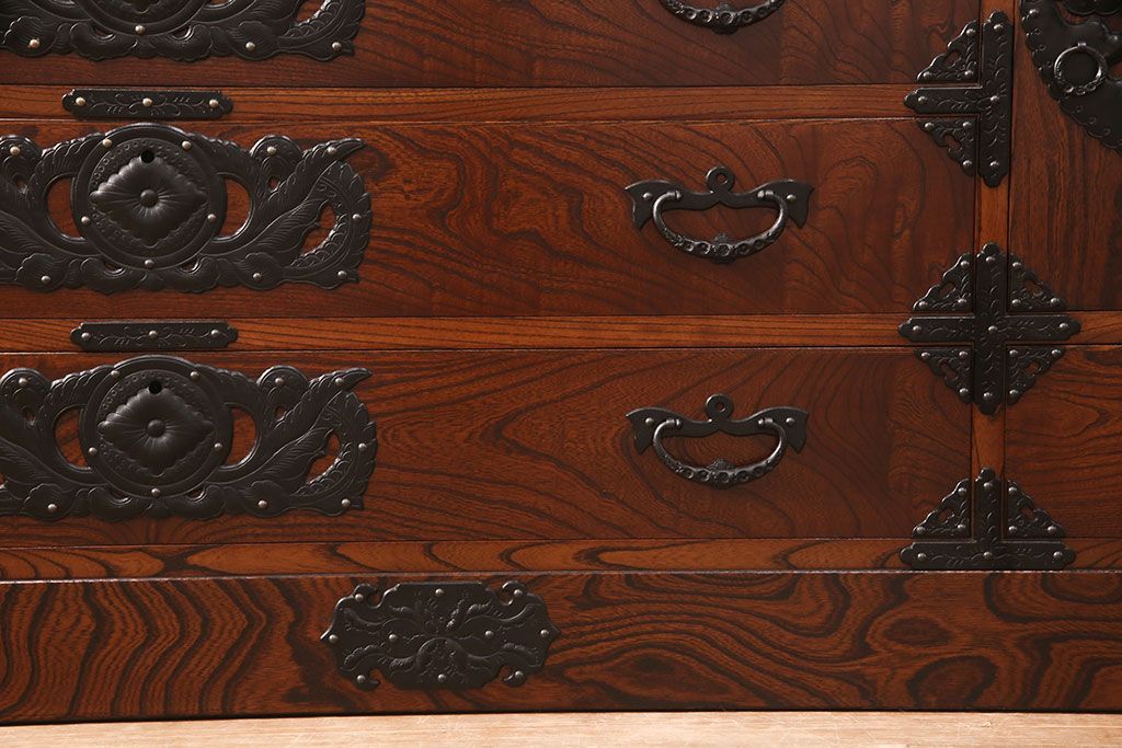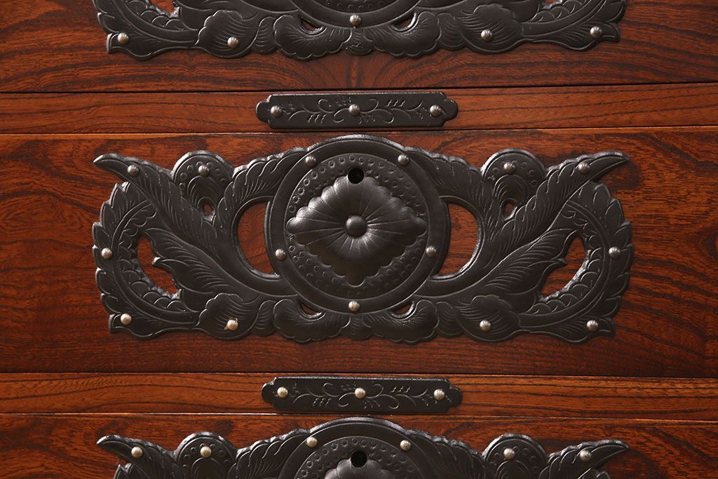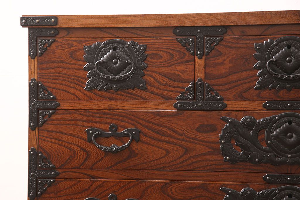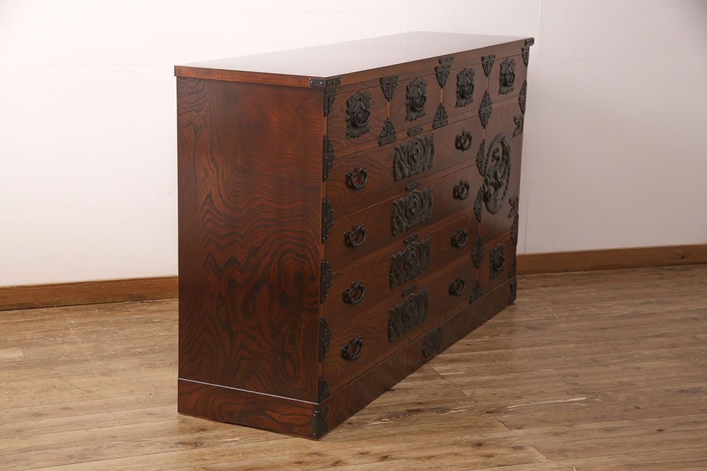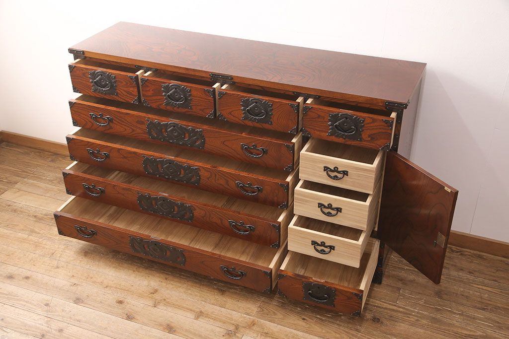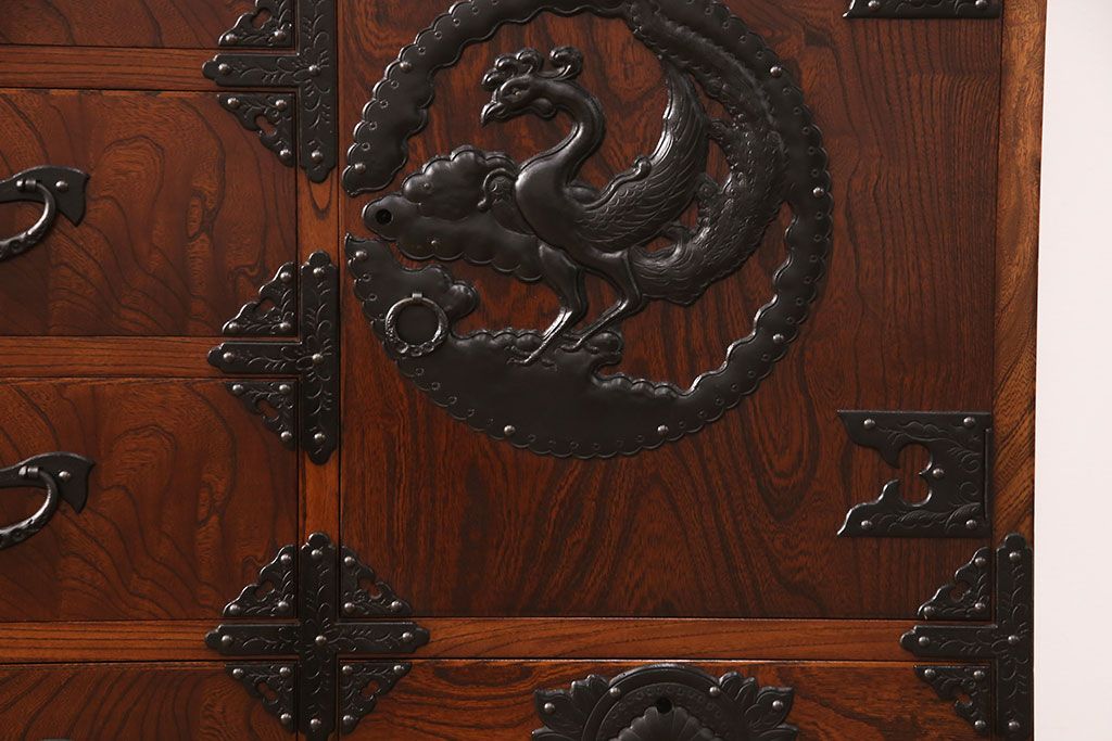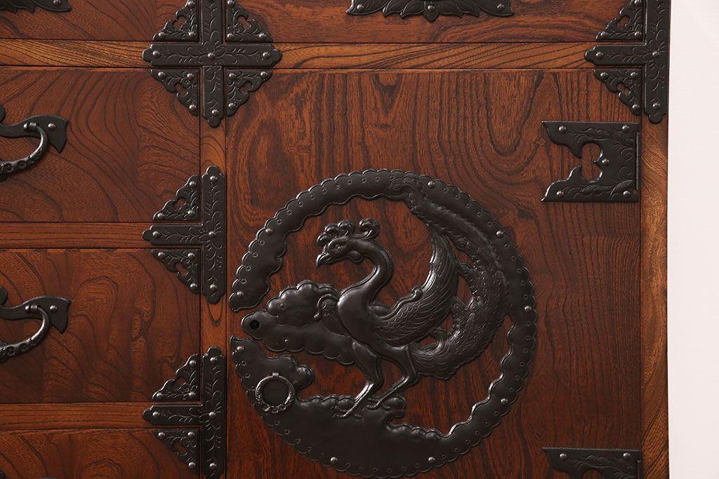 キャビネット・戸棚> サイドボード > 中古 超美品 岩谷堂箪笥 かくし付き 鳳凰紋 大振りな六尺整理箪笥(衣装箪笥、チェスト、サイドボード)(R-052607)