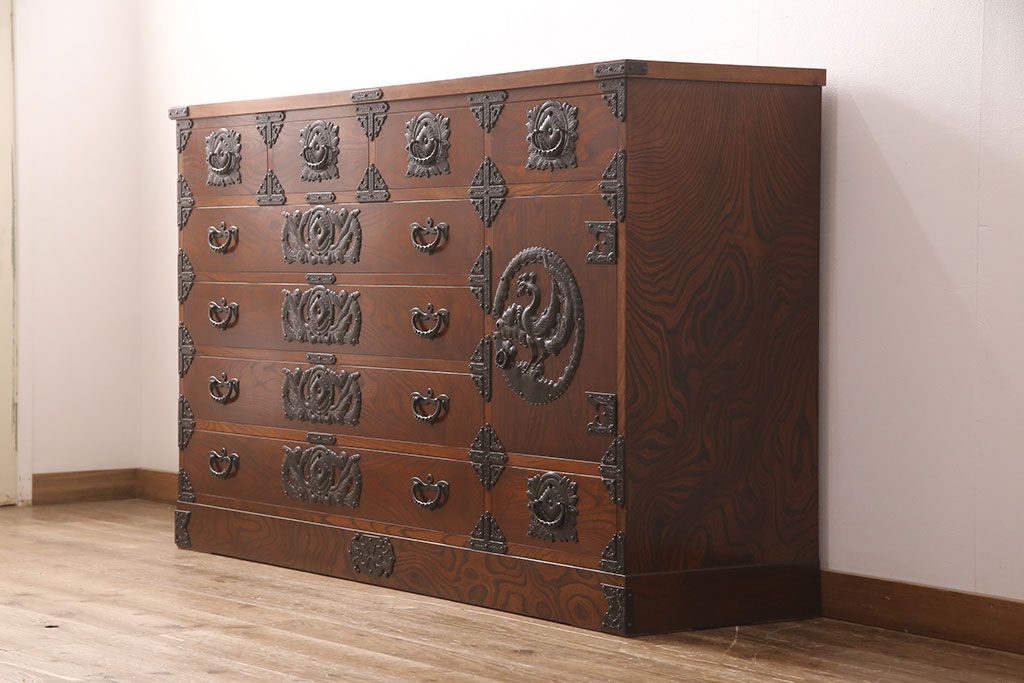 和箪笥> 衣装箪笥 > 中古 超美品 岩谷堂箪笥 かくし付き 鳳凰紋 大振りな六尺整理箪笥(衣装箪笥、チェスト、サイドボード)(R-052607)