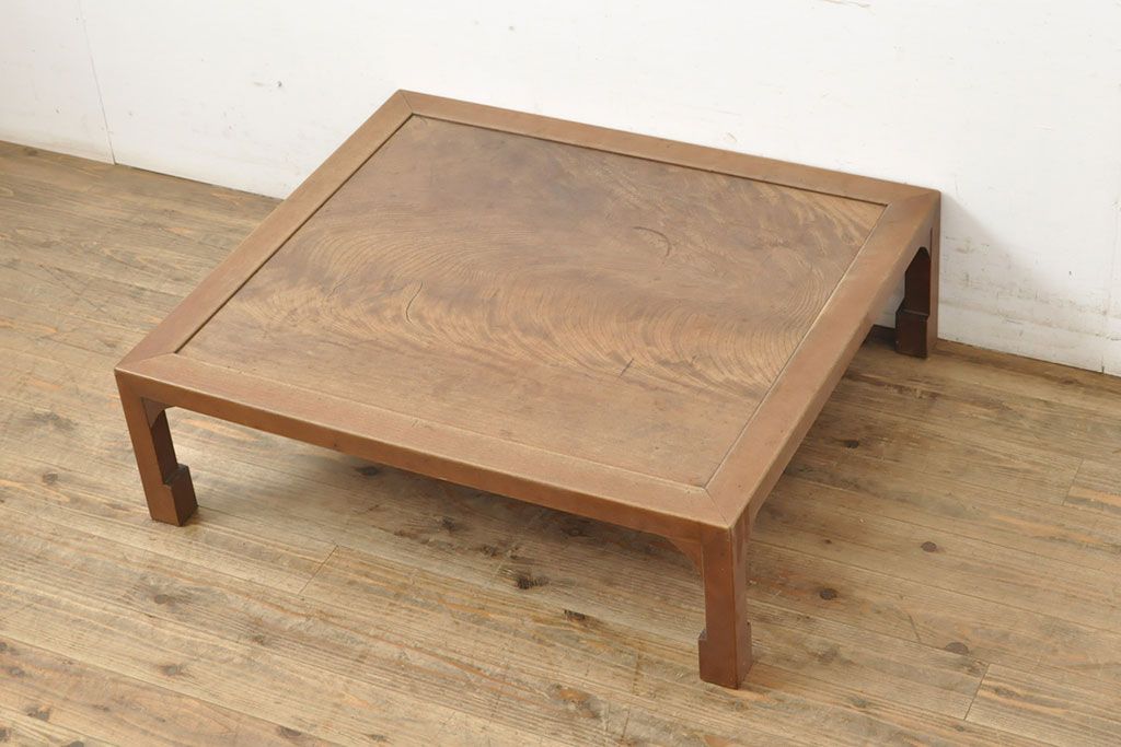 和製アンティーク 総ケヤキ材 天板一枚板 木の風合いが味わい深い座卓(ローテーブル、センターテーブル)(R-052715)です。