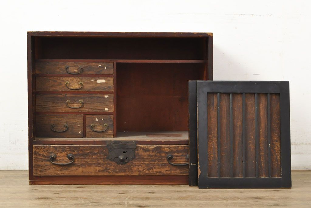 小物収納・トランク> 小引き出し > 和製アンティーク 味のある風合いが魅力的な格子引き戸の松本小箪笥(たんす、小引き出し、小物収納)(R-052713)