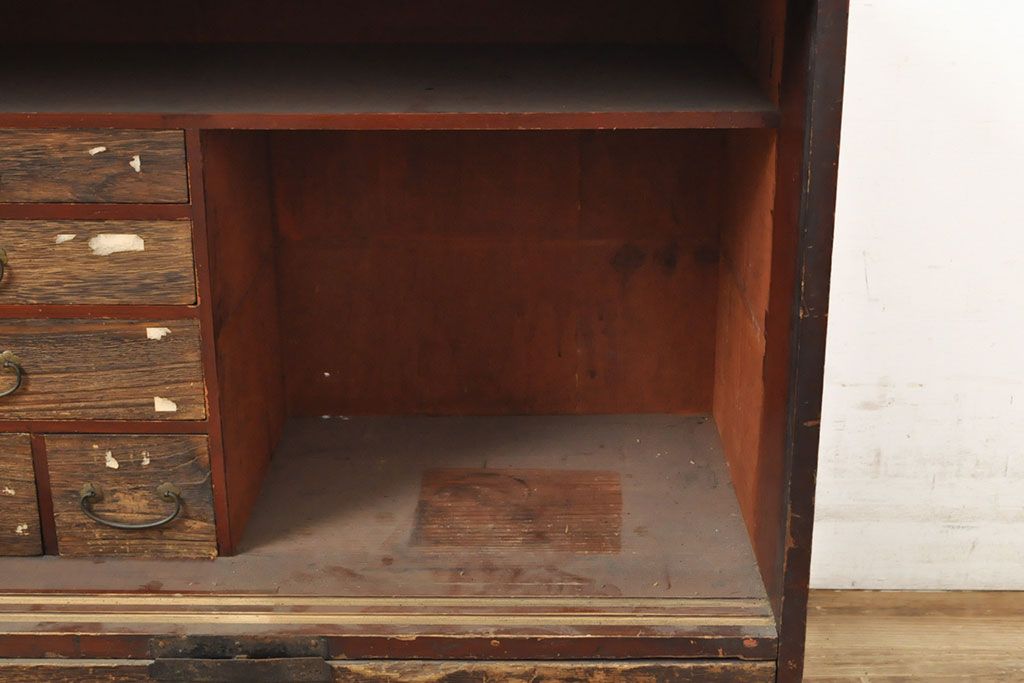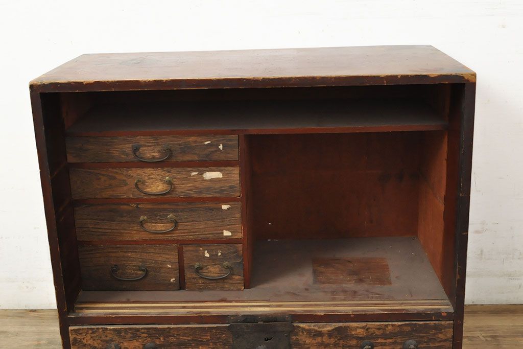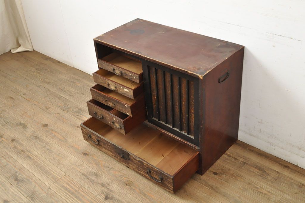 和製アンティーク 味のある風合いが魅力的な格子引き戸の松本小箪笥(たんす、小引き出し、小物収納)(R-052713)