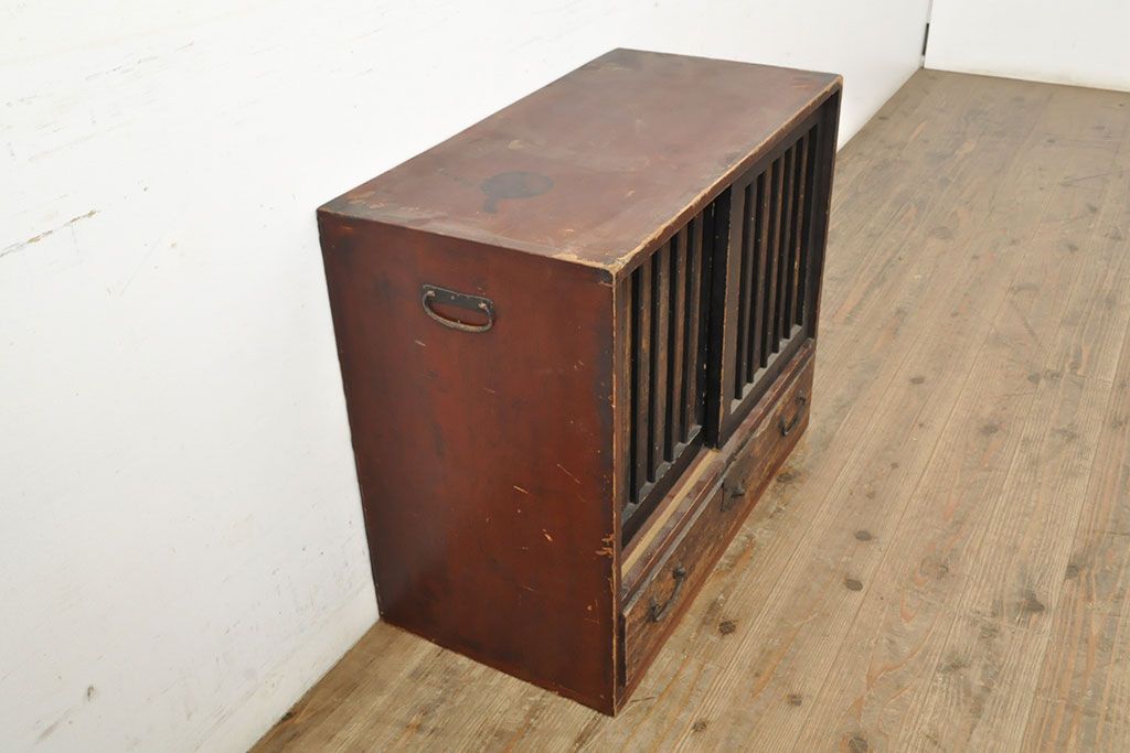 和箪笥> 小箪笥 > 和製アンティーク 味のある風合いが魅力的な格子引き戸の松本小箪笥(たんす、小引き出し、小物収納)(R-052713)