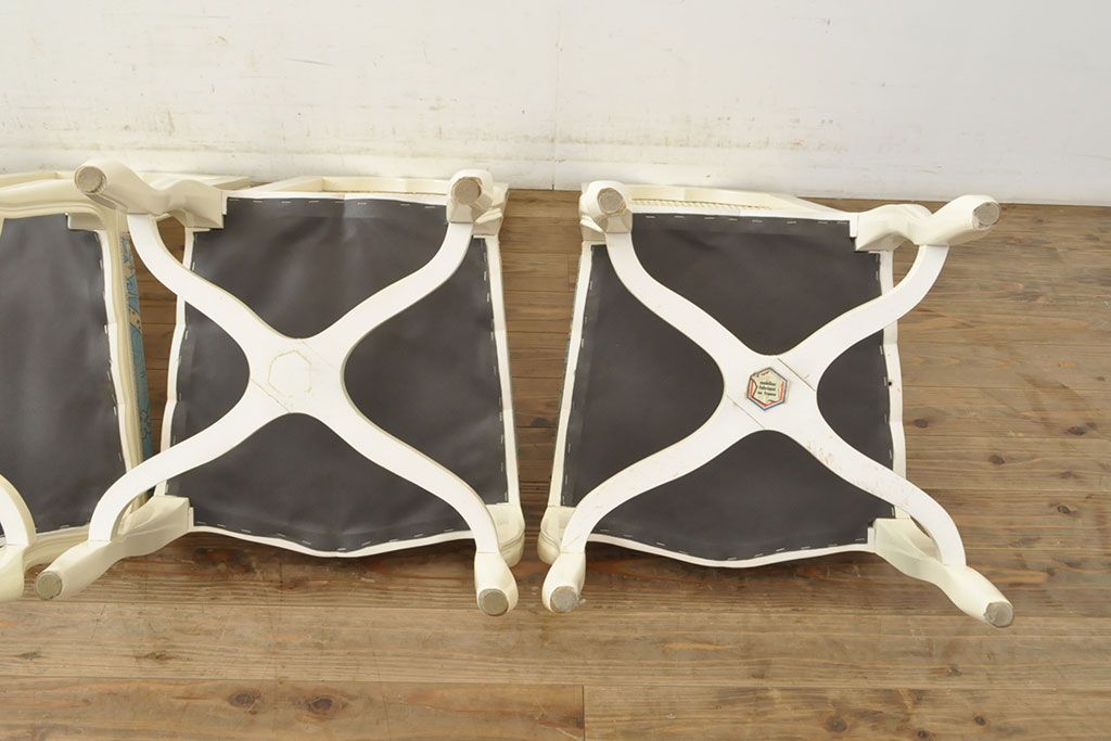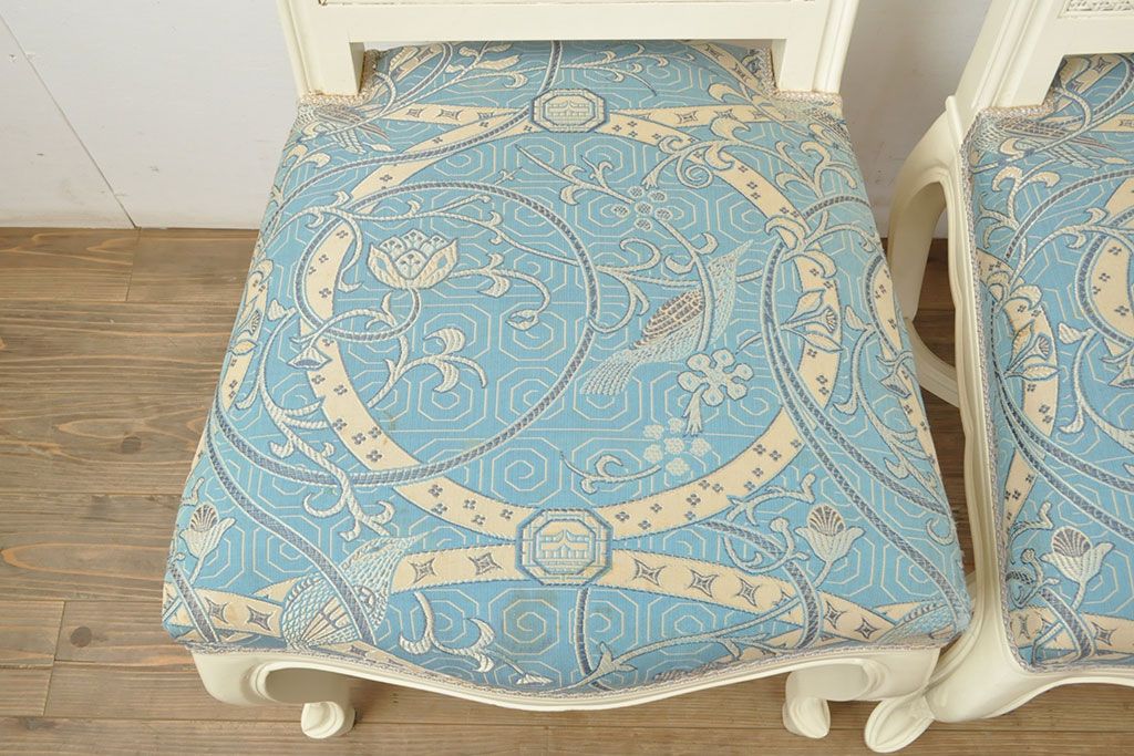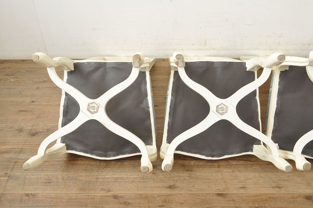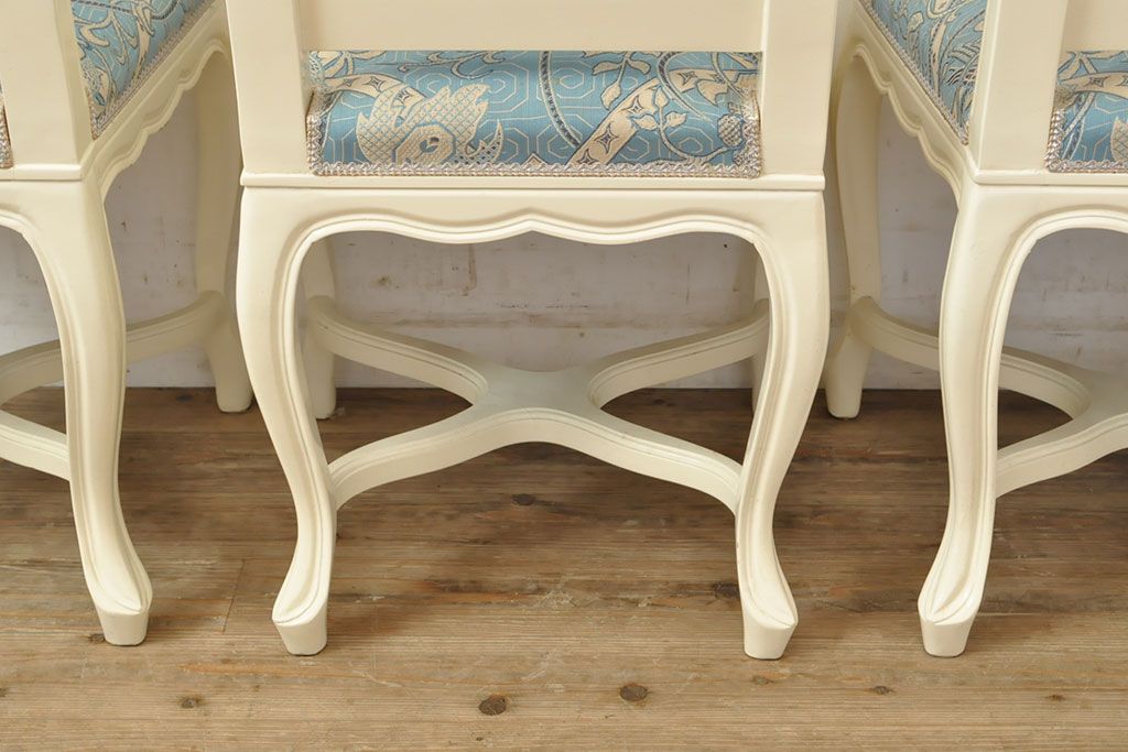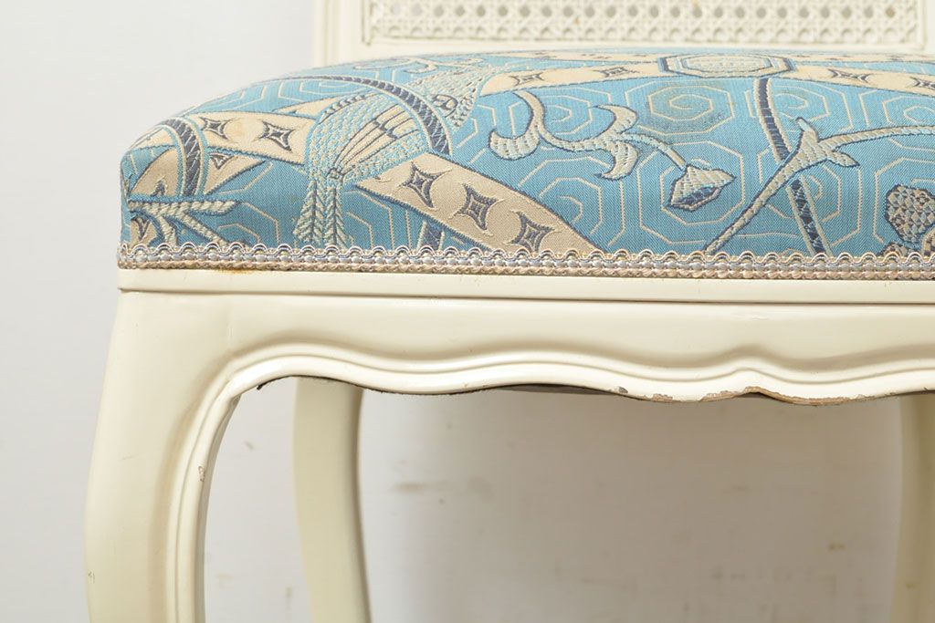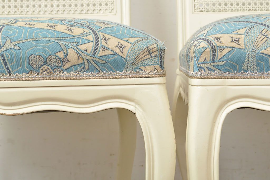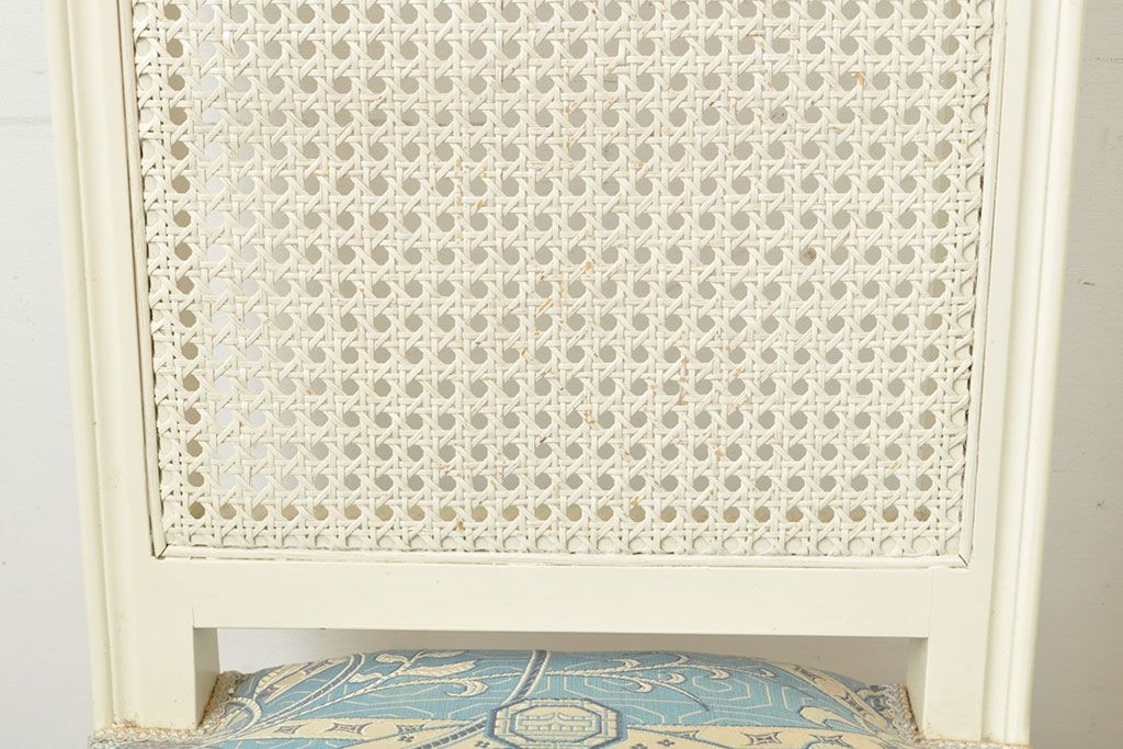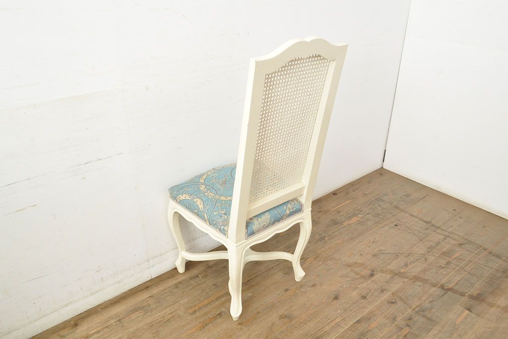 椅子・ベンチ> ダイニングチェア > 中古 フランス高級輸入家具 爽やかな色合いが美しいラタンバックチェア4脚セット(ダイニングチェア、椅子)(1脚定価 約12万円)(R-052718)