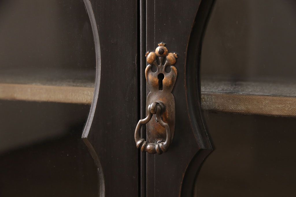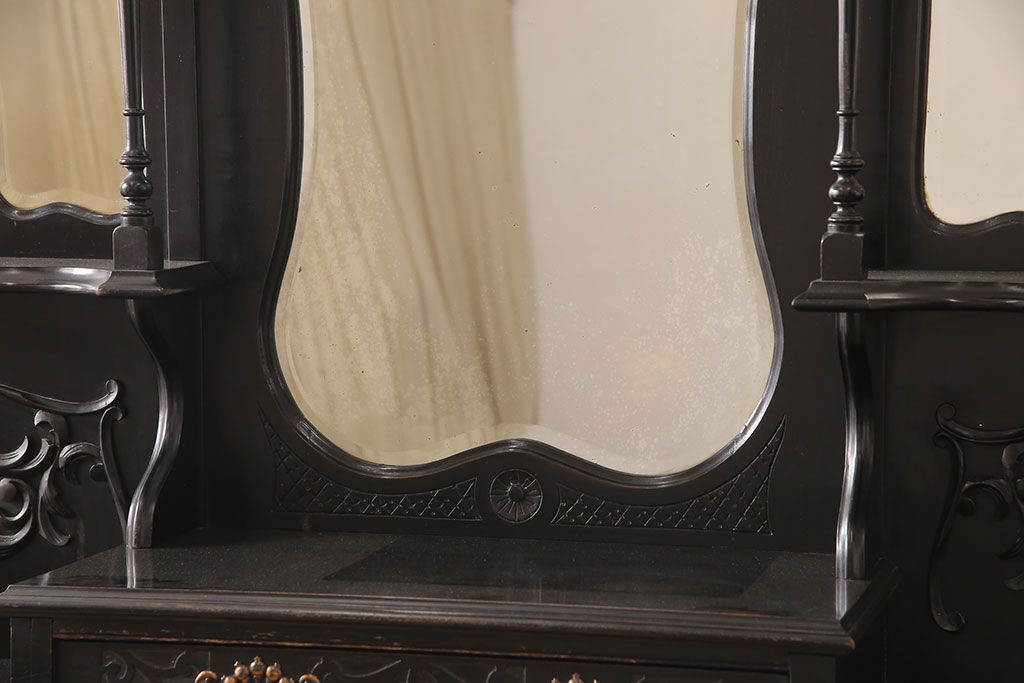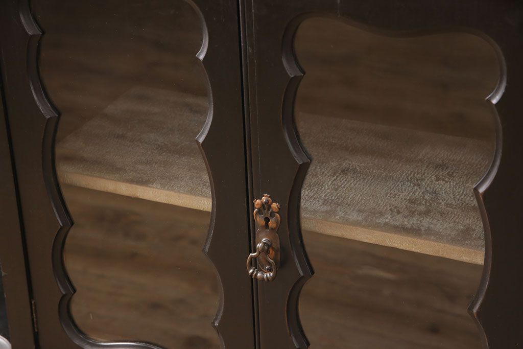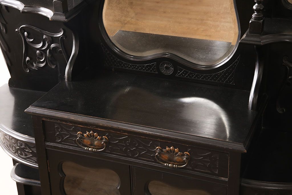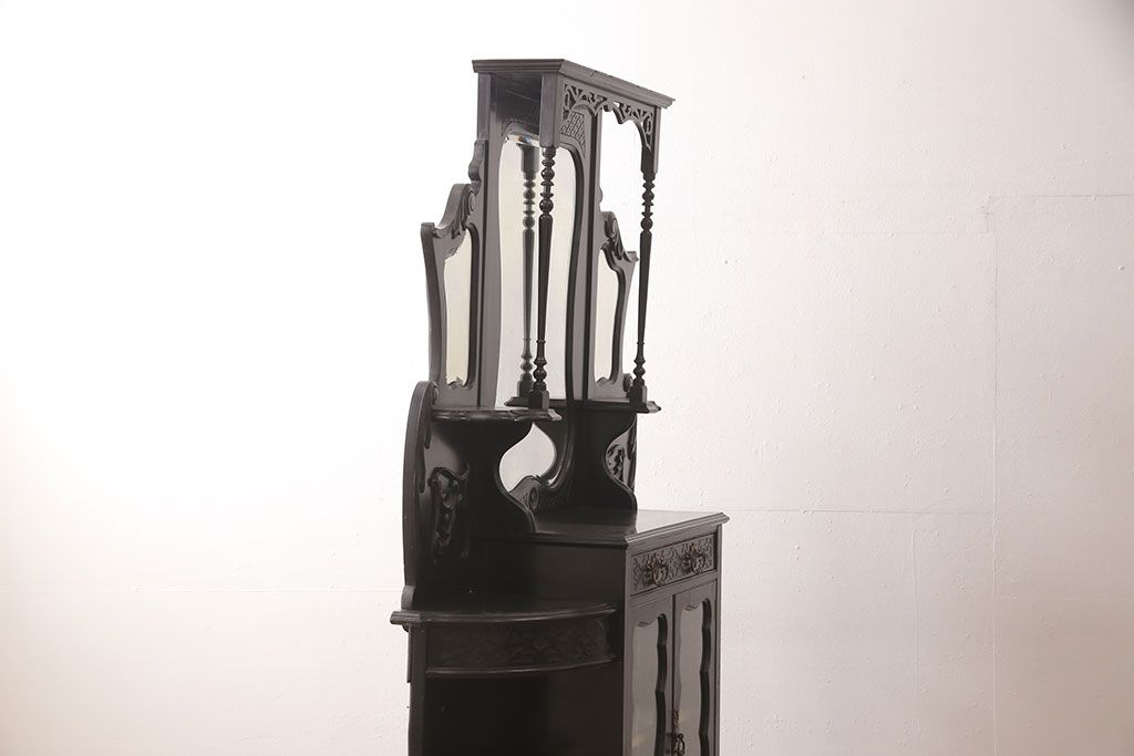 鏡 > イギリスアンティーク ウォールナット材 細やかな彫刻と曲線のデザインが優雅なパーラーキャビネット(飾り棚、戸棚、ミラー)(R-052930)