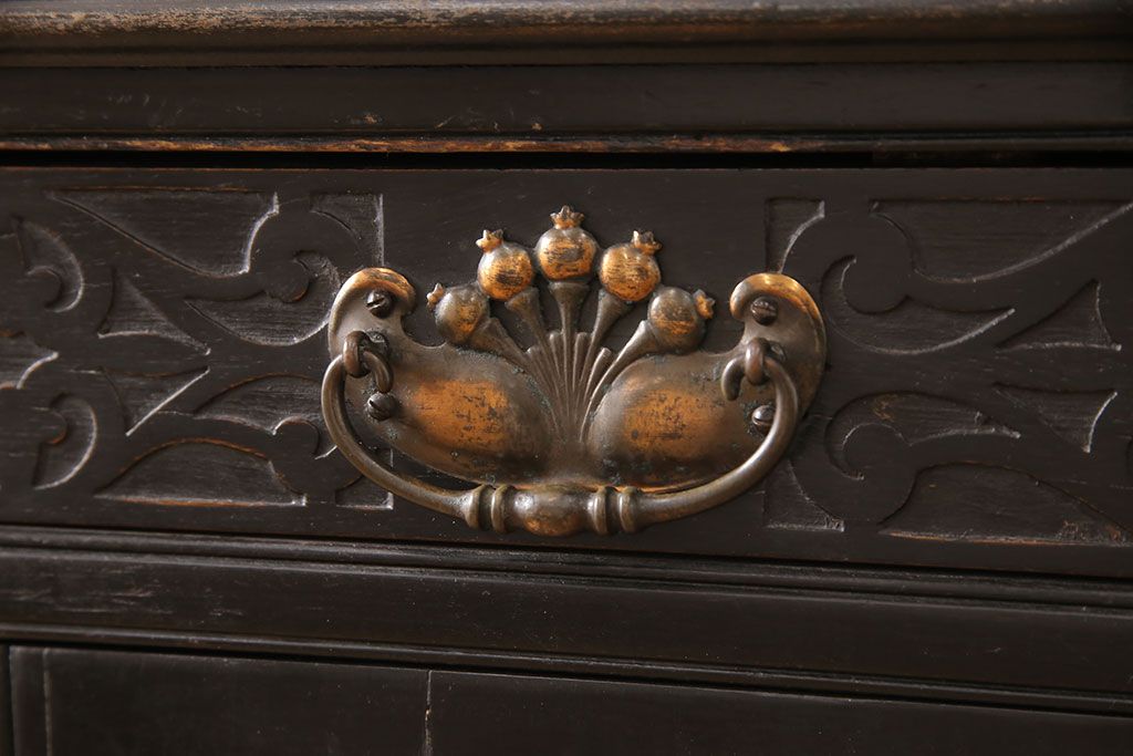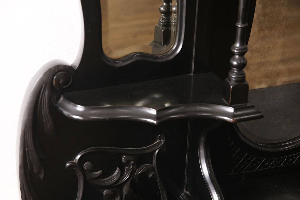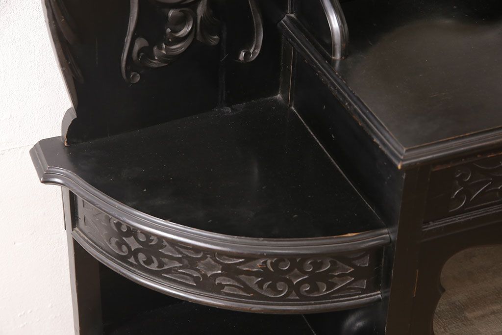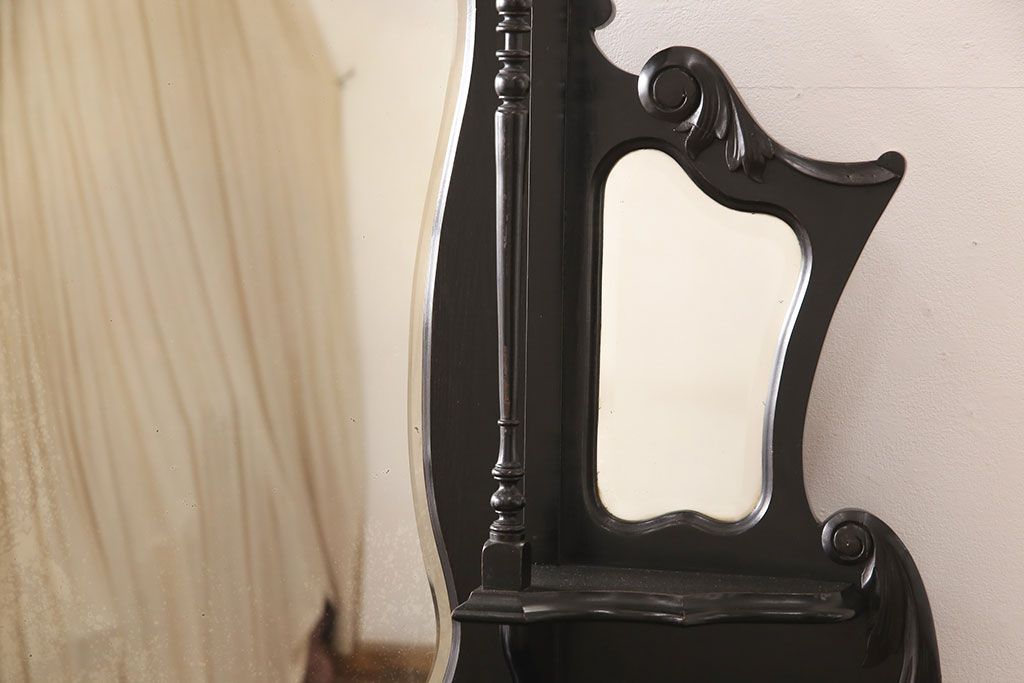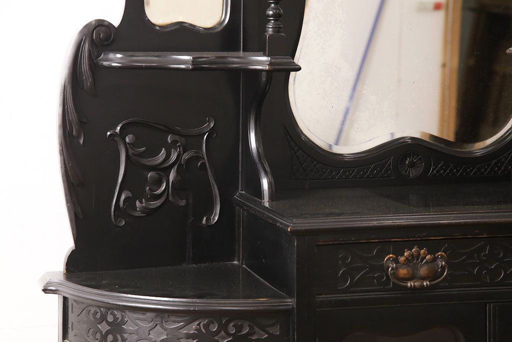 鏡 > イギリスアンティーク ウォールナット材 細やかな彫刻と曲線のデザインが優雅なパーラーキャビネット(飾り棚、戸棚、ミラー)(R-052930)