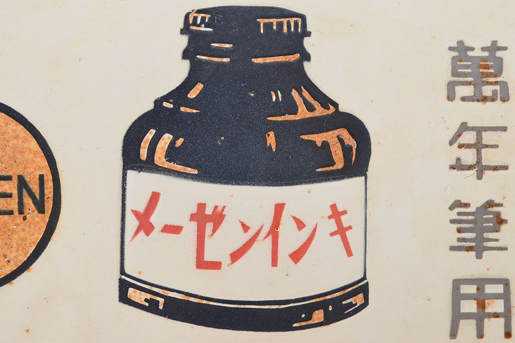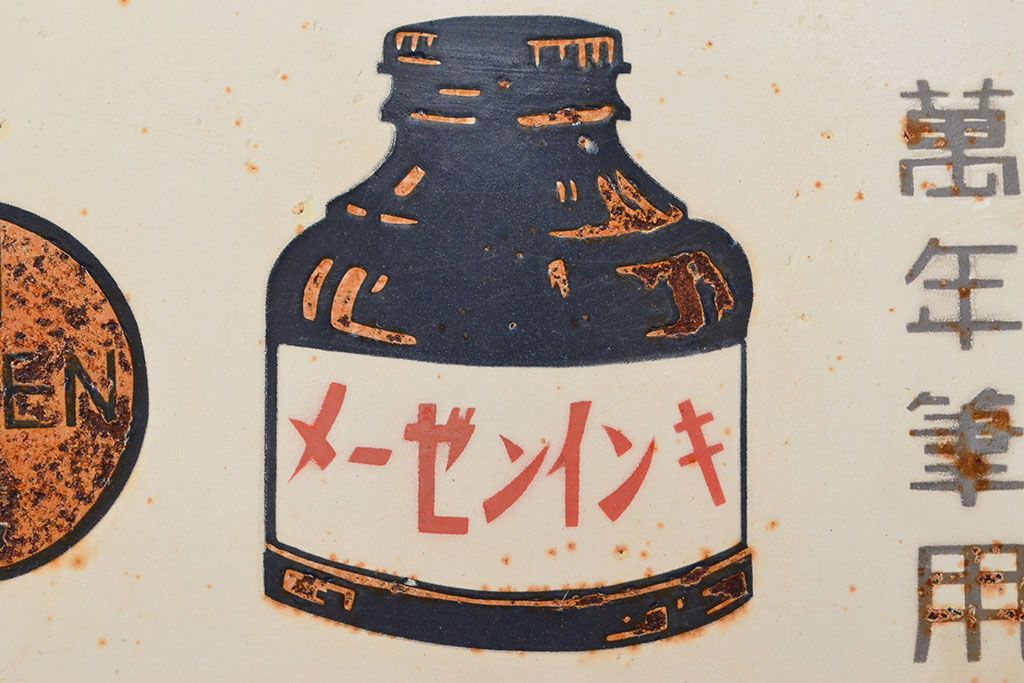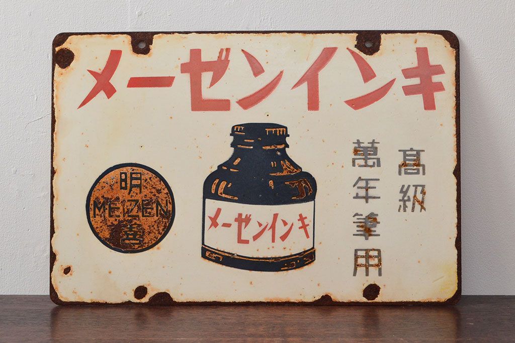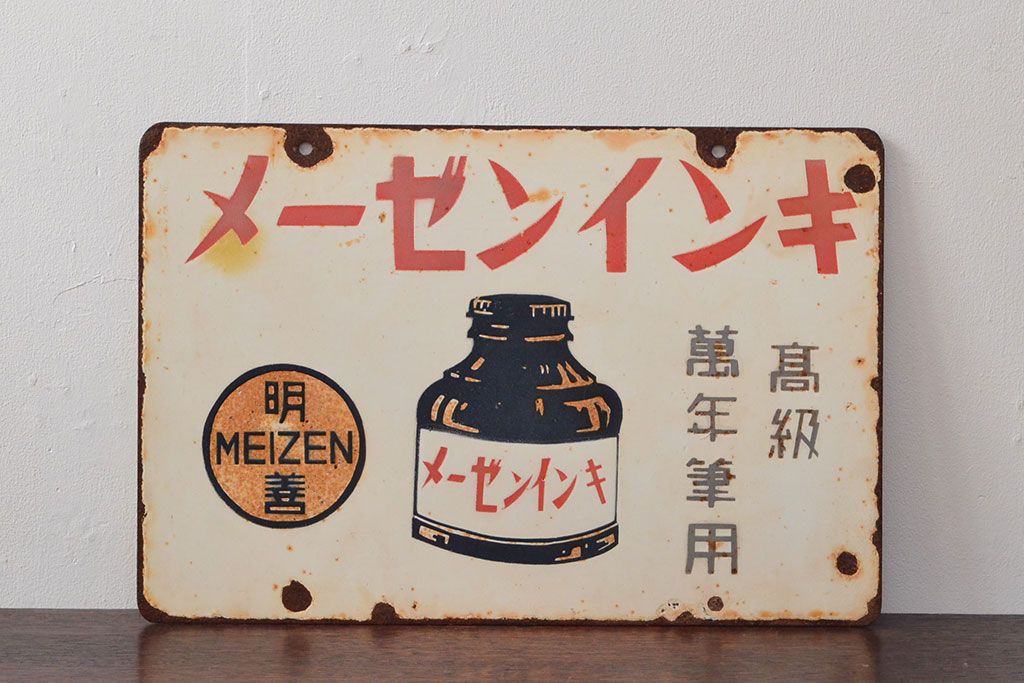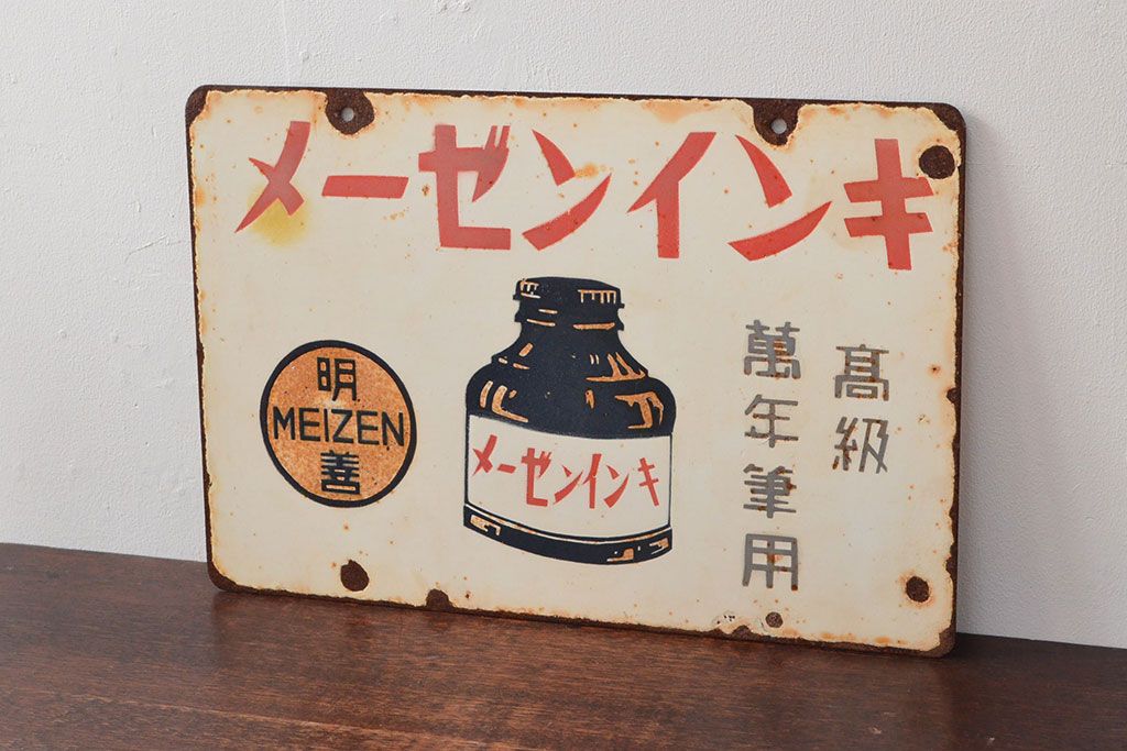 昭和レトロ メーゼンインキ 両面看板(ブリキ、ホーロー?、ディスプレイ)(R-052496)