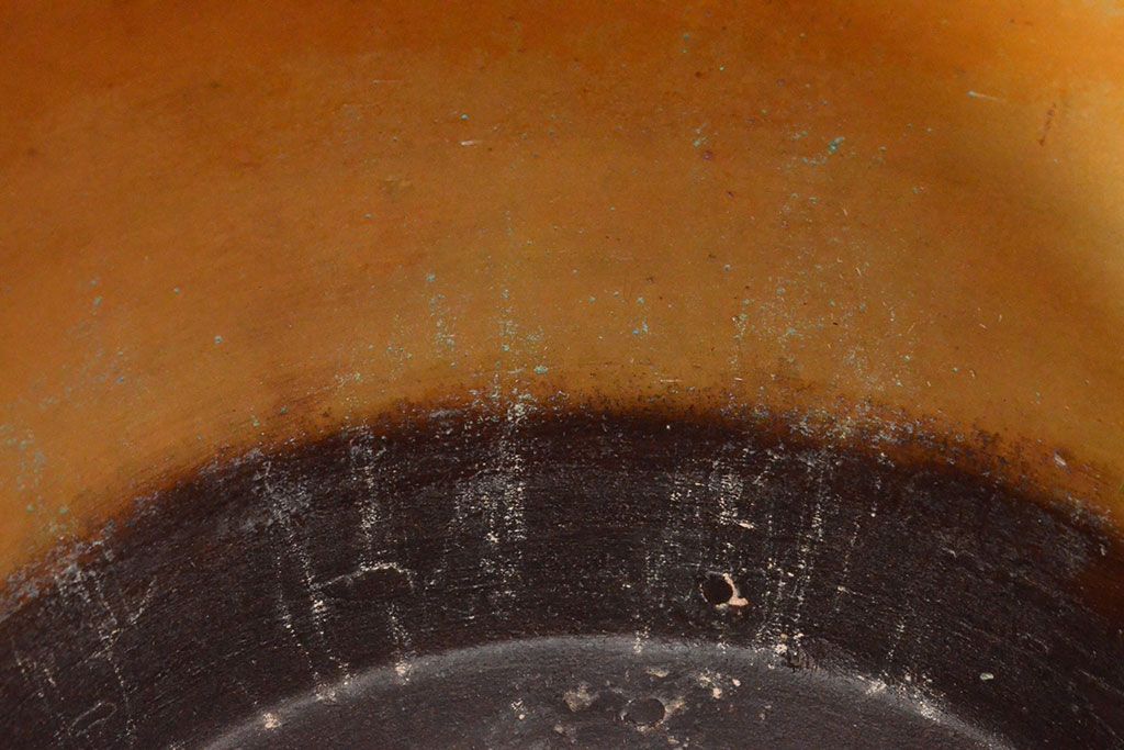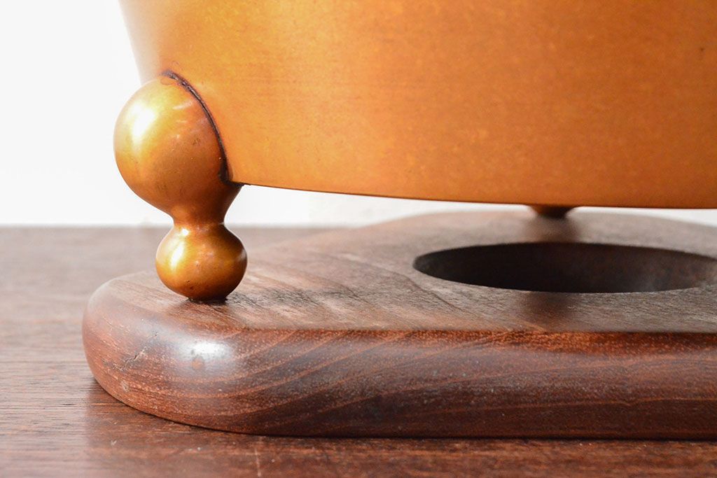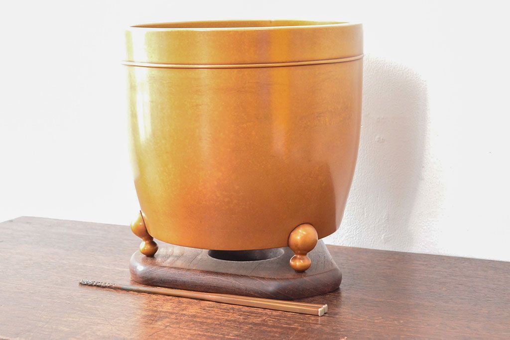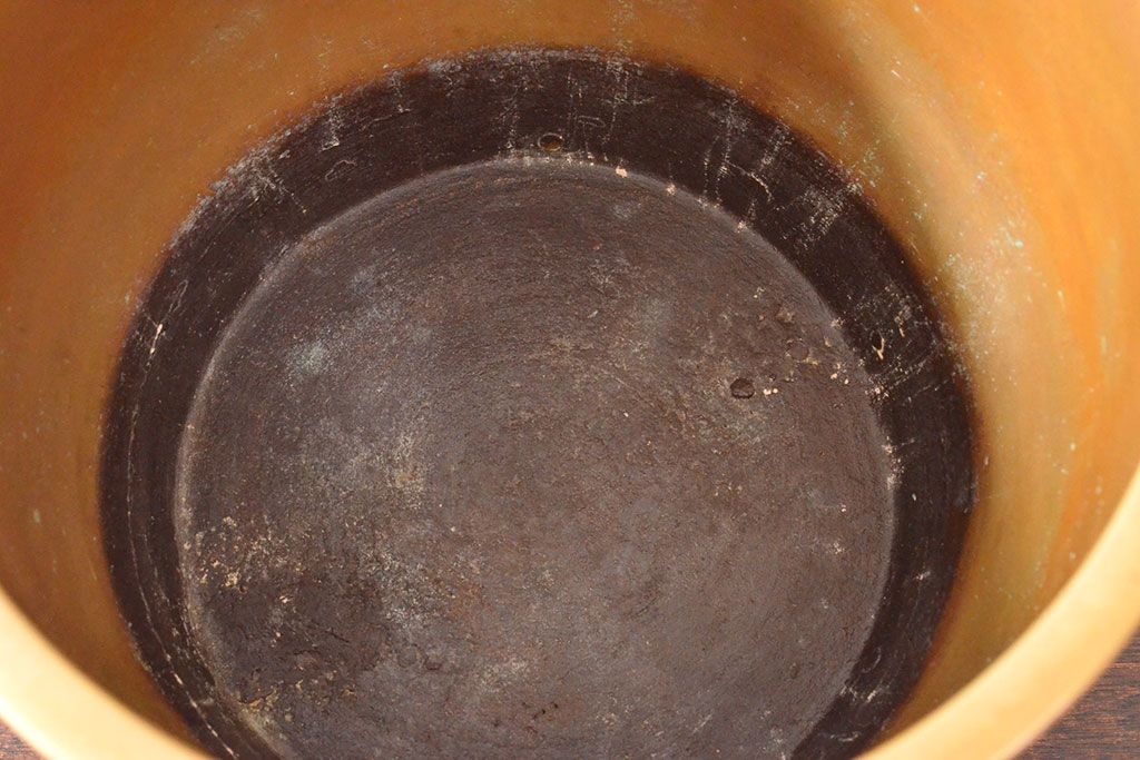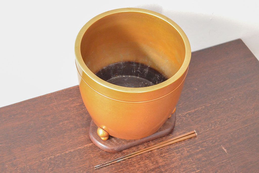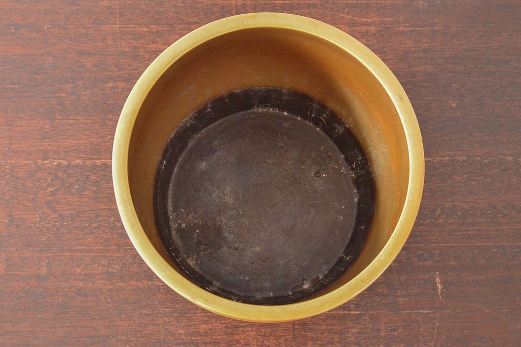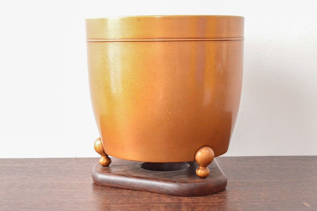 明治〜大正 色の綺麗な三足真鍮火鉢(唐金、手あぶり、火箸付)(R-052759)