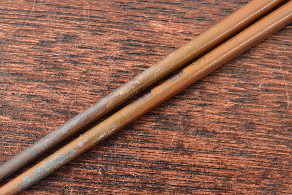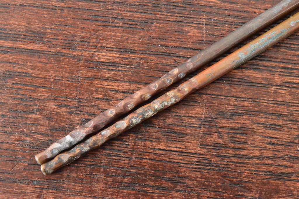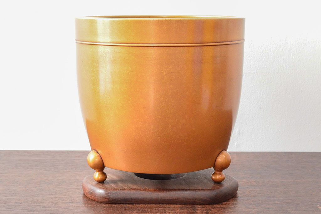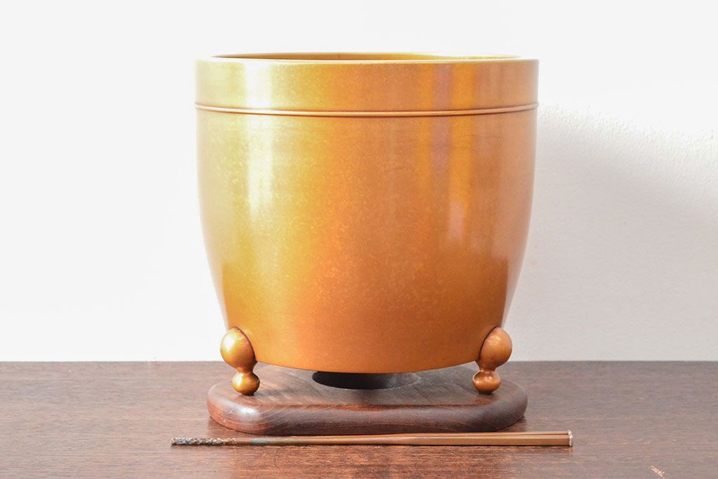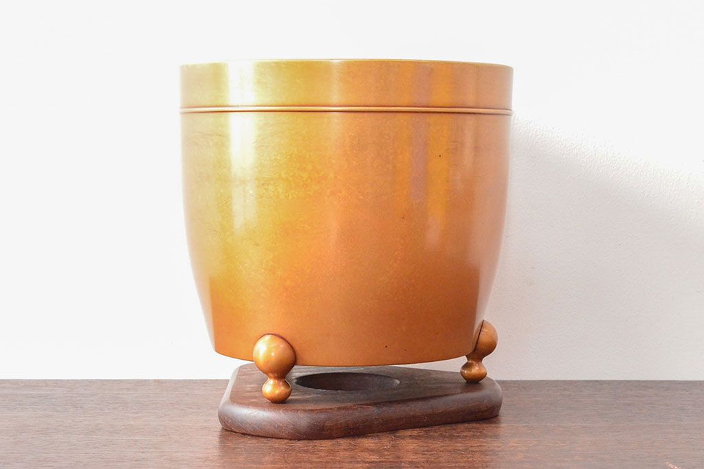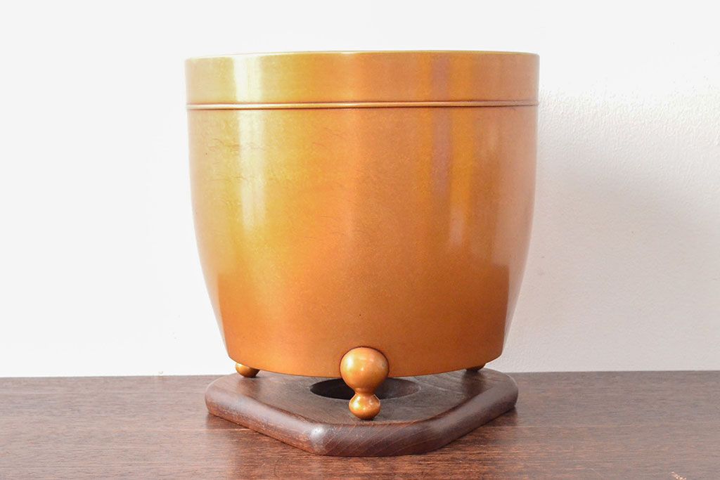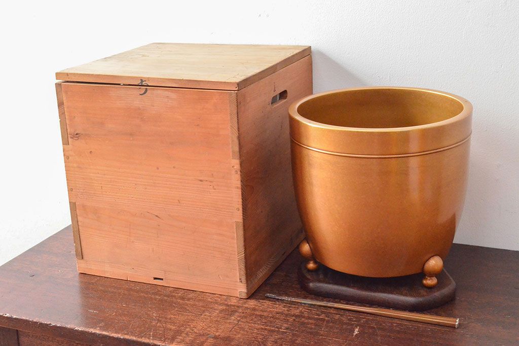 明治〜大正 色の綺麗な三足真鍮火鉢(唐金、手あぶり、火箸付)(R-052759)