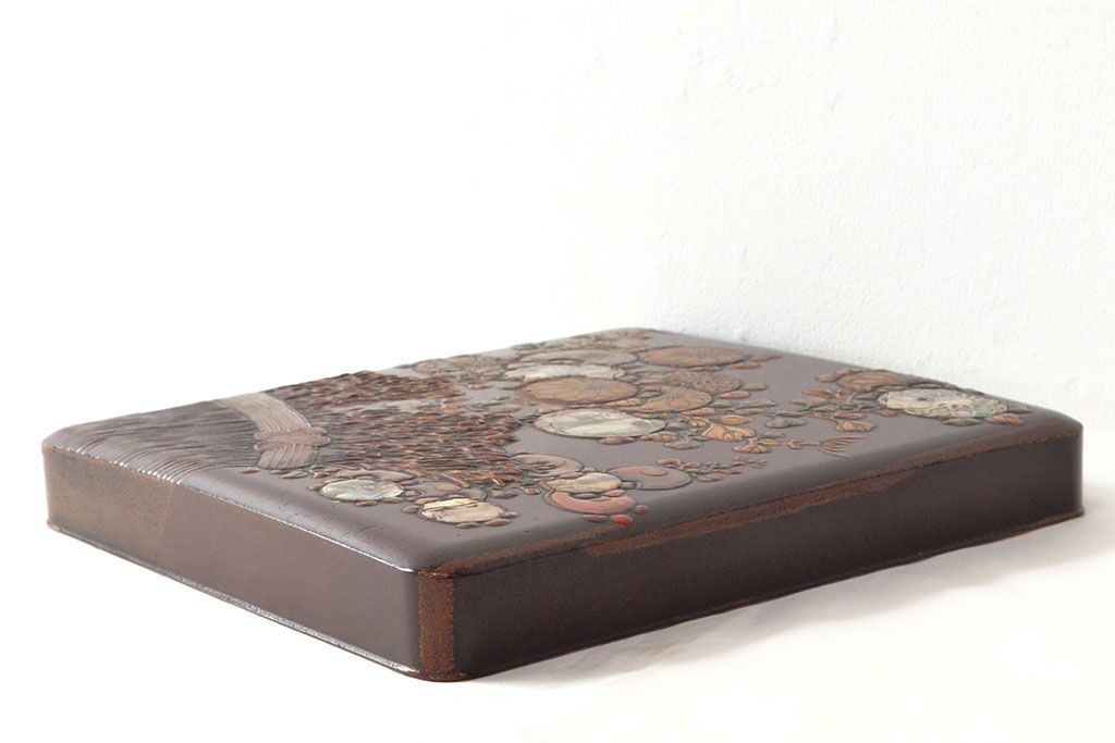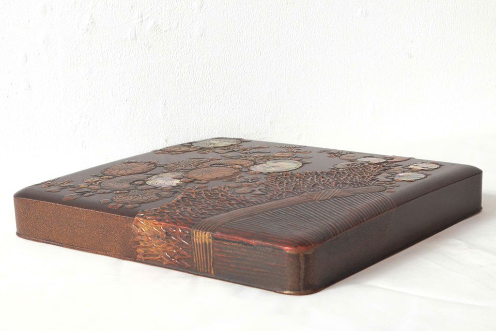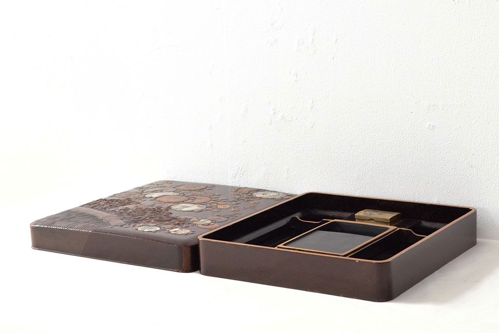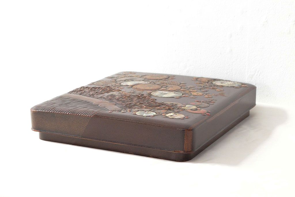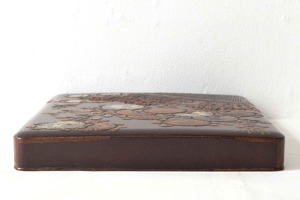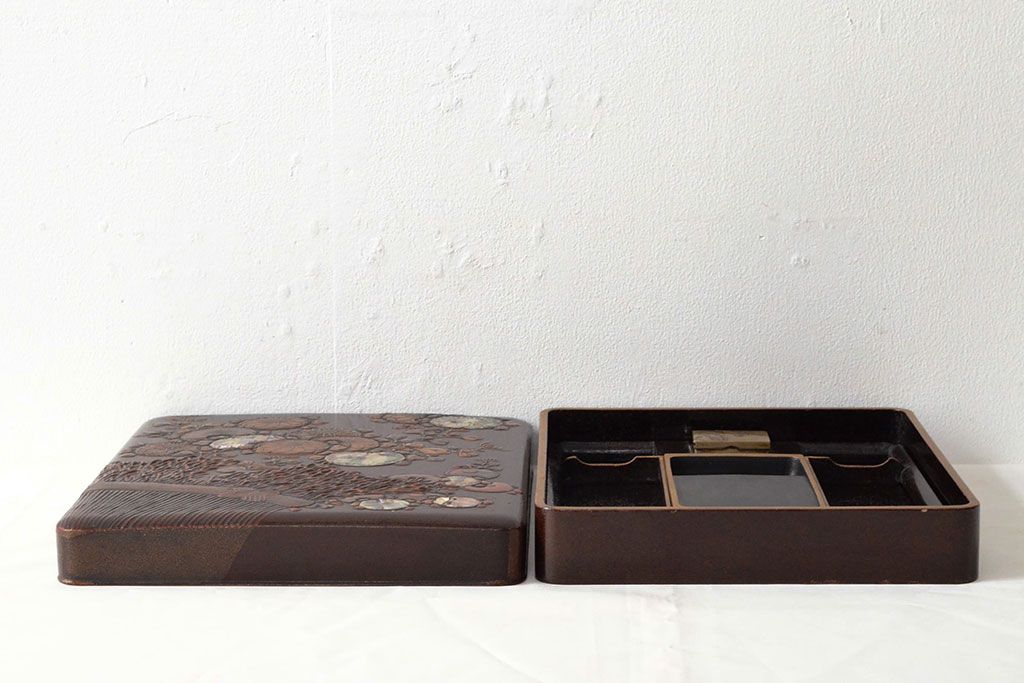 ラフジュ工房> 小物収納・トランク> 木箱 > 明治期 梨地螺鈿高蒔絵 鶏図 木製硯箱(漆器、書道具)(R-052792)