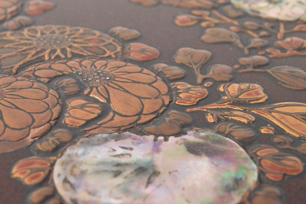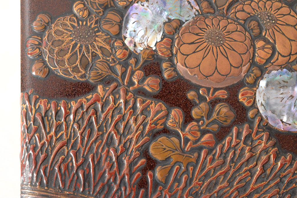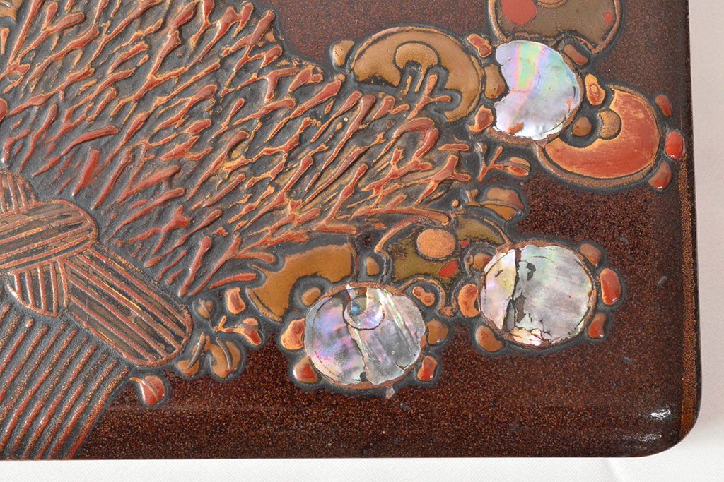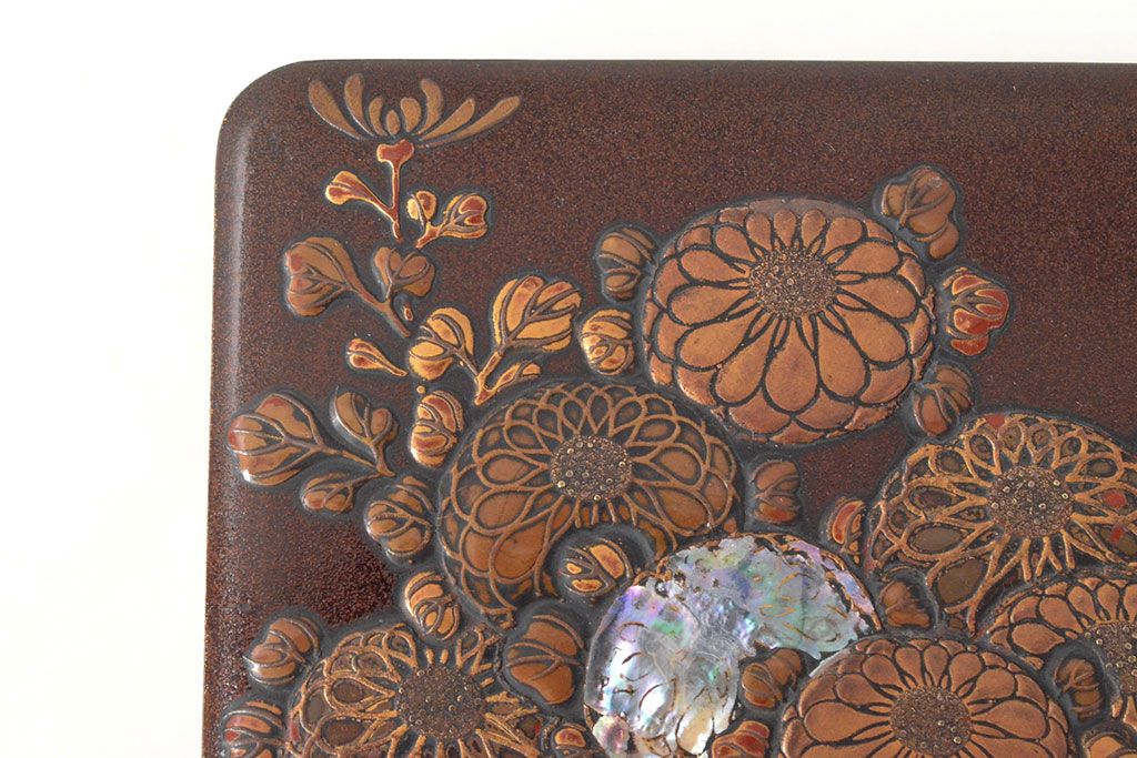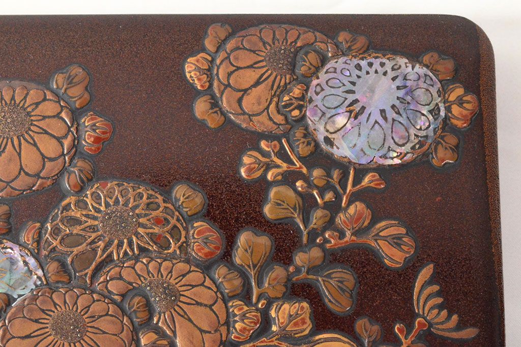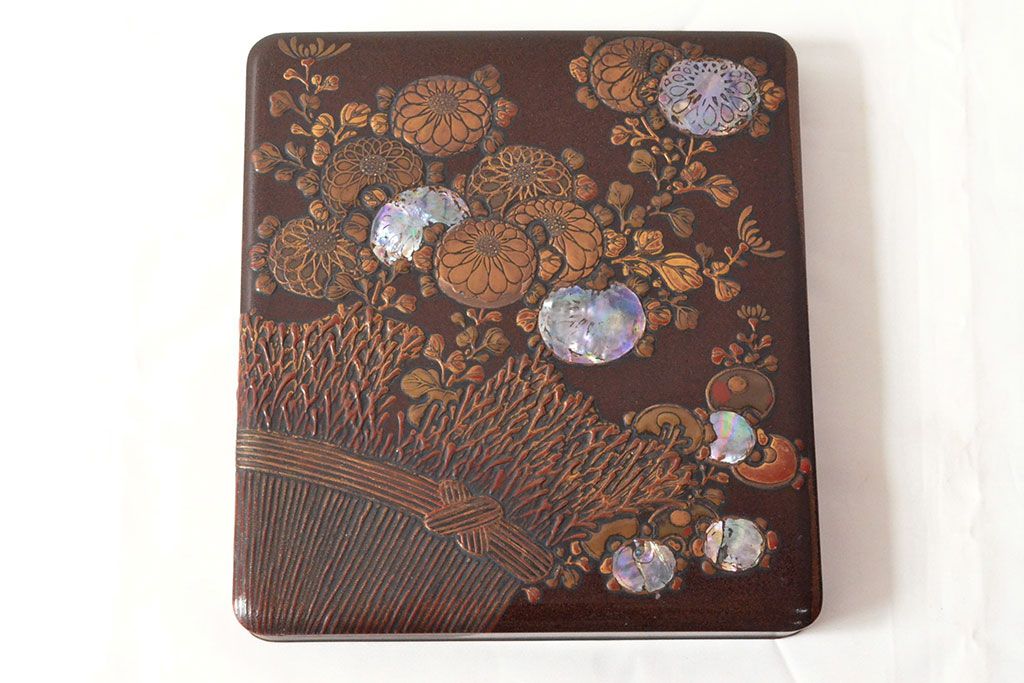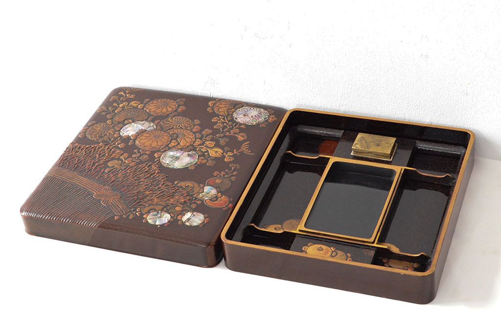 ラフジュ工房> 小物収納・トランク> 木箱 > 明治期 梨地螺鈿高蒔絵 鶏図 木製硯箱(漆器、書道具)(R-052792)