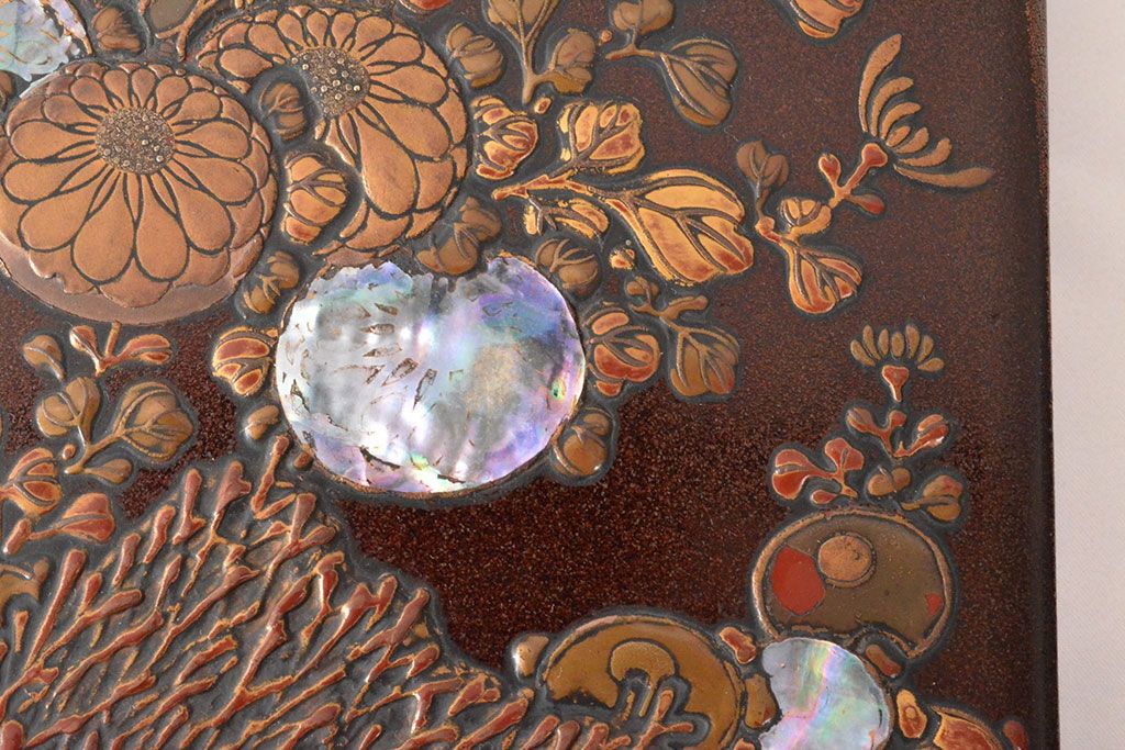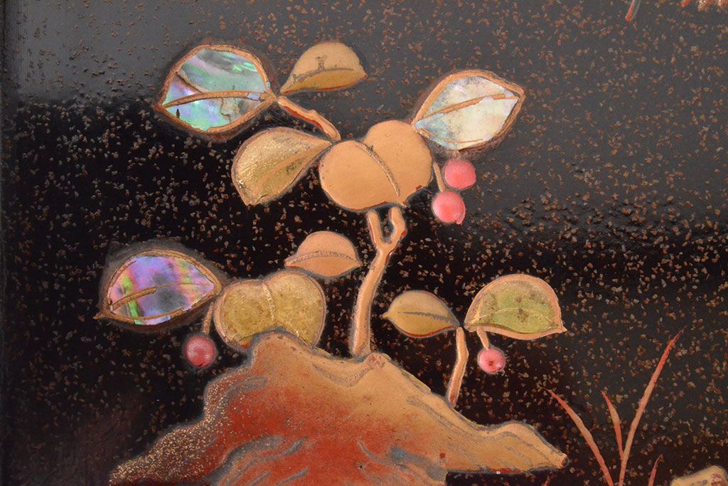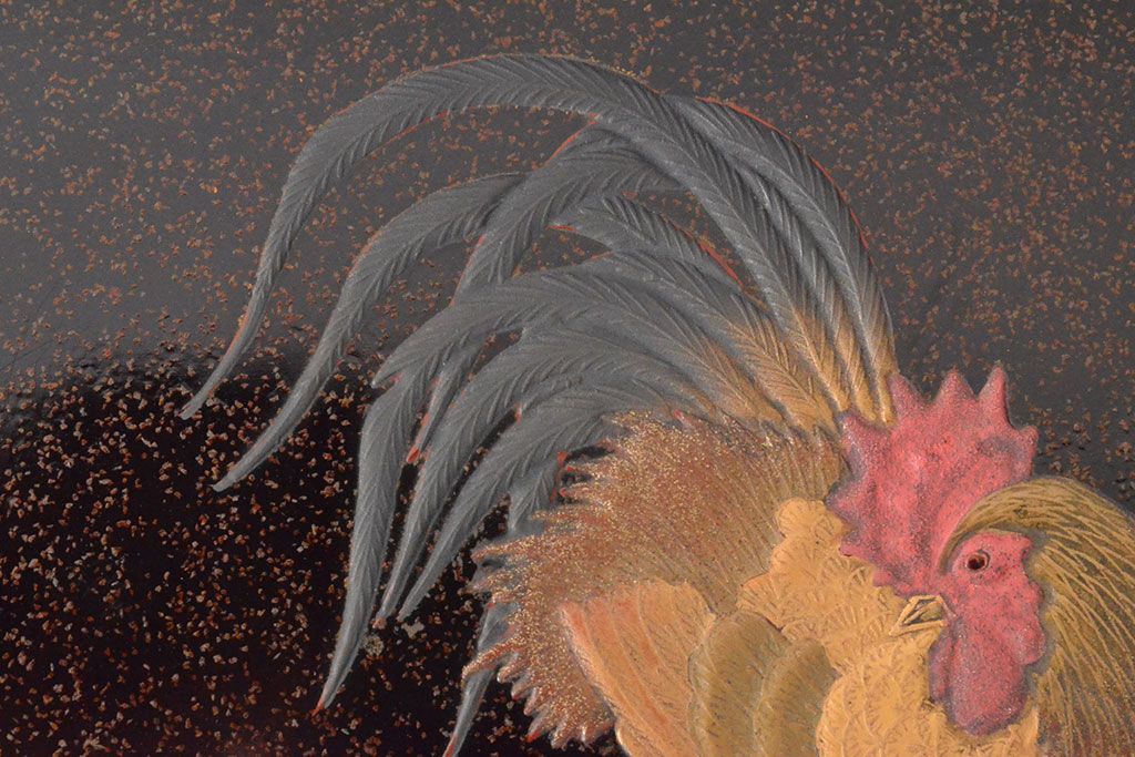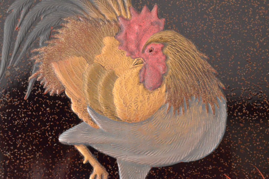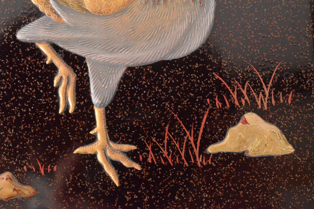 ラフジュ工房> 骨董・美術品> 書道具 > 明治期 梨地螺鈿高蒔絵 鶏図 木製硯箱(漆器、書道具)(R-052792)