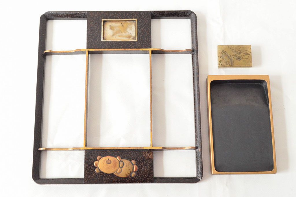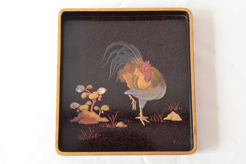 ラフジュ工房> 雑貨 > 明治期 梨地螺鈿高蒔絵 鶏図 木製硯箱(漆器、書道具)(R-052792)